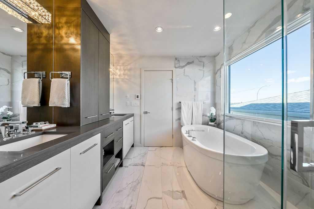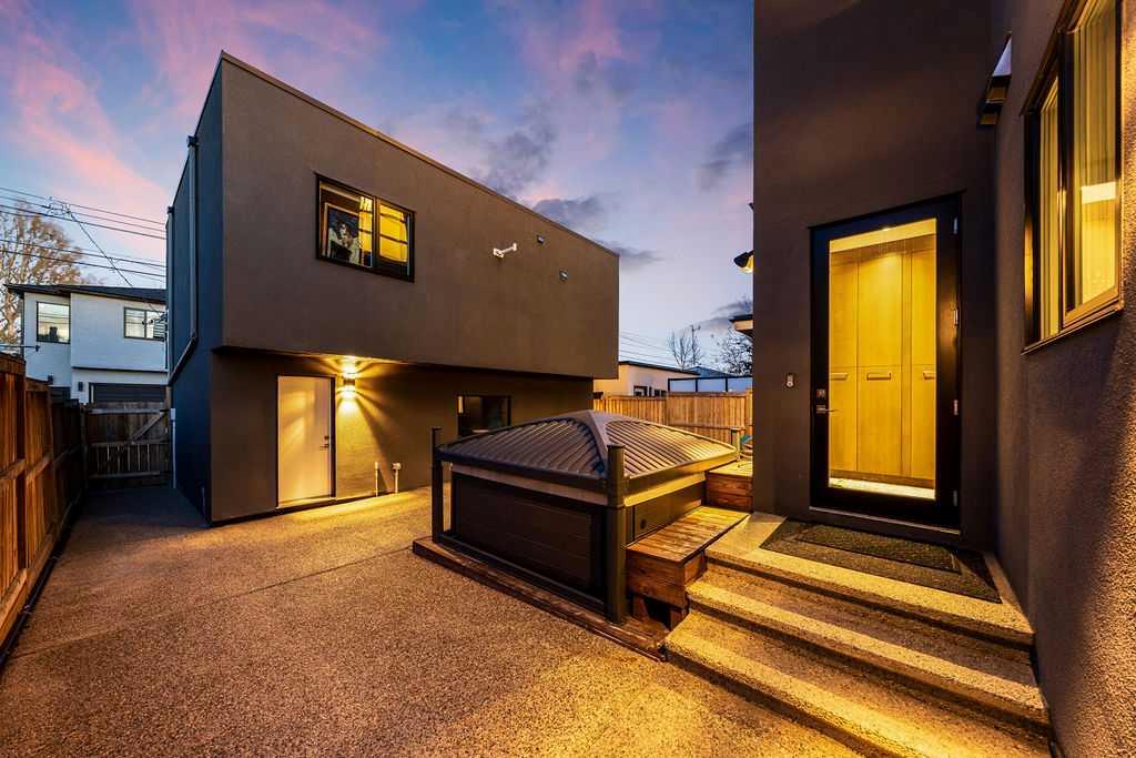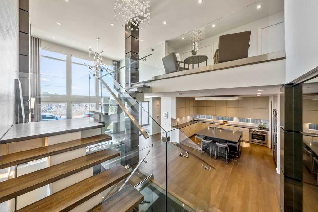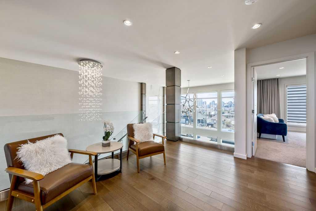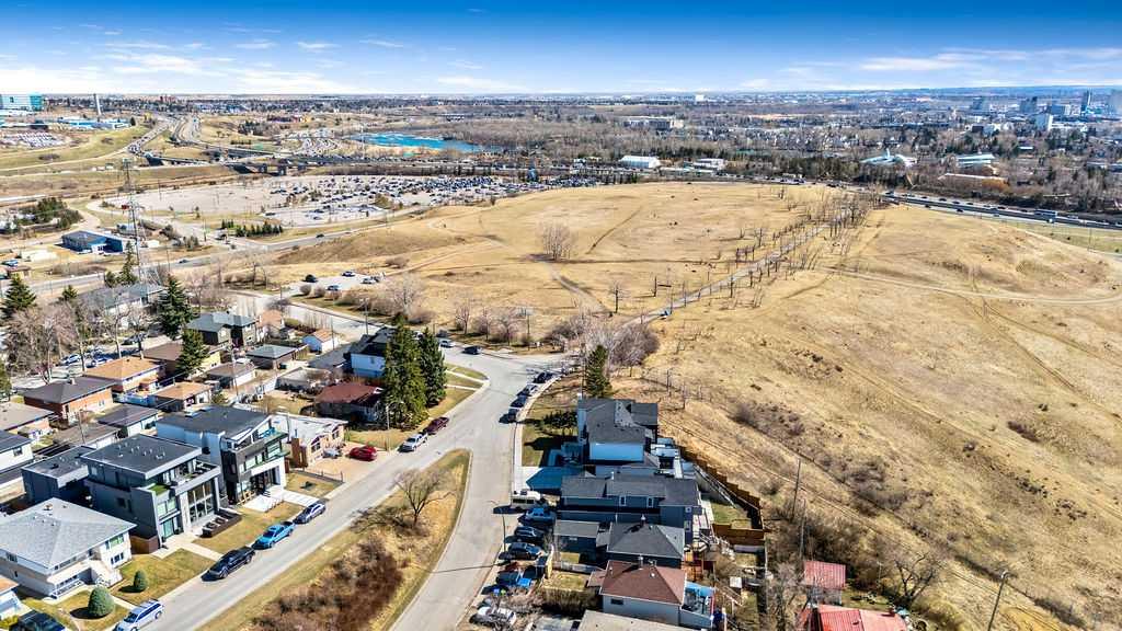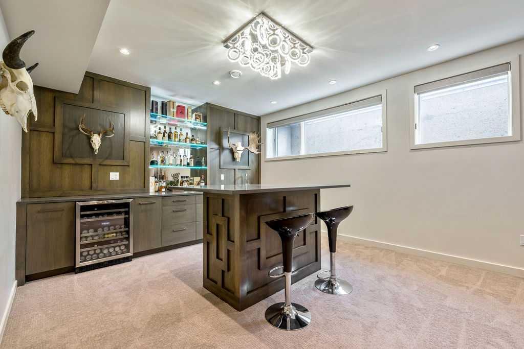 Perched on a spectacular ridge in one of Calgary’s most coveted inner-city enclaves, this exceptional residence captures truly unobstructed city skyline and Rocky Mountain views from every level. A masterful collaboration between Paul Lavoie Interior Design and Panache Homes, this architectural showpiece offers over 4,400 square feet of refined living, where scale, light, and craftsmanship converge. Defined by dramatic two-storey floor-to-ceiling windows, the home is flooded with natural light, creating a seamless connection between interior living and the ever-changing cityscape beyond. Expansive principal rooms set the stage for both grand entertaining and intimate everyday living, including a stunning formal living room with soaring ceilings and a sophisticated dining space overlooking the landscaped grounds. At the heart of the home, a bespoke European-inspired kitchen is appointed with only the finest appliances, including Sub-Zero and DCS, and is complemented by a fully equipped spice kitchen—designed to elevate culinary experiences for the most discerning chef. A striking glass-ceiling wine cellar serves as both a functional feature and a true design focal point. The upper levels offer a private retreat, highlighted by a luxurious primary suite and an additional lounge space framed by breathtaking two-storey windows and panoramic city views. Two generously sized bedrooms, each with its own ensuite and outdoor patio, complete the top floor, with flexibility for custom configuration. Designed for both relaxation and recreation, the lower level features a media and games room, an elegant wet bar with a large island, a dedicated fitness studio, and a guest bedroom with a full bath and steam shower—creating the ultimate in-home retreat. Outdoors, the expansive yard offers endless possibilities, from a custom BBQ patio to a private hot tub oasis, all set against a stunning natural backdrop. Completing the property is a triple garage with a fully legal two-bedroom suite above—ideal for guests, an office, extended family, or additional income. A rare offering defined by its irreplaceable views, architectural presence, and uncompromising design—this is a one-of-a-kind opportunity in a truly premier location.
