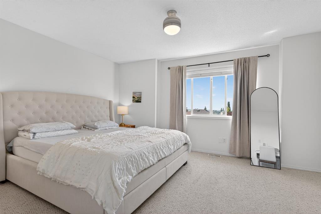 ** Open House Saturday April 25, 11:00 - 1:00 ** Welcome to Rocky Ridge Court, a peaceful place to call home. Step inside 121 Rocky Ridge Court to find a clean entryway and your SINGLE CAR GARAGE. Up to the 2nd floor, you have soaring ceilings in your living room and a west-facing deck for those sunny afternoons and evenings. Onto the third floor, you have your 2-piece bathroom and kitchen/dining room. The kitchen is fitted with WOOD COUNTERTOPS and a new range hood fan. Onto the top floor of the home, you have 3 bedrooms and 1 full bathroom, providing space for growing families and or a home office. The basement is unfinished and awaits your creative input. Rocky Ridge is a great place to call home with the SECOND LARGEST YMCA in the world, fit with a waterpark, ice rinks, skatepark, and much more! Rocky Ridge Ranch Homeowners Association is one of a kind, offering a splash park, tennis courts, and a small lake for kayaking, canoeing, and rowboating. In the winter, the small lake becomes a skating rink for winter activities. This is truly a great family-oriented community fit for all ages. Call your favourite Realtor today to book a showing.