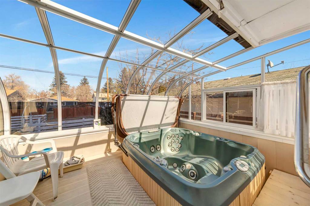 Welcome to this beautifully maintained bungalow offering comfort, functionality, and pride of ownership throughout. Situated in a mature neighborhood with convenient alley access, this solid home is in immaculate condition and ready for its next chapter. The main floor features a bright and inviting living space with vaulted ceilings and a cozy gas fireplace, creating a warm and welcoming atmosphere. The kitchen and dining area provide easy access to the yard, making everyday living and entertaining simple and enjoyable. The primary bedroom is a true retreat, complete with double closets and a unique sunroom with a hot tub, the perfect place to relax year-round. With main floor laundry and a practical layout, this home is especially well suited for a retired couple or anyone looking to minimize stairs while still enjoying a comfortable living space. The fully finished basement offers additional room for guests, hobbies, or storage. Outside, you will appreciate the large landscaped yard, concrete patio, rear parking pad, and the flexibility that comes with alley access. The heated double-attached garage and central air conditioning provide year-round comfort and convenience. This is a well-cared-for property that shows beautifully and offers the space, layout, and lifestyle that many buyers, especially downsizers or retirees, are actively seeking. 3D Virtual Tour Available.