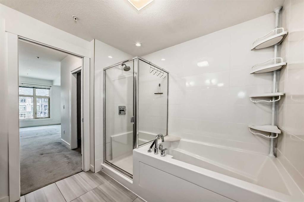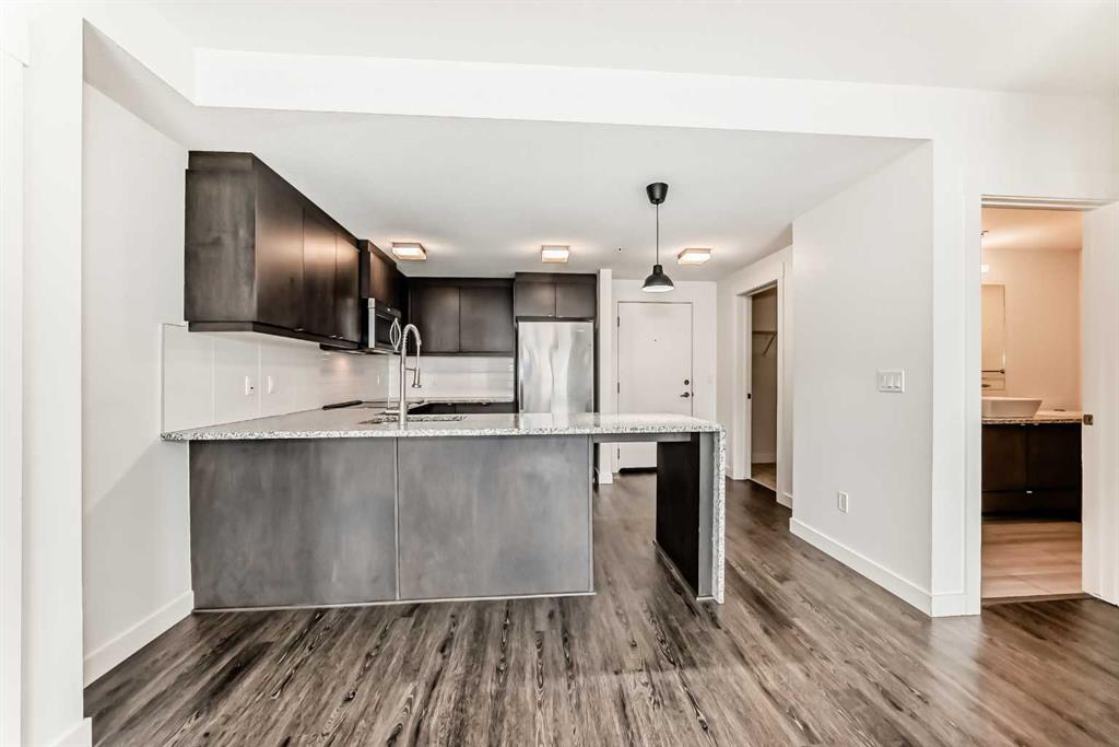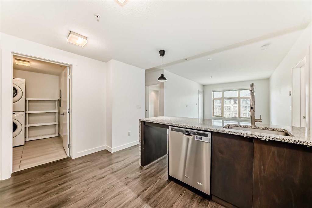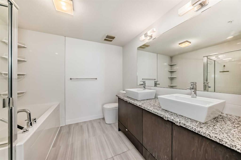 Experience convenient condo living in the beautiful Aspen Woods! Explore fantastic amenities, trendy shops, and delightful restaurants just a short walk away at Aspen Landing. This sought-after west end neighbourhood offers easy access to downtown and is just an hour's drive to the mountains! Step into a modern kitchen equipped with stainless steel appliances, granite countertops, and a kitchen island with breakfast bar. Entertain effortlessly in the open concept dining and living area that opens to a east facing balcony. The extra large master bedroom easily accommodates a king-sized bed and more and features a walk-through closet leading to a luxurious 5-piece ensuite featuring dual vanities, soaker tub, and separate glass shower. The second bedroom is generously sized and includes its own 5-piece bath with dual vanities. Building amenities include a gym, secure bike storage, and guest suites for family and friends to visit. The unit also comes with one titled heated underground parking space. Don't miss the opportunity to see this exceptional condo. Contact us now for a private showing!