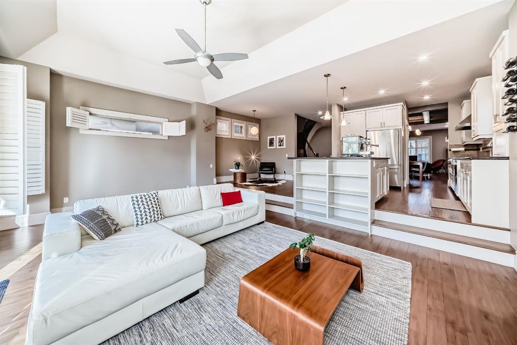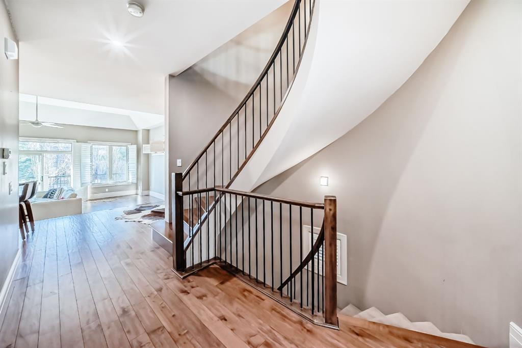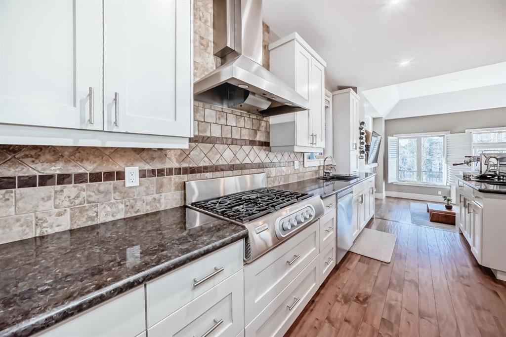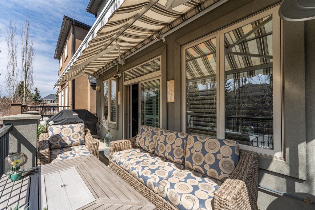 Located in the highly sought-after community of Aspen Woods, this stunning custom-built Brownstone blends classic architecture with a refined urban transitional design, all within a quiet suburban setting. Showcasing exceptional pride of ownership, this luxurious home is thoughtfully upgraded throughout, featuring central A/C, hardwood flooring, granite countertops, instant hot water, in-floor heating, water softener and filtration systems, built-in speakers, California shutters, a dog wash station, a heated garage, and much more. Designed with both comfort and entertaining in mind, the chef-inspired kitchen is the heart of the home. It boasts an oversized island, gleaming granite countertops, dual sinks, stainless steel appliances, a 5-burner gas cooktop, built-in wall oven and microwave, a spacious pantry, and convenient access to the formal dining room. The bright and spacious family room features 12-foot ceilings, abundant natural light from its sunny south exposure, and opens onto a full-width deck overlooking the beautifully treed backyard. Upstairs, retreat to the luxurious primary suite, complete with a fireplace, an expansive designer walk-in closet, and a spa-inspired 5-piece ensuite featuring dual vanities, a soaker tub, and a glass shower with dual shower heads. This level also includes two additional generously sized bedrooms, a full bathroom, a home office/study, and a convenient laundry room.mThe fully developed walk-out basement extends your living space with a fourth bedroom, a 2-piece bath, a large recreation room, and a wet bar equipped with a dishwasher and wine fridge—perfect for entertaining. Sliding patio doors lead to a covered patio and private, landscaped backyard oasis with mature trees and a south-facing exposure. A screened-in hot tub (negotiable) enhances the outdoor experience. This home is designed to maximize indoor-outdoor living, with all three levels above grade, a walk-out basement, a retractable awning on the deck, and a covered patio. Additional features include vaulted, coffered, and tray ceilings, light maple flooring, architectural columns, built-in shelving, a curved staircase with iron spindles, three fireplaces, and a built-in sound system. Practical features for everyday comfort include a built-in vacuum system, humidifier, ceiling fans, and energy-efficient custom shutters throughout. The oversized double attached garage is heated, and a well-designed mudroom offers built-in benches, cubbies, and a pet washing station. Situated on a private cul-de-sac, this home also features a charming enclosed front sunroom, allowing for year-round enjoyment of outdoor living. Aspen Woods is home to some of Calgary’s most prestigious schools, including Webber Academy, Ambrose University, Rundle College, Ernest Manning High School, Calgary Academy, and Dr. Roberta Bondar School. With close proximity to Bow Trail, commuting downtown is quick and convenient, short walk to LRT.