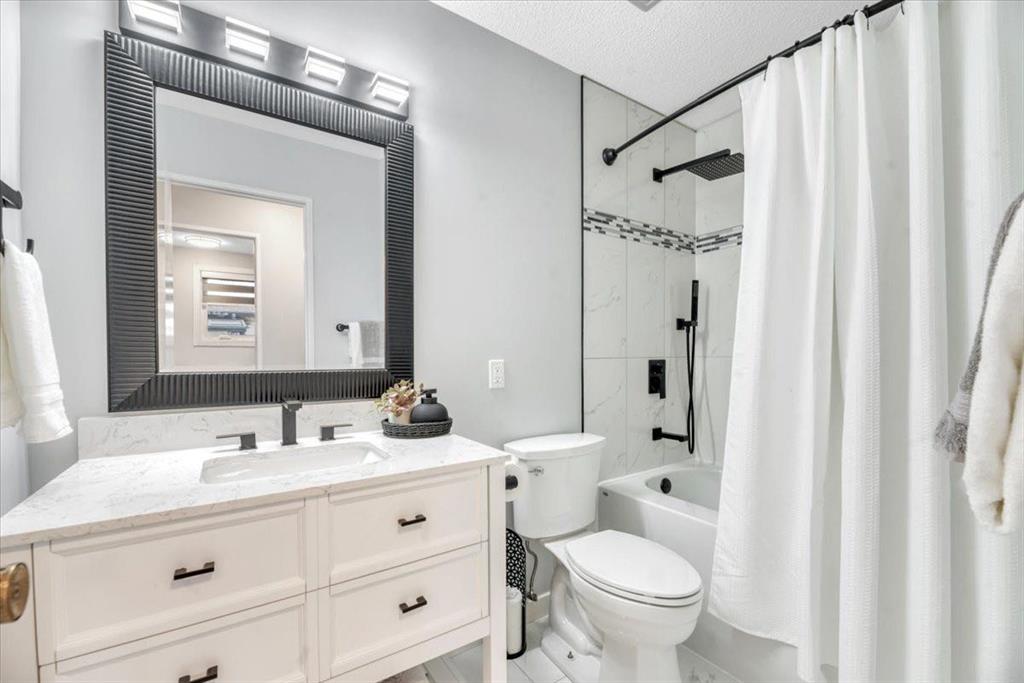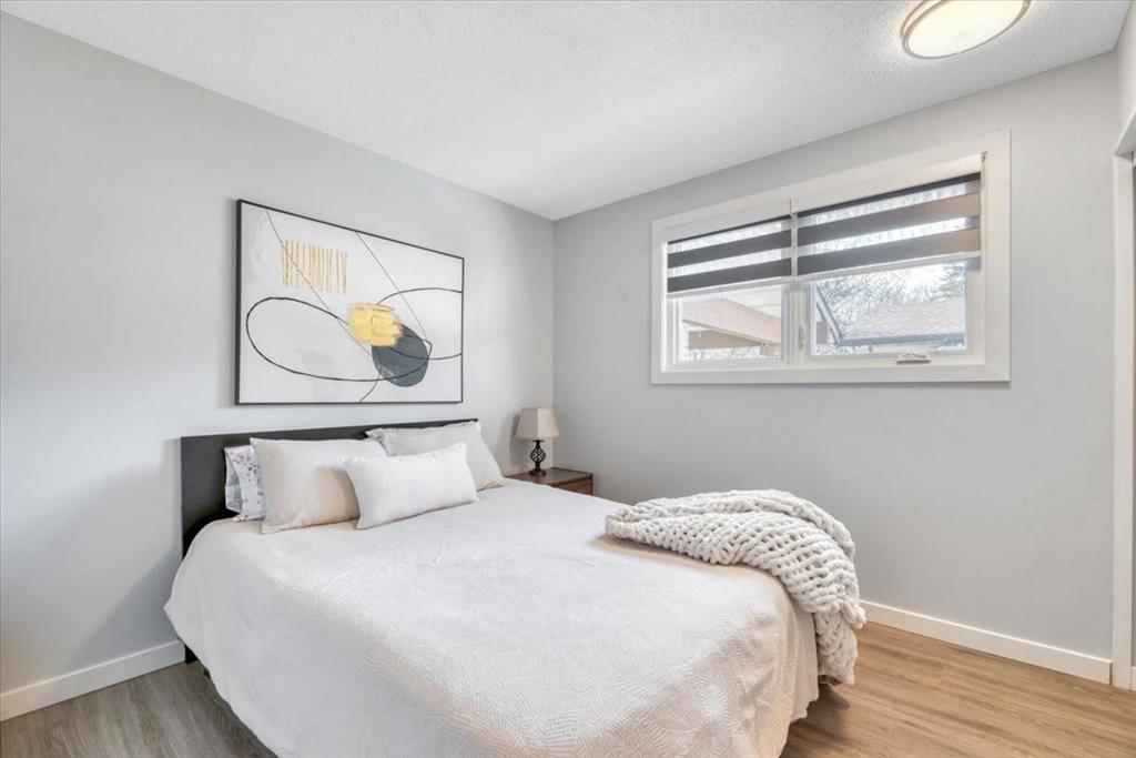 Welcome to this beautifully renovated bungalow in the heart of Woodlands, offering a perfect blend of warmth, character, and modern upgrades. The main living space is truly the showstopper, featuring vaulted ceilings with striking wood beams and a stunning stone wood-burning fireplace that anchors the room. This space flows seamlessly into the dining area and kitchen, creating an open and inviting layout ideal for both everyday living and entertaining. The home has been extensively updated, including all new triple-pane windows on the upper level, central air conditioning, a new furnace (2024), hot water tank (2024), central vacuum system, and a full set of stainless steel appliances (2024) with a gas range. The main floor also features high-quality vinyl flooring throughout, fully renovated bathrooms, and upgraded electrical outlets including USB and USB-C connections for added convenience. Custom dual-layer blinds have also been installed throughout, adding both style and functionality. The main floor features a primary bedroom complete with a full ensuite, along with two additional bedrooms and another full bathroom. The lower level is impressively sized with a large bedroom, full bathroom, comfortable living area, and a separate recreation space, giving you plenty of room to spread out and make it your own. The back entry allows access to both the main level and the basement from the rear of the home, adding to the overall functionality of the layout. Outside, the property features a fully fenced front yard surrounded by mature trees, creating a private outdoor space to enjoy. The charming gazebo adds the perfect touch for relaxing or entertaining. Located within walking distance to schools, parks, the community centre, tennis courts, ball diamonds, and Fish Creek Park, this home offers an exceptional lifestyle in one of Calgary’s most established and desirable neighbourhoods. Complete with a double detached garage, this beautifully updated home is ready to be enjoyed.