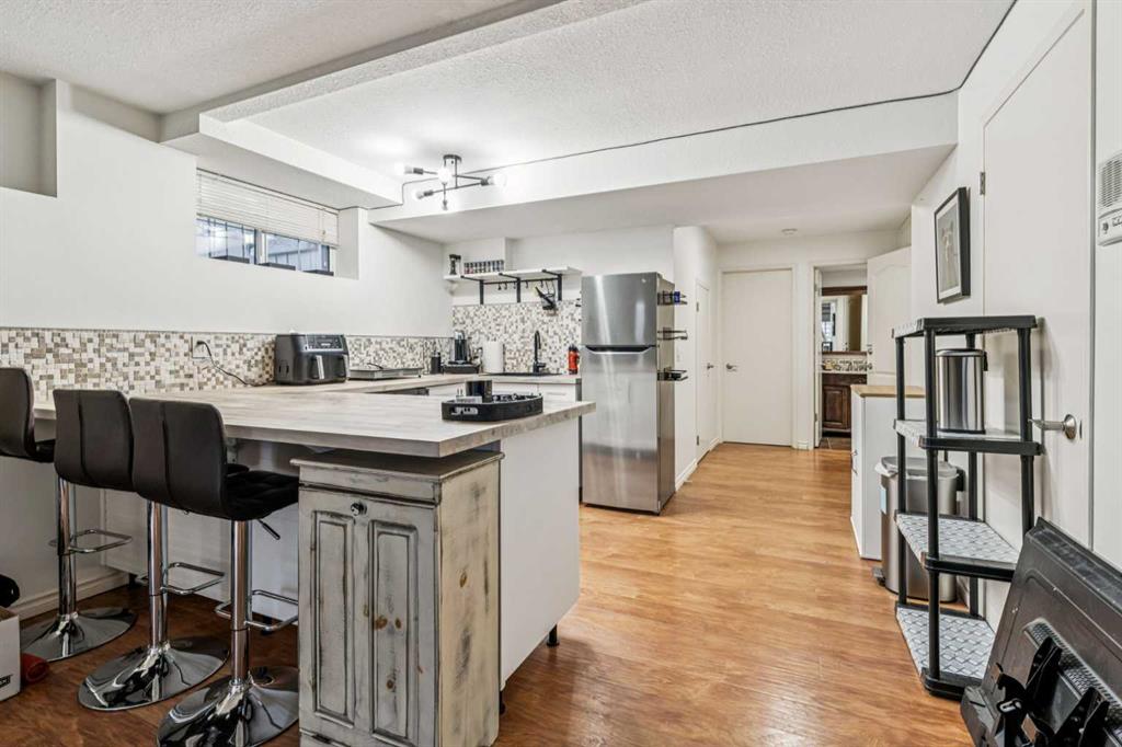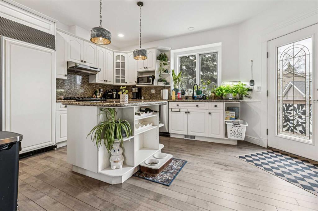 Architecturally distinctive and thoughtfully appointed, this impressive West Hillhurst home offers stylish finishings, generous living space, and a sunny south-facing backyard designed for both everyday living and easy entertaining. Hardwood flooring flows throughout the main and upper levels, creating a warm and inviting feel from the moment you step inside. The main floor features a spacious living room with a gas fireplace, formal dining area, convenient powder room, and a well-appointed kitchen complete with granite countertops, panelled Sub-Zero fridge, stainless steel appliances, large pantry, and a bright breakfast nook with access to a new south-facing deck. Upstairs, the expansive primary retreat offers a walk-in closet and a luxurious 5-piece ensuite with a private water closet and oversized jacuzzi tub, creating a true space to unwind. This level also includes a large den, second full bathroom, upper laundry, and a generous second bedroom with a large closet and private balcony. The fully finished walk-out basement offers exceptional flexibility with a well-equipped kitchenette, spacious bedroom with a walk-in closet, full bathroom, laundry and direct access to the private south-facing backyard. Whether entertaining friends and family or enjoying a quiet evening outdoors, the backyard offers plenty of potential for a firepit or hot tub, all complemented by a double garage. Ideally situated on one of the widest roads in the neighbourhood, this property offers ample street parking and an exceptional location close to Memorial Drive, Crowchild Trail, Kensington, the Bow River pathway system, schools, shopping, and downtown Calgary.