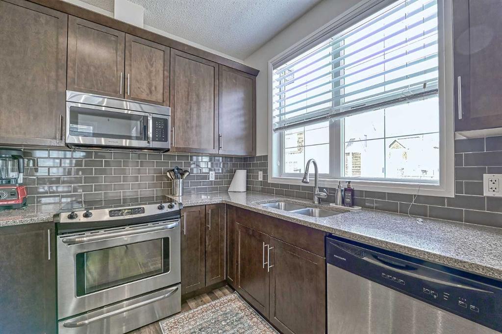 ***PUBLIC OPEN HOUSE THIS WEEKEND, the 25th & the 26th of April, 2.00-p.m.-4.00p.m. ***Move in with a peace of mind to this Prelisting Professionally Inspected (report in supplements and also available upon request), TWO Master Suites, END unit boasting over 1800 sq ft of a developed space. The oversized master bedrooms serve as a true retreat, featuring a large en-suite bathrooms and walk-in closets designed for relaxation, privacy a lot of storage. The additional, third bedroom is generously sized, making this home both functional and flexible for a variety of lifestyles. This inviting residence is perfectly suited for those seeking both comfort and style, with spacious interiors and modern finishes throughout. Step inside and be greeted by a spacious and open floor plan that immediately feels like home. The seamless integration of the living, dining, and kitchen areas maximizes the space, creating a versatile environment that’s perfect for both relaxation and entertaining. The living room boasts a custom deluxe feature wall that includes an electric fireplace, built in wall unit with doors and a T.V. nook. The heart of the home, the kitchen, features recent updates that elevate its style and functionality. The kitchen is a culinary dream with endless countertops, a kitchen island, and a breakfast bar, ideal for casual meals or entertaining friends. Stainless-steel appliances and granite countertops add a touch of modernity, while ample storage and prep space ensure cooking is a delight. Natural light fills the interiors, creating a warm and welcoming environment throughout the home. Attention to detail is evident in every corner, from the open layouts to the carefully chosen finishes. Whether enjoying a quiet morning coffee or an evening under the stars, the private balcony makes your outdoor relaxation a daily luxury. The large garage provides abundant space not only for vehicles but also for storage and hobbies. Designed with convenience in mind, it ensures all the practical aspects of daily living are met with ease. All of that located within close proximity to public transportation, grocery stores, restaurants, coffee shops, walking and biking paths. Move-in ready and designed with both comfort and elegance in mind, it is a property that will appeal to discerning buyers who value quality and charm. Schedule your visit today to experience the possibilities firsthand.