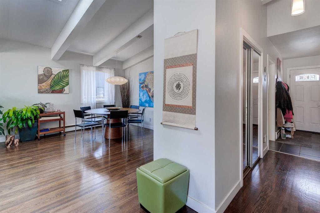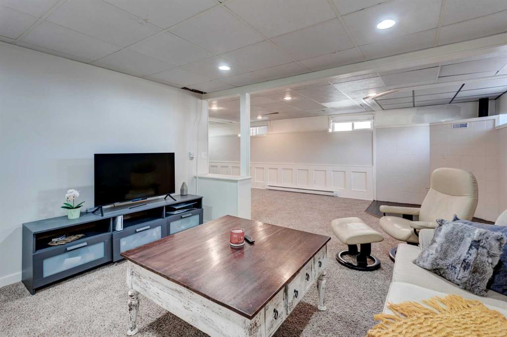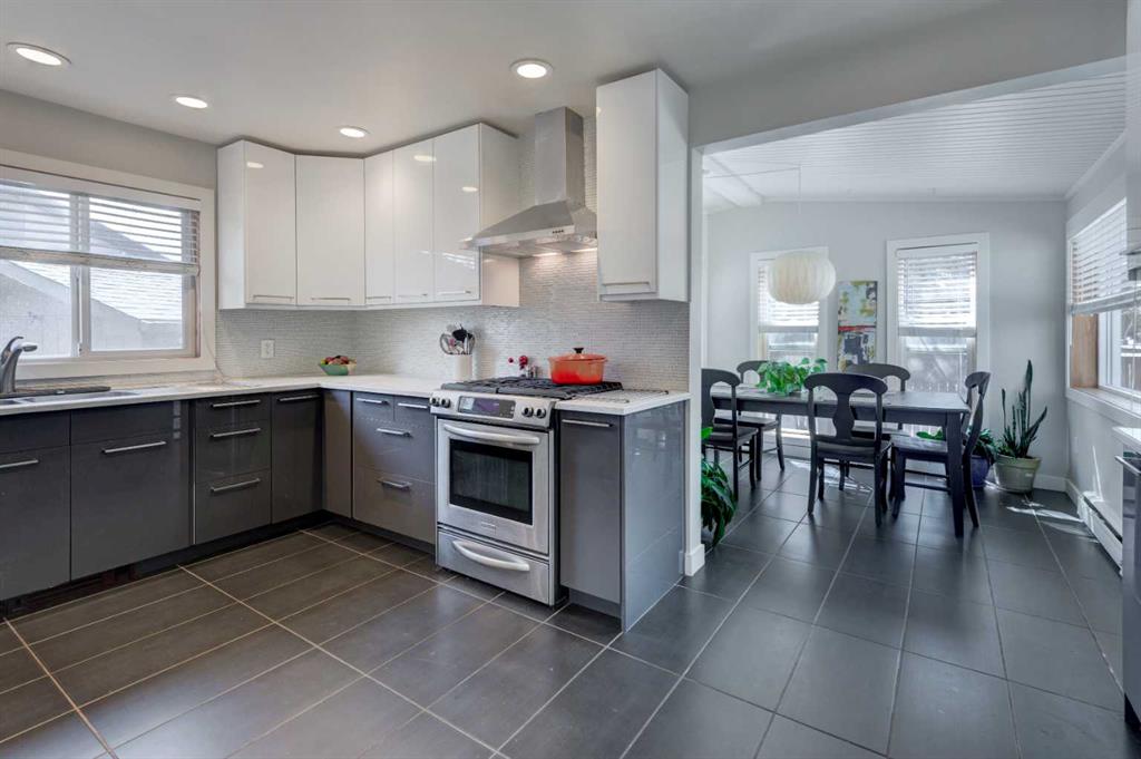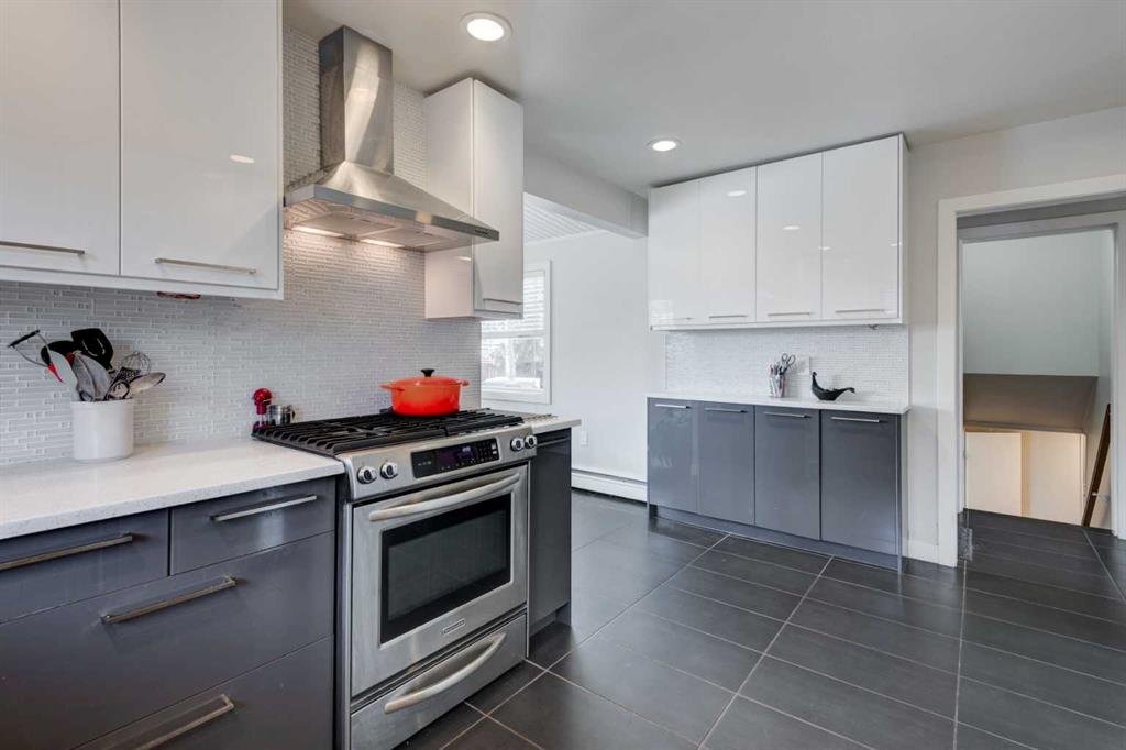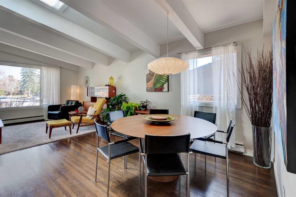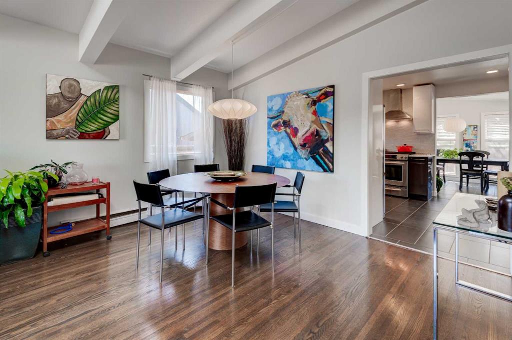 This beautiful family home is situated on a quiet, tree-lined street in Chinook Park, which is one of Calgary’s most sought-after communities. This 4-level split offers an exceptional blend of timeless character and thoughtful updates. The main and upper levels showcase rich hardwood flooring, complemented by elegant ceramic tile in the updated gorgeous kitchen and eating area. Soaring vaulted ceilings in the living and dining rooms create a bright, open ambiance—perfectly suited for both sophisticated entertaining and everyday living. At the heart of the home is the updated modern and sun-filled kitchen. It offers quartz countertops, stainless steel appliances, and loads of cupboards and counter space. The convenience of main floor laundry adds to the home’s effortless functionality. Upstairs, three generously proportioned bedrooms provide comfortable retreats, accompanied by a well-appointed 4-piece bath featuring a relaxing jetted tub. The lower levels expand the living space beautifully, offering a substantial L-shaped family room, a large fourth bedroom, a 3-piece bath, and tons of storage. This floor plan provides room for everyone to have their own space as well as generous areas for gathering. Outdoors, the private, mature yard, is highlighted by established trees and offers room for kids and pets to play. There is also a newer deck and access to the garage. A recently installed boiler (2025) enhances comfort and efficiency, offering added peace of mind. The ideal location is great for commuting in all directions. The neighbourhood offers great schools, quick access to the Glenmore Park pathway system, it is close to Rockyview Hospital, transit, as well as shopping and dining. This is an exceptional opportunity to own a refined home in a terrific community.