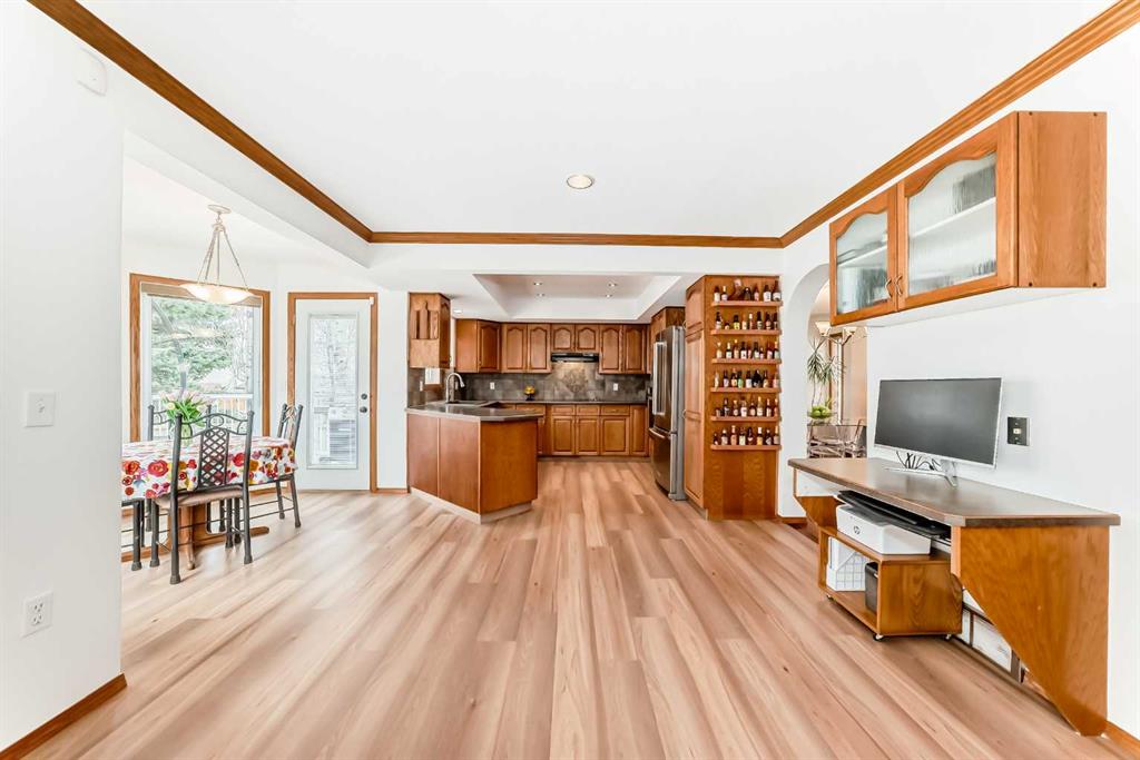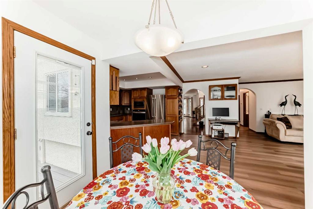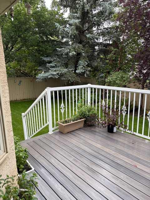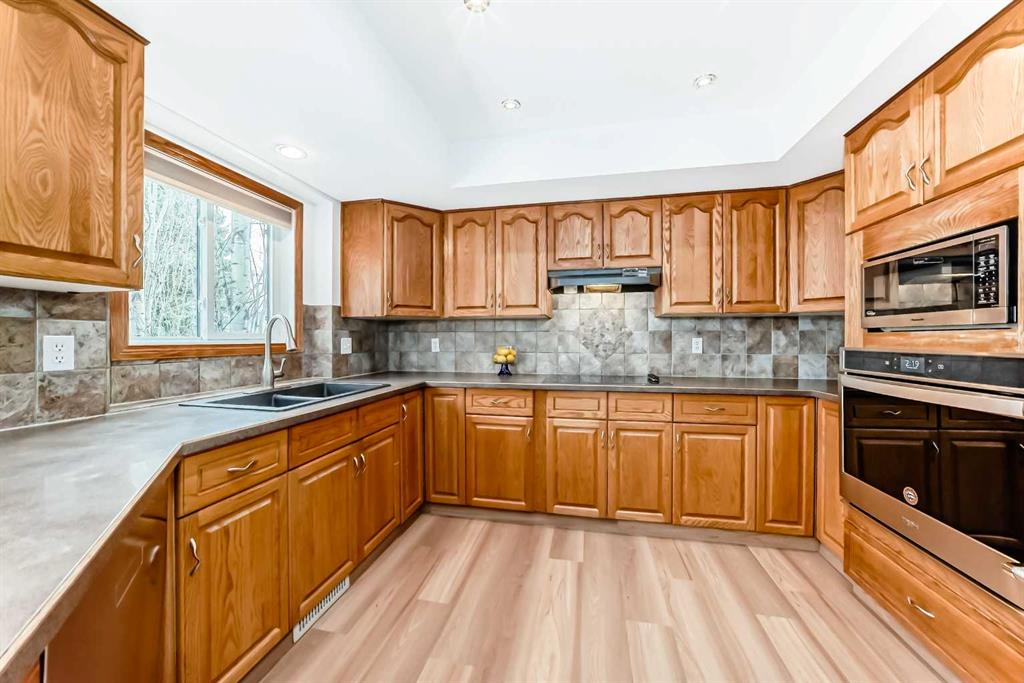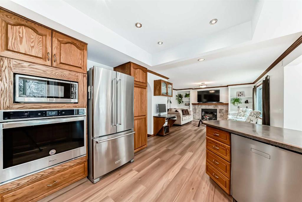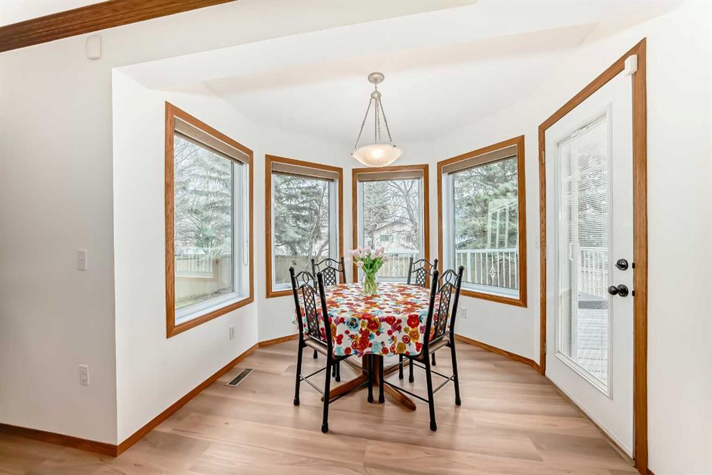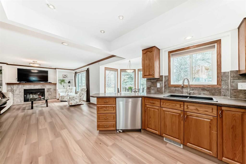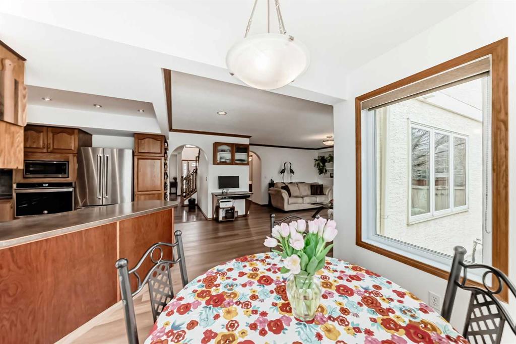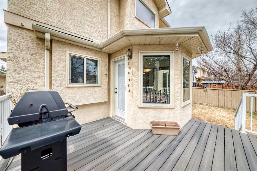 Welcome to this beautifully updated executive home offering over 2,230 sq ft of well-designed living space in the highly desirable community of Woodbine. With 4 bedrooms and 3.5 bathrooms, this home is perfectly suited for growing families. Step inside to soaring vaulted ceilings and a bright, inviting living and dining area finished with rich hardwood flooring, ideal for both everyday living and entertaining. The spacious kitchen is thoughtfully designed with newer appliances (cooktop 2026), brand-new vinyl plank flooring, and a sun-filled breakfast nook surrounded by windows. The main floor also features a warm and comfortable family room, perfect for relaxing evenings, complete with a beautiful gas fireplace, along with a built-in desk for work or study, a convenient 2-piece powder room, and a spacious laundry area. Upstairs, you’ll find three generously sized bedrooms, including a inviting primary retreat complete with a walk-in closet and convenient ensuite featuring double sinks, a jetted tub, and separate shower. The upper 4-piece bathroom includes heated floors, adding everyday comfort for the whole family. The fully finished basement extends your living space with a large family room, newer carpeting (2021), a spacious fourth bedroom, and a 3-piece bathroom, ideal for guests, teens, or extended family. This home has been meticulously maintained and upgraded, including full Poly-B replacement with PEX, recent interior repainting, including ceilings (2026), triple-pane windows, air conditioning (upper level), water softener (2024), hot water tank anode replacement (2024), underground sprinklers, a composite deck, and the roof was replaced in the summer of 2022. Ideally located close to excellent amenities, schools, transportation, and just minutes from Fish Creek Park, this home offers the perfect balance of comfort, convenience, and lifestyle. This home is a must see... schedule your showing today!