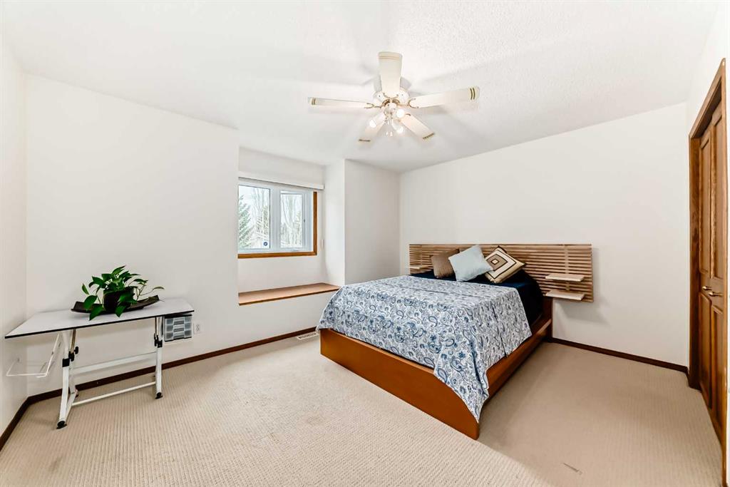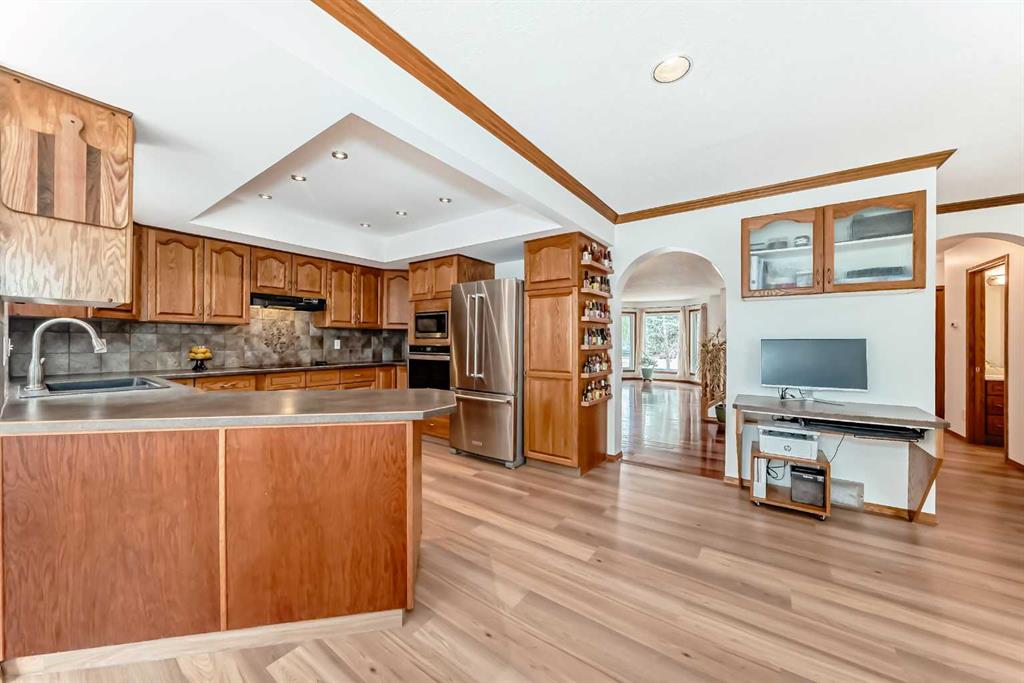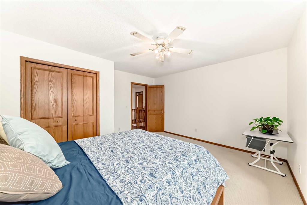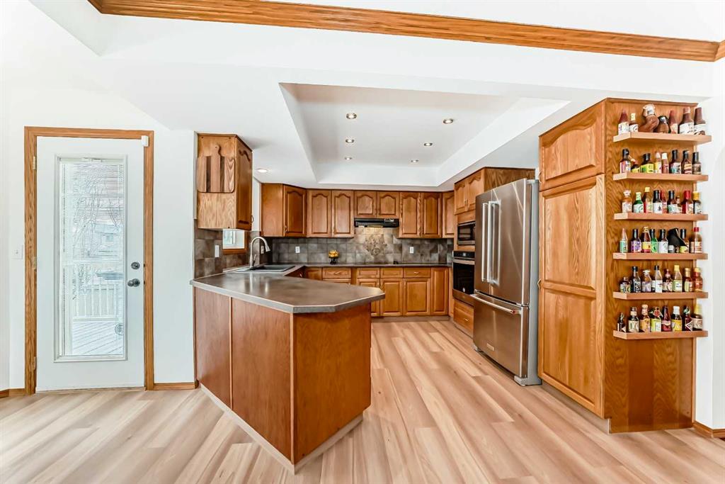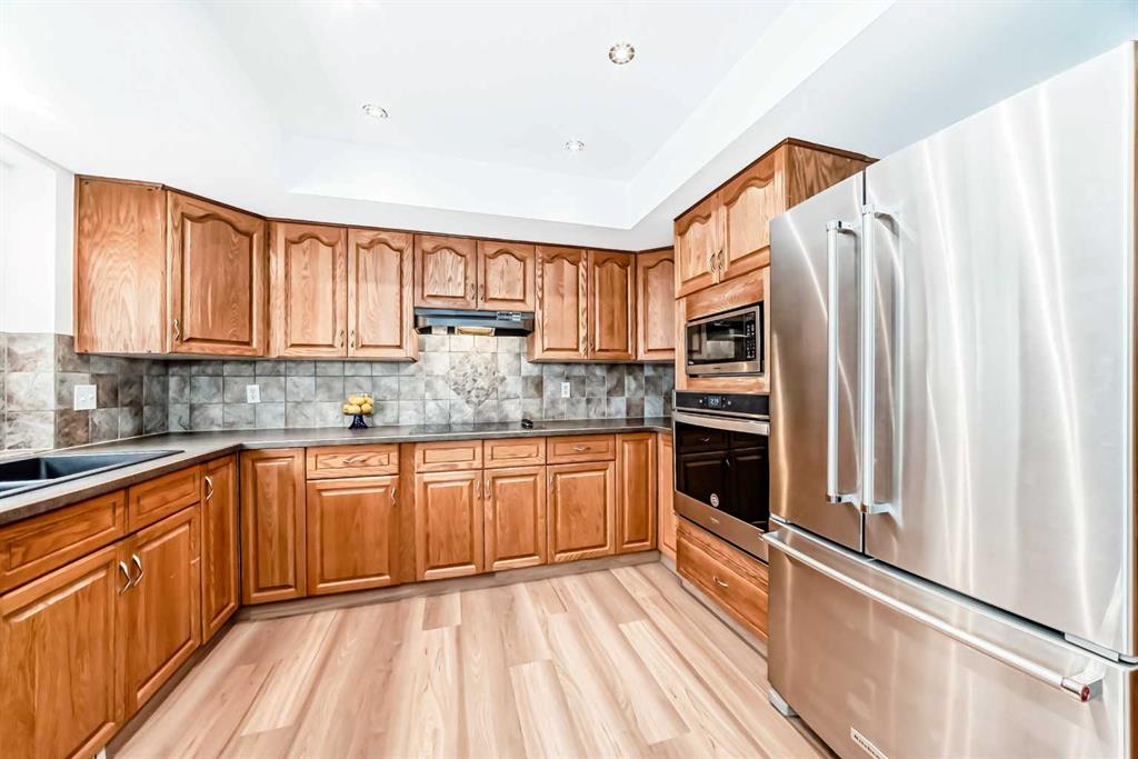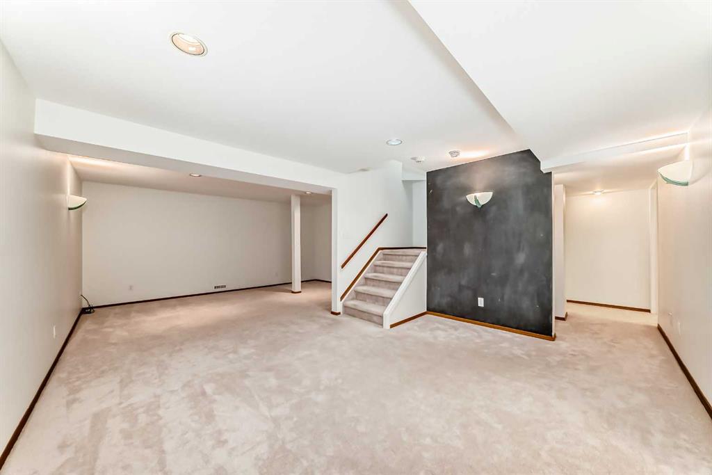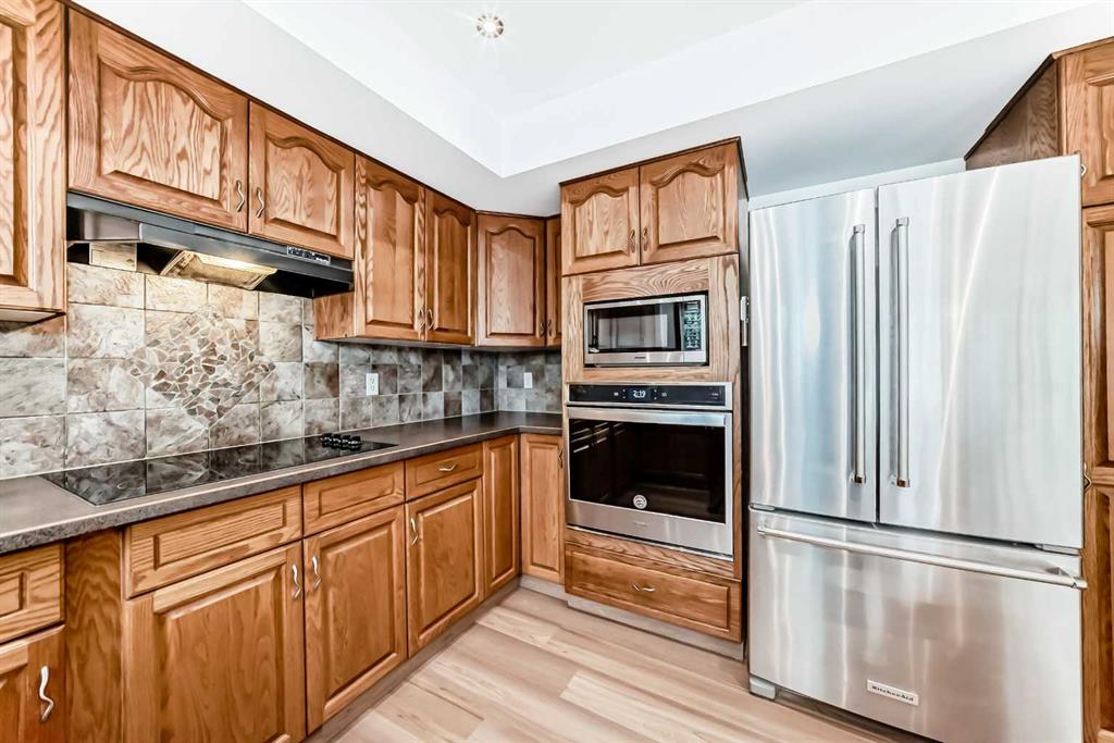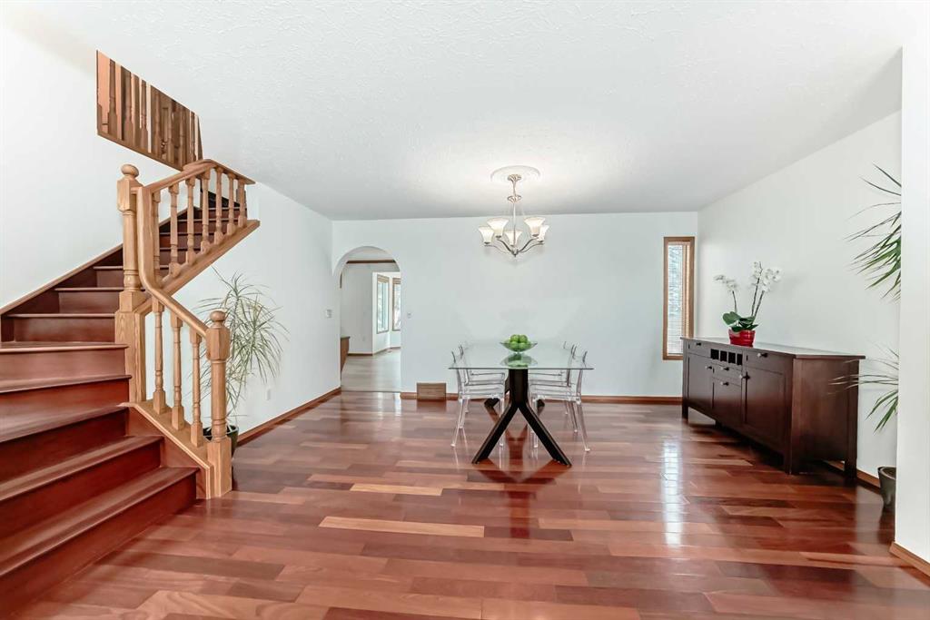 Welcome to this beautifully updated executive home offering over 2,230 sq ft of well-designed living space in the highly desirable community of Woodbine. With 4 bedrooms and 3.5 bathrooms, this home is perfectly suited for growing families. Step inside to soaring vaulted ceilings and a bright, inviting living and dining area finished with rich hardwood flooring, ideal for both everyday living and entertaining. The spacious kitchen is thoughtfully designed with newer appliances (cooktop 2026), brand-new vinyl plank flooring, and a sun-filled breakfast nook surrounded by windows. The main floor also features a warm and comfortable family room, perfect for relaxing evenings, complete with a beautiful gas fireplace, along with a built-in desk for work or study, a convenient 2-piece powder room, and a spacious laundry area. Upstairs, you’ll find three generously sized bedrooms, including a inviting primary retreat complete with a walk-in closet and convenient ensuite featuring double sinks, a jetted tub, and separate shower. The upper 4-piece bathroom includes heated floors, adding everyday comfort for the whole family. The fully finished basement extends your living space with a large family room, newer carpeting (2021), a spacious fourth bedroom, and a 3-piece bathroom, ideal for guests, teens, or extended family. This home has been meticulously maintained and upgraded, including full Poly-B replacement with PEX, recent interior repainting, including ceilings (2026), triple-pane windows, air conditioning (upper level), water softener (2024), hot water tank anode replacement (2024), underground sprinklers, a composite deck, and the roof was replaced in the summer of 2022. Ideally located close to excellent amenities, schools, transportation, and just minutes from Fish Creek Park, this home offers the perfect balance of comfort, convenience, and lifestyle. This home is a must see... schedule your showing today!