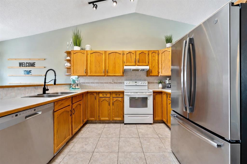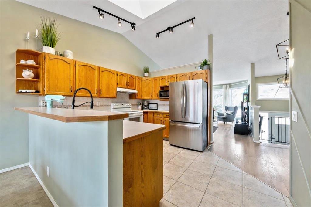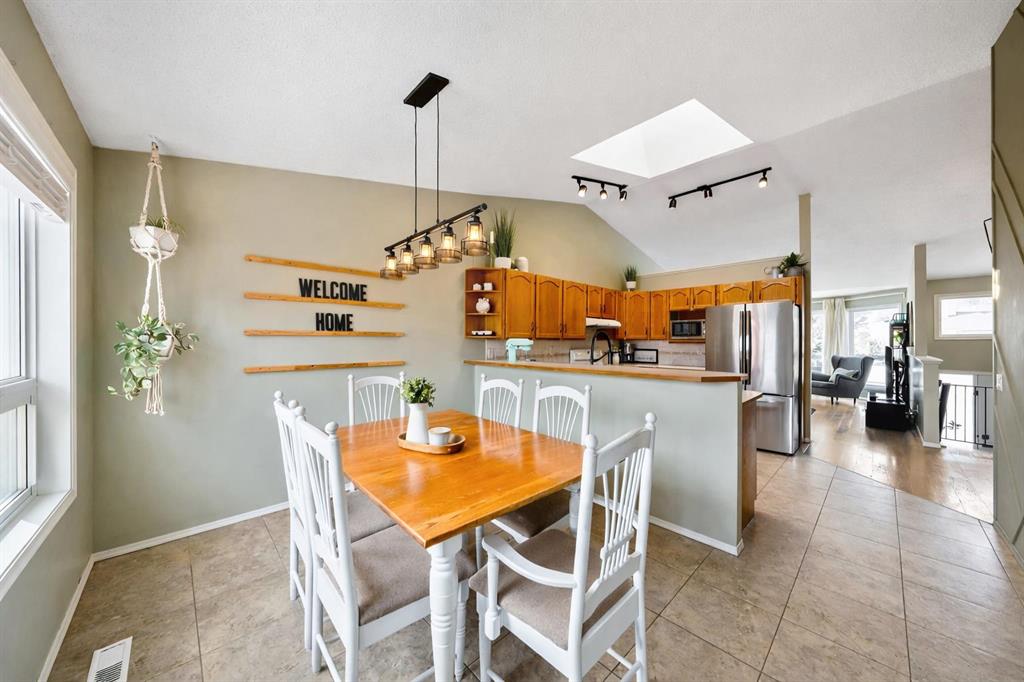 Incredible opportunity to own a beautifully updated 5-bedroom home in the highly sought-after West Terrace community—one of Cochrane’s most established and family-friendly neighbourhoods. Perfectly positioned, this home offers an exceptional lifestyle just steps to Mitford Middle School and École Notre-Dame des Vallées, with the scenic Bow River pathways, parks, and natural green spaces only a short walk away. Here, you’ll enjoy the perfect balance of convenience, community, and connection to nature. From the moment you step inside, you’re welcomed by warm, refined finishes and an inviting atmosphere that instantly feels like home. The stunning vaulted ceiling in the living room creates a bright, open ambiance, seamlessly connecting to the kitchen and dining areas—an ideal layout for both everyday living and effortless entertaining. The kitchen is filled with natural light, enhanced by large windows and a skylight, creating a cheerful and functional space at the heart of the home. The dining room offers an expansive setting for a grand table—perfectly designed for elegant entertaining and unforgettable gatherings with family and friends. The primary bedroom is a peaceful retreat, complete with a private ensuite, while two additional bedrooms and a full bathroom complete the thoughtfully designed main level. The fully developed lower level adds incredible versatility, featuring a spacious family room anchored by a cozy gas fireplace and a wet bar—perfect for movie nights or hosting guests. Two additional bedrooms, an updated full bathroom, and a generous laundry and storage area complete this level. Step outside to a backyard designed for both relaxation and play, with a deck ideal for summer BBQs and a beautifully landscaped green space perfect for kids and pets. Imagine evenings spent gathered around the fire under peaceful, star-filled skies. Additional highlights include a heated double attached garage, a newer garage door opener (approx. 3–4 years old), and extensive upgrades throughout. Major improvements include new triple-pane windows (Sept 2022), new front door (Sept 2022), a high-efficiency furnace (Dec 2020) with annual servicing (most recently Dec 24, 2025), central air conditioning, a Nest thermostat, radon mitigation system (Nov 2024), and full Poly B plumbing replacement (2026). The hot water tank was replaced in 2018, and the garage is equipped with a built-in heater for year-round comfort. This is more than just a home—it’s a lifestyle opportunity in a prime location where families thrive, nature is at your doorstep, and everyday convenience is unmatched. Book your private showing today!