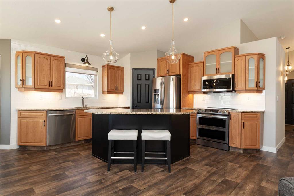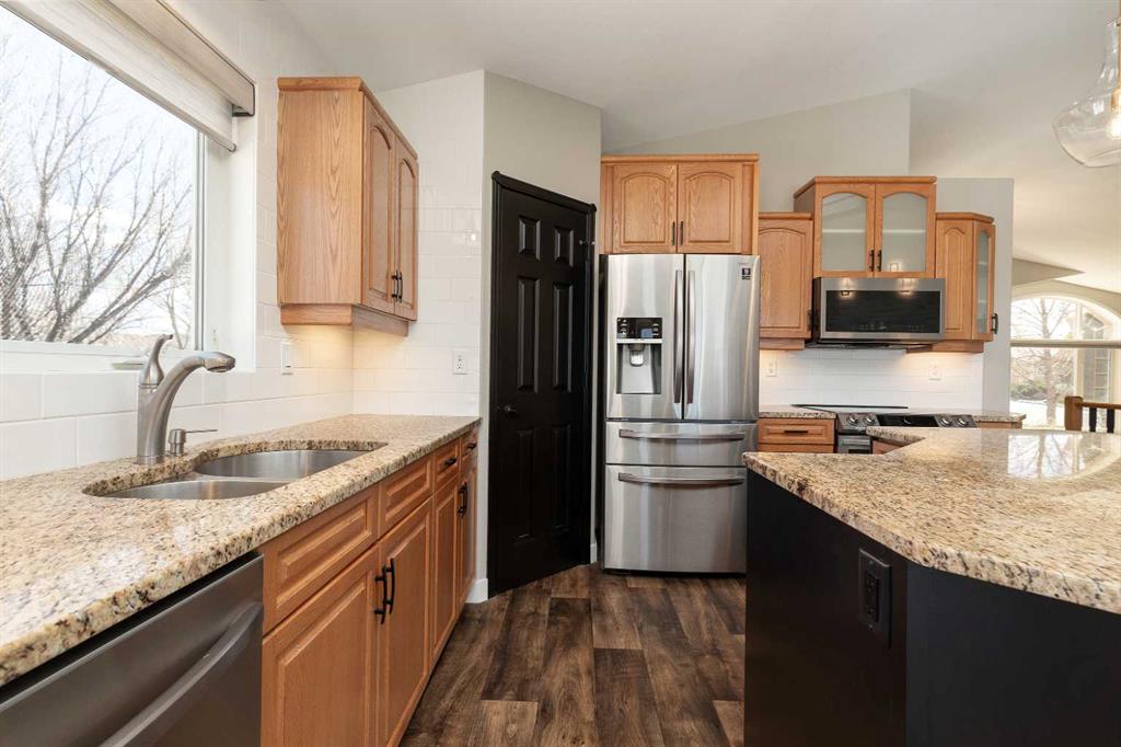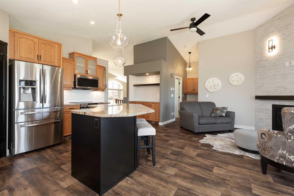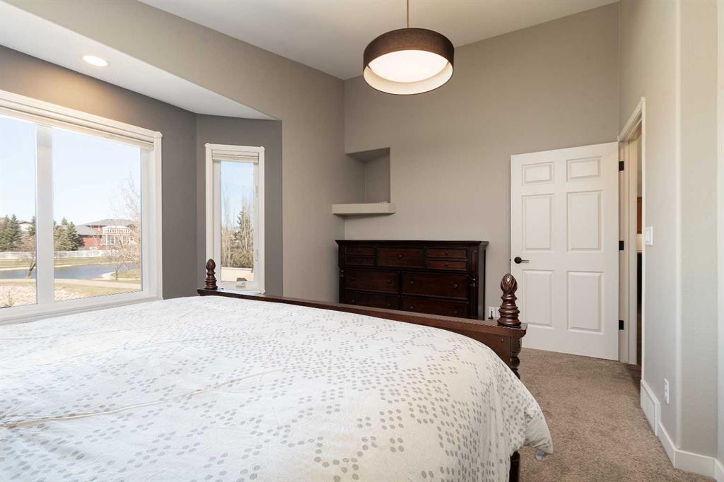 Welcome to your dream home! This exquisite executive bungalow offers an unparalleled lifestyle with breathtaking pond views and modern amenities. Nestled in a quiet cul-de-sac in the desirable south side Fairmont Park Landing. As you enter, you will be captivated by the vaulted ceilings and open concept design, beautiful oversized windows and accent lighting . The main floor features a stunning tile fireplace, adding warmth and elegance to the space. The kitchen boasts high-end appliances, including an induction/duoflex convection range, updatedbacksplash, and ample counter space, kitchen island, granite counter tops and of course the unstoppable views of the pond. Also a large wrap around deck off the diningroom. The primary retreat also hosts the unstoppable views of the pond, imagine waking up to those views. There is another nice sized bedroom and full bathroom on the mainfloor. The laudry room is ajacent to the primarty bedroom. The fully developed walkout basement features a stylish bar, oversized familyroom, access to the outdoor patio and of course the unstoppable views of the pond. Additional features include: - Custom Hunter Douglas blinds - New high-efficiency furnace, humidifier, and central air - New Garage heater - New light fixtures and pot lights throughout, most on dimmers - New vinyl flooring in the basement for durability and ease of maintenance - Beautifully landscaped yard with five new trees and bushes, providing privacy and curb appeal. You will love the oversized garage 27' x 29' and the oversized front driveway. This home is a rare find, combining luxury, comfort, and nature's beauty. Pride of ownership is very evident in this home. Don't miss out on the opportunity to make this stunning property your own!