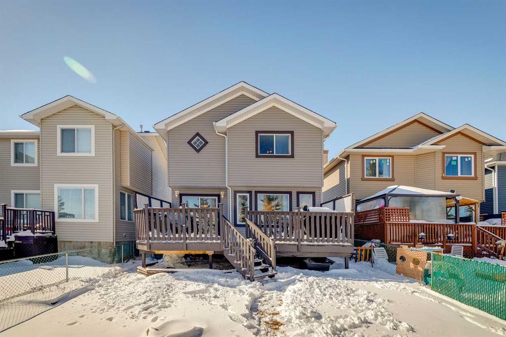 Welcome to this solid family home in the desirable community of Bridlewood, offering a total of nearly 2,000 sq. ft. of comfortable living space. Perfectly situated on a quiet street and backing onto Monsignor J.J. O’Brien School, this home is ideal for families seeking both convenience and tranquility. The main floor features a bright, open-concept layout with an abundance of natural light. The spacious kitchen is equipped with white cabinetry, granite countertops, and ample storage, all overlooking the dining area—perfect for both everyday living and entertaining. The inviting living room, complete with a gas fireplace, creates a warm and comfortable space to unwind. A convenient main floor laundry area and a half bath complete the main floor. Upstairs, the generous primary bedroom offers a walk-in closet and a private 3-piece ensuite. Two additional bedrooms and a full bathroom provide comfortable space for the entire family. The fully finished basement offers excellent versatility, featuring a fourth bedroom, full bathroom, a den or office space, and a spacious recreation room—ideal for family movie nights, a home gym, playroom, or comfortable guest accommodations. Step outside to enjoy the large deck—perfect for summer mornings or evening relaxation. The backyard offers gated access to the school field, creating an ideal space for children to play and explore. With a newer roof and hot water tank already in place, this home offers added peace of mind for years to come. Ideally located close to schools, parks, pathways, C-Train access, and a wide range of everyday amenities, this home offers a great opportunity to enter a family-friendly community with a strong long-term investment