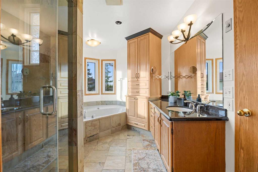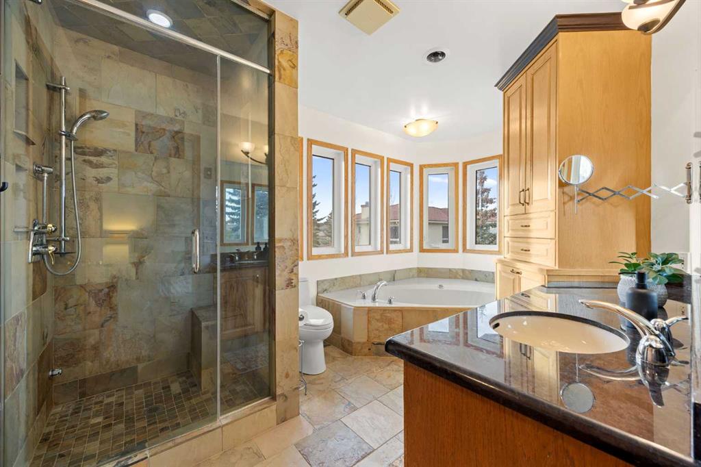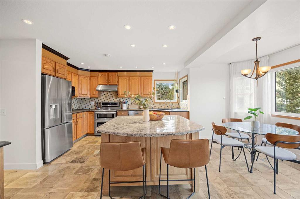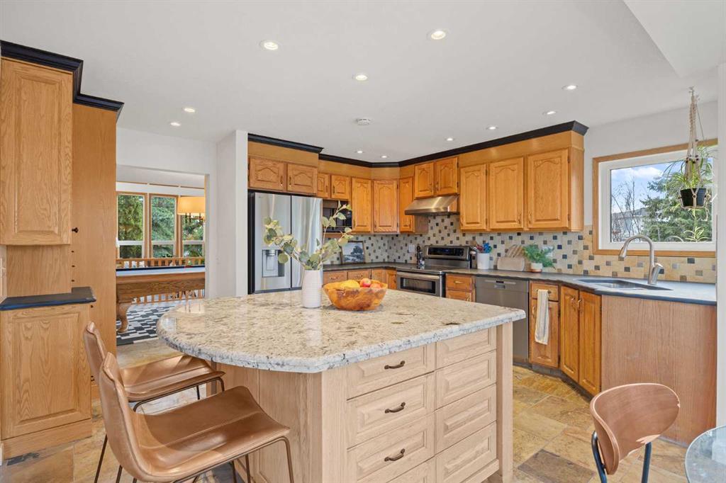 Whether you’re looking for multi-generational living—with a main floor bedroom and full ensuite, or the opportunity to build generational wealth with an income-producing suite, this home delivers. Tucked along the ravine in Edgemont and set on a large pie-shaped lot in a quiet cul-de-sac, this beautiful home offers an exceptional blend of privacy, space, and everyday convenience. With direct access to the Edgemont pathway system and stunning ravine views, this is a rare opportunity to own in one of NW Calgary’s most sought-after locations. A standout feature is the legalized one-bedroom walkout basement suite, offering excellent income potential or a comfortable space for extended family. With its own separate entrance and full living functionality, it adds meaningful flexibility and long-term value. Thoughtfully maintained and extensively updated, all Poly-B plumbing has been removed and the vast majority of windows have been updated. Major mechanical upgrades were completed in 2024, including furnaces, hot water tank, and fresh paint throughout, along with a new radon mitigation system in 2025. The upper level also features a new washer, dishwasher, and fridge (2025), and durable concrete roofing tiles add to the home’s long-term reliability. Inside, soaring vaulted ceilings and large windows flood the home with natural light while showcasing the ravine setting. The main living areas are warm and inviting, with a cozy gas-assist wood fireplace in the family room and a bright breakfast nook that opens onto the rear deck overlooking the ravine. The kitchen is both functional and stylish, featuring a central island and soapstone perimeter countertops for a clean, modern feel. The layout is exceptionally well suited for families of all sizes. Upstairs offers a spacious primary retreat with a full ensuite, along with two additional large bedrooms and another full bathroom. A loft-style bonus room with built-in shelving provides the perfect space for a library, lounge, or play area. The main floor includes a private bedroom with its own full ensuite and walk-in closet—ideal for guests, extended family, or aging relatives seeking main-level living. In addition to the suite, a separate basement flex space with direct access to the lower patio adds even more versatility—perfect for a home gym, media room, or additional living area. The backyard is equally impressive, featuring beautiful crab apple and cherry trees. Additional highlights include an oversized double attached garage and newer window coverings throughout. The home’s timeless design feels both classic and current. Edgemont offers an unmatched lifestyle with scenic pathways, ravines, and proximity to Nose Hill Park. The home is also within walking distance to top-rated schools, including Edgemont School and Tom Baines, as well as everyday amenities like grocery stores, restaurants, and services. A rare combination of location, layout, income potential, and long-term value—this is a home you won’t outgrow!
