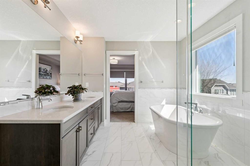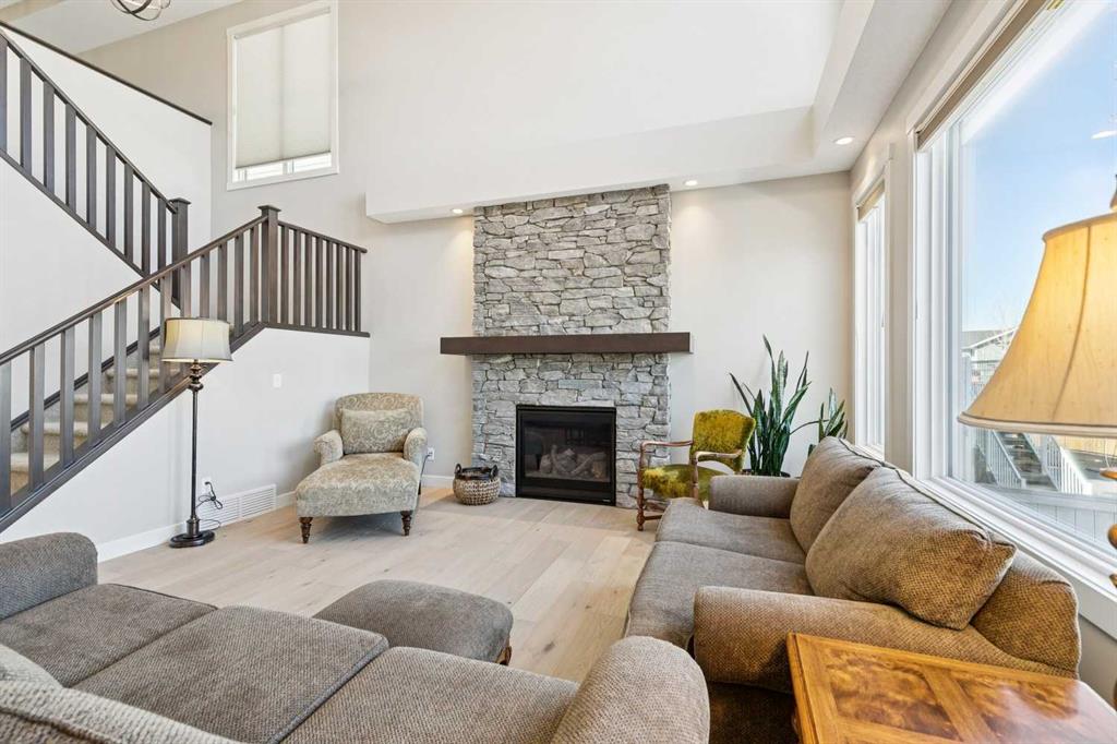 *OPEN HOUSE this Sunday, April 26, 2-4PM * SEE VIDEO * A semi-private lake access home featuring 4 beds and 4 baths in Auburn Bay with over 3623 sq ft of living space - tucked into a quiet cul-de-sac, thoughtfully upgraded and meticulously maintained. This stunning “Savona” floor plan welcomes you with a spacious dropped foyer with built-ins, leading into a bright and open main floor designed for both everyday living and elevated entertaining. The gourmet kitchen is the heart of the home, featuring designer cabinetry, granite countertops, a large central island, upgraded appliances, and a walk-through pantry—seamlessly connecting to an elegant dining area and a breathtaking great room with soaring two-storey ceilings, expansive windows, and a statement stone fireplace. A main floor den adds flexibility for work or quiet retreat. Upstairs, a beautifully detailed bonus room creates the perfect space to unwind, while the primary suite offers a 5-piece ensuite and a large walk-in closet. Two additional generously sized bedrooms and a convenient upper laundry complete the level. The fully finished basement expands your living space with a large rec room, rough-in for a wet bar, a fourth bedroom, and a full bathroom. Step outside to enjoy a fully permitted covered deck with privacy glass, overlooking a landscaped yard complete with upgraded drainage, a cobblestone walkway, and a variety of fruit trees. The triple car garage adds both function and convenience, while gemstone lighting on the front and back of the home elevates curb appeal year round. Additional upgrades include wide plank, white oak engineered hardwood, extensive energy saving solar panels, recently upgraded triple-glazed casement windows and a water purification system—bringing efficiency and comfort together. Enjoy a private walkway connecting you to the beach, a shared dock and year-round activities through the Auburn Bay Homeowners Association. Walking distance to schools, shopping, and dining, and just minutes to the South Health Campus, YMCA at Seton, and major routes including Stoney Trail and Deerfoot Trail—this is lake community living at its finest. Book your private viewing today!