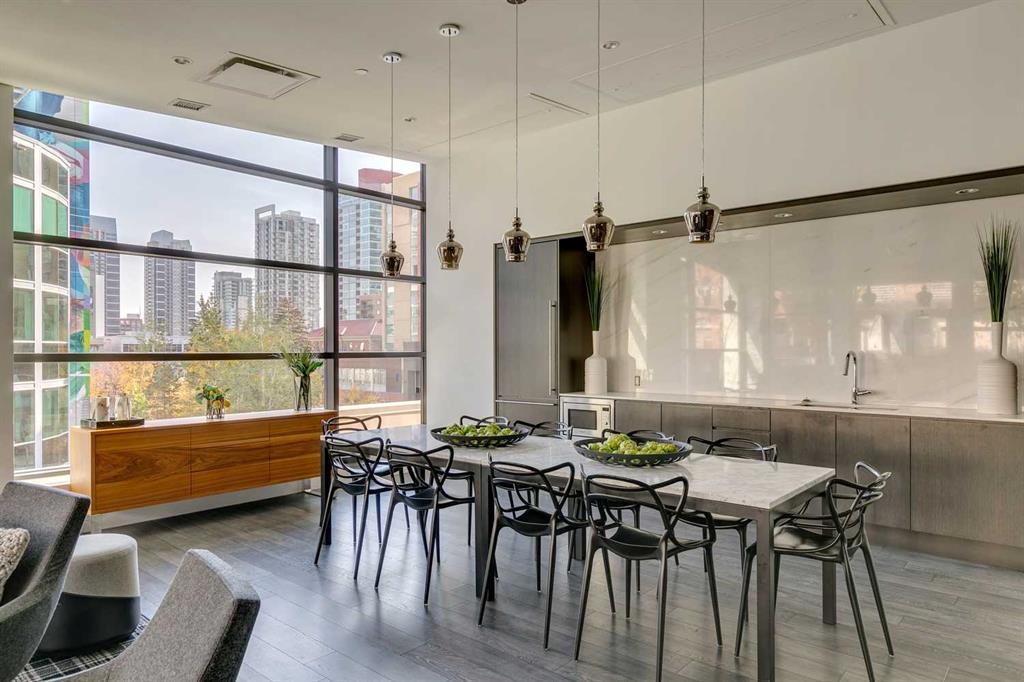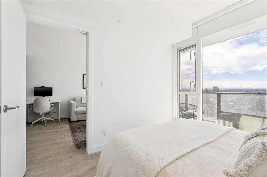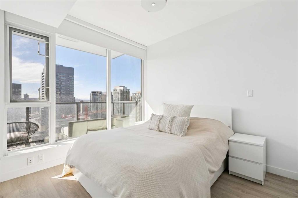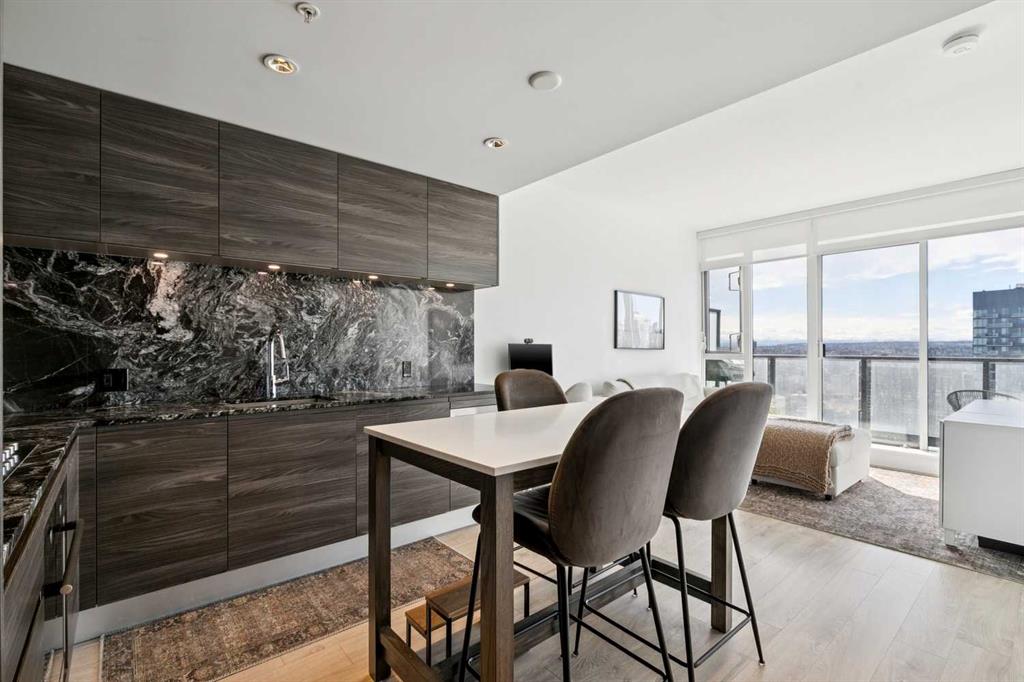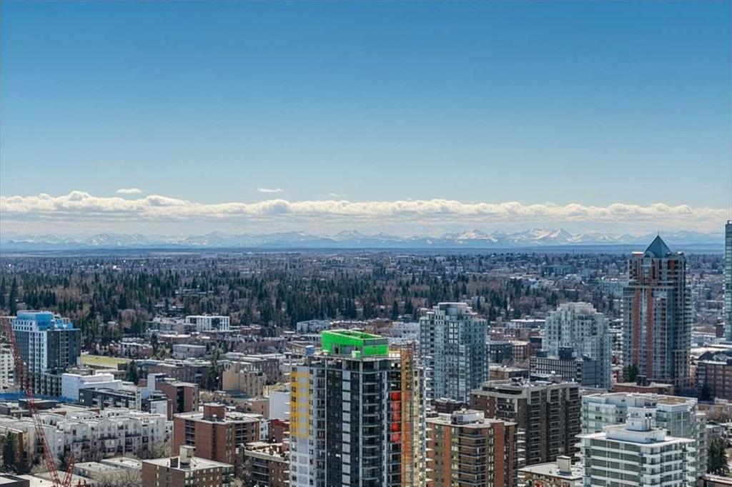 30th floor, WEST-FACING condo with MASSIVE BALCONY and UNDERGROUND parking. Perfectly positioned to capture panoramic mountain views, the downtown skyline, and stunning sunsets. Located in the heart of the Beltline, surrounded by many of Calgary's best shops, restaurants, and Memorial Park. Inside, the home blends modern design with everyday comfort. Floor-to-ceiling windows flood the space with natural light, while high ceilings and wood laminate flooring create an open, airy feel. The sleek kitchen features Italian Armony Cucine cabinetry, stone slab countertops and backsplash, a gas range, integrated panel refrigerator, custom island, and premium finishes throughout. The spacious bedroom includes a walk-in closet, complemented by a well-appointed bathroom with a large tub/shower combo. Additional features include built-in shades, air conditioning, in-suite laundry, underground titled parking, and an extra storage locker. The modern style and design of Park Point and its amenities allow for the perfect urban lifestyle. Park Point offers 24/7 concierge and security, a fully equipped fitness centre, yoga studio, sauna and steam room, social lounge with kitchen, party room, outdoor BBQ and lounge area, guest suite, underground visitor parking, secure bike storage, and a car/pet wash station. Opportunities like this don’t come up often—book your showing today before it’s gone!
