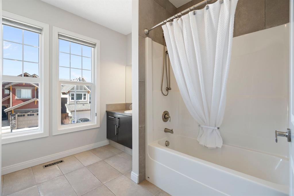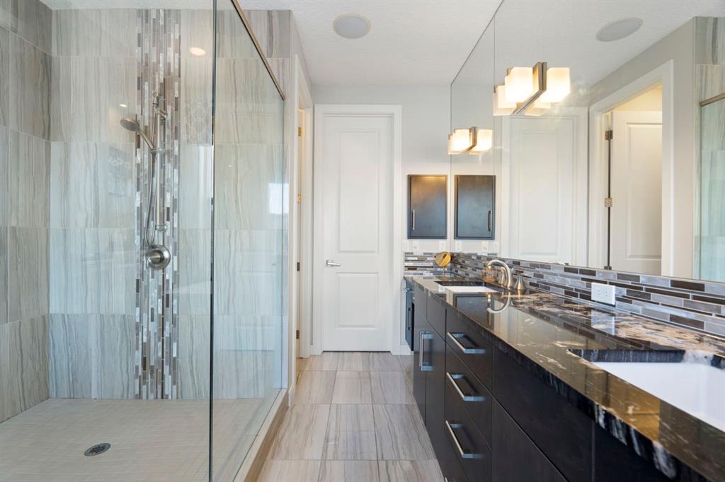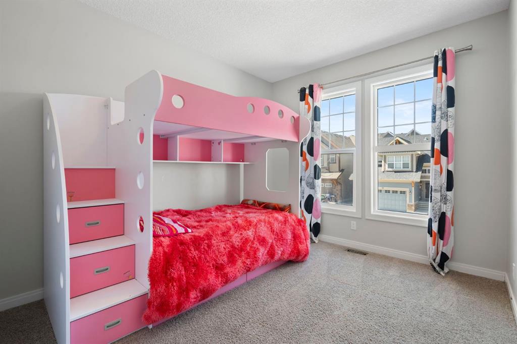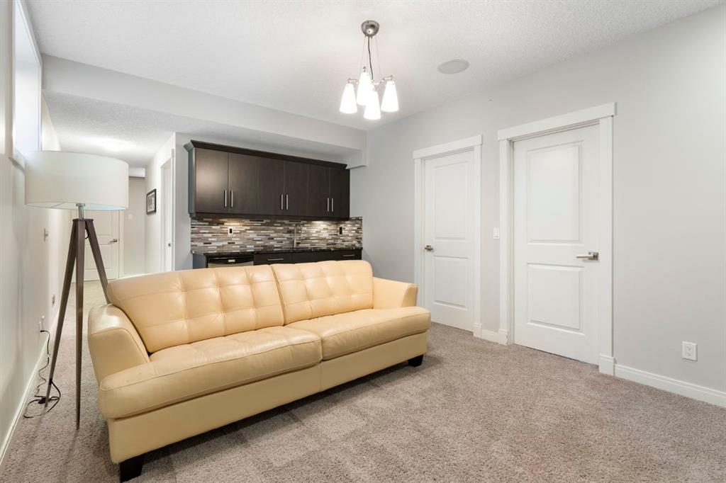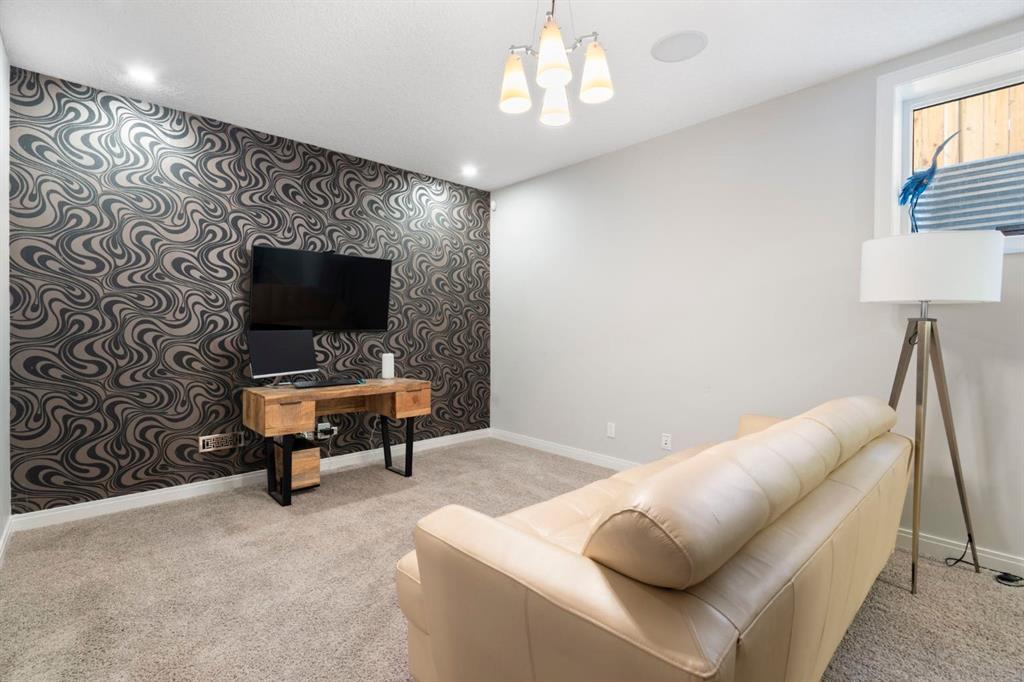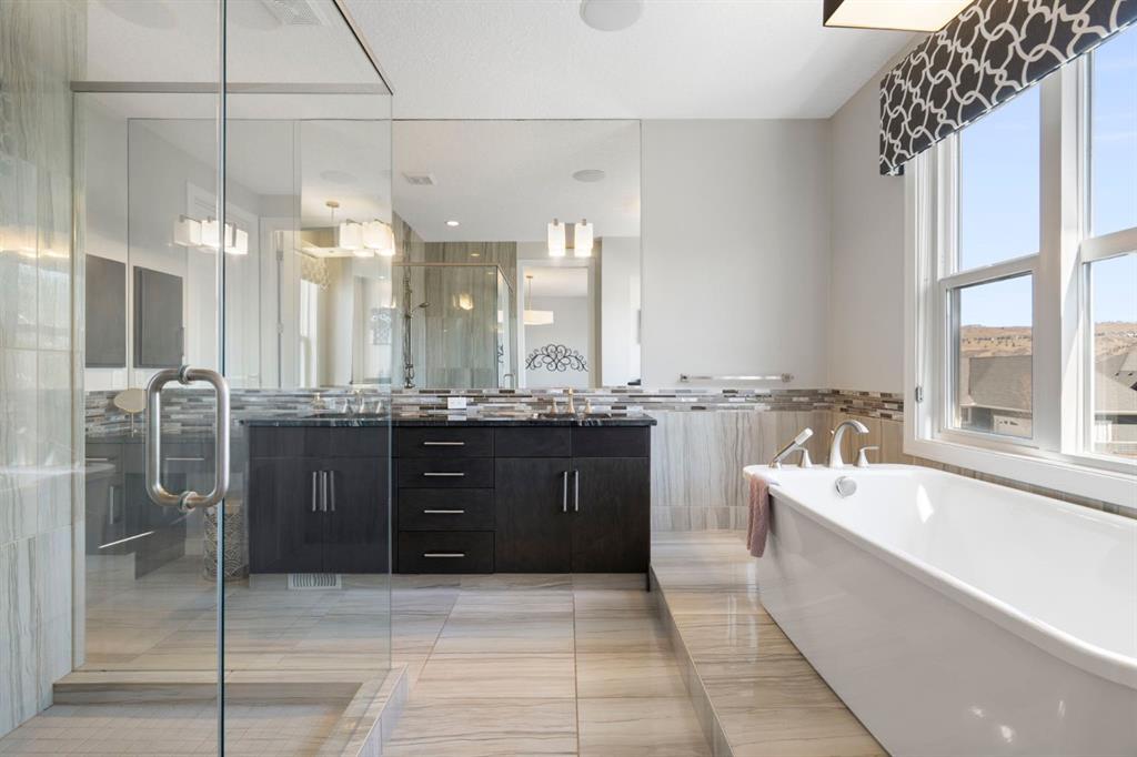 Located in the community of Riviera, this home offers over 3,000 sq ft of finished living space on a quiet crescent set just behind a wooded area and minutes from the Bow River pathways. The main floor opens with 10-foot ceilings and a bright, open layout that carries through the kitchen, dining and living spaces. The kitchen is centred around a large island with seating, stainless steel appliances and a walk-through pantry that connects directly to the mudroom and garage entry. The dining area includes a bump-out for a larger table, while the living room is anchored by a gas fireplace. A flex space at the front of the home adds versatility for a home office or sitting area, along with a powder room to complete the main level. Upstairs, the bonus room continues the sense of space with 10-foot ceilings and separation from the main living area. The primary bedroom is positioned for privacy and includes a walk-in closet and ensuite with a soaker tub, tiled shower and double vanity. Two additional bedrooms, a full bathroom, and an upper laundry room with a sink add everyday convenience. Built-in features like the desk and window seat bring in a bit of character without taking away usable space. The fully finished basement adds another layer with a family room, wet bar, dedicated media room, fourth bedroom with egress windows, and a full bathroom. Additional features include dual furnaces and air conditioning units for temperature control between floors, a speaker system wired throughout, adjustable lighting, central vacuum, water softener with reverse osmosis, and an in-ground sprinkler system. Riviera is known for its access to the Bow River and pathway system, along with its proximity to Spray Lake Sawmills Family Sports Centre, the parks and ball diamonds in Greystone Park, and everyday essentials at Co-op Food Store. With quick access to downtown Cochrane and an easy commute into Calgary, the location offers a balance of outdoor space and convenience. Call your favourite realtor and book a showing today!
