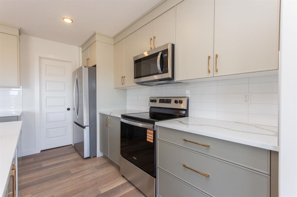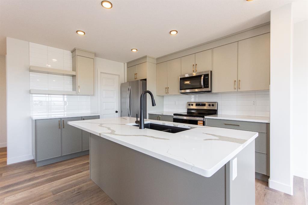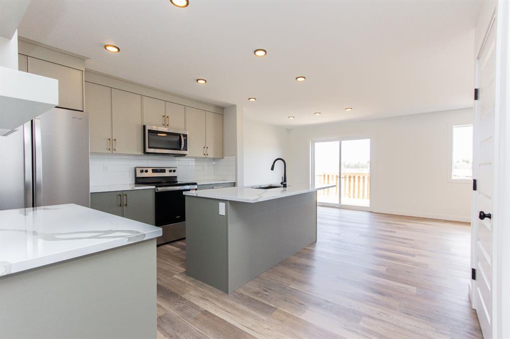 Be the first owner of this brand new Laebon home in beautiful Meadowlark Estates! Situated only steps from a playground reserve and a huge park, and within walking distance to the high school, this home is the perfect place for a growing family. Offering 1707 square feet, this best selling 2 storey floorplan offers a wide open main floor layout, an attached double garage with floor sump, and a large second floor bonus room. The kitchen is well appointed with raised two tone cabinetry, stainless steel appliances, quartz countertops, a large island with eating bar, and a large walk in pantry. The living area is spacious and bright, and the adjacent dining area offers access to the back deck through large sliding patio doors. Upstairs you'll find a spacious primary bedroom with a large walk-in closet and your own private 4 pce ensuite, while two additional bedrooms share a 4 pce bathroom, and you'll appreciate the convenience of upper floor laundry. You'll love ending your day in the huge bonus room, which makes the perfect space for family movie nights or a relaxing space to wind down. The attached garage is insulated, drywalled, and taped and has a floor sump to keep your floors dry in winter. If you need more space, the builder can complete the basement development for you, and allowances can also be provided for a washer and dryer to make this a completely move in ready package. Poured concrete front driveway, front sod, and rear topsoil to grade are included in the price and will be completed as weather permits. 1 year builder warranty and 10 year Alberta New Home Warranty are included. Taxes have yet to be assessed. Immediate possession is available!