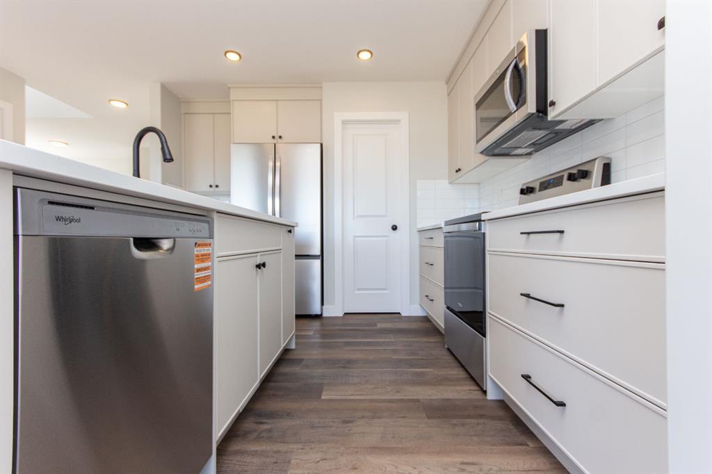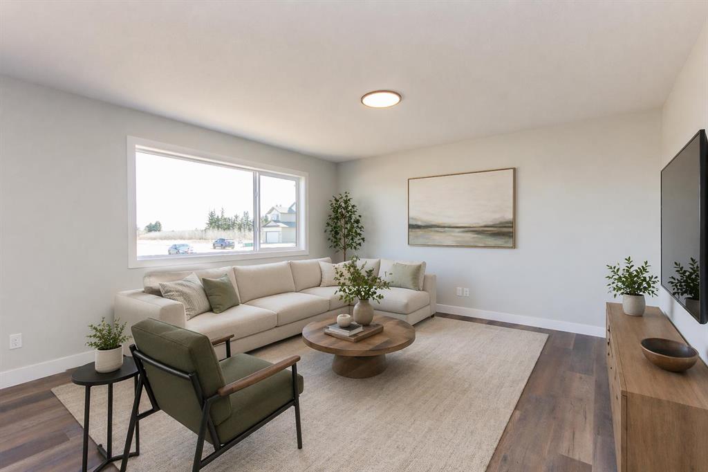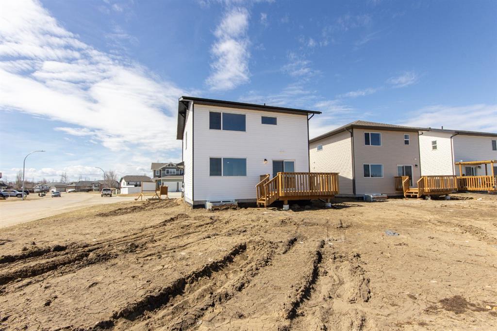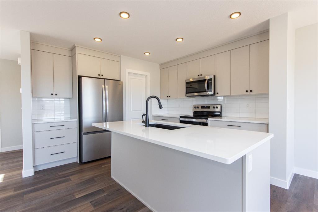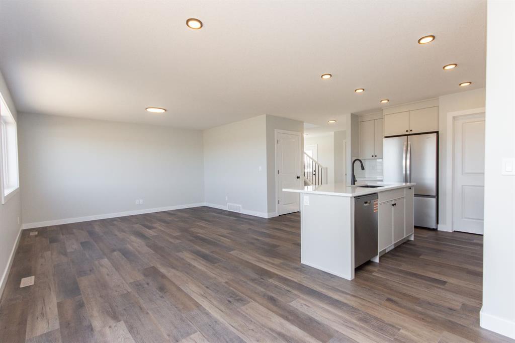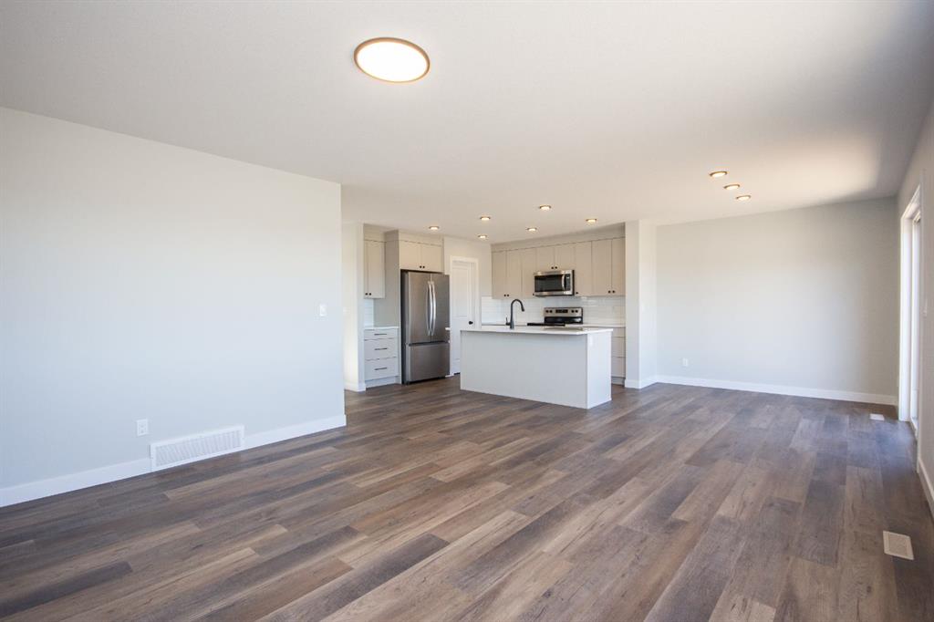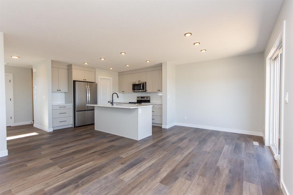 Only steps from a huge park and playground reserve, and within walking distance to the high school, this brand new Laebon built home in beautiful Meadowlark Estates is available for immediate possession! Designed with family in mind, this spacious 1896 sq ft floor plan offers a wide open living space with vinyl plank flooring, large windows, and modern finishes throughout. A nicely appointed kitchen offers raised cabinetry, stainless steel appliances, quartz countertops, a large island with an eating bar, and a walk in pantry. The living area is bright and spacious, and the adjacent dining area offers access to the back deck through large sliding patio doors. Upstairs you'll find a spacious bonus room, two nicely sized kids rooms, a shared 4 pce bathroom, and conveniently located laundry. The large primary suite offers a 4 pce ensuite with a large soaker tub, walk in shower, private water closet, and a spacious walk in closet. The attached garage is insulated, drywalled, and taped and has a floor sump to keep your floor dry in the winter. If you need more space, the builder can complete the basement development for you, and allowances can also be provided for a washer and dryer to make this a completely move in ready package. A poured concrete front driveway, front sod, and rear topsoil to grade will be completed by the builder as weather permits. 1 year builder warranty and 10 year Alberta New Home Warranty are included. Taxes have yet to be assessed.