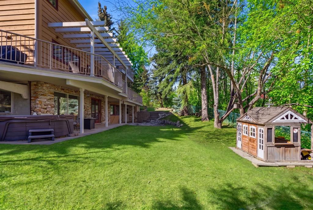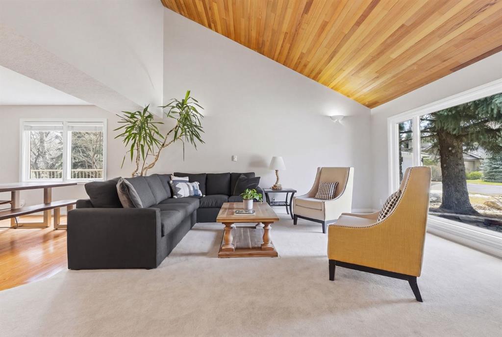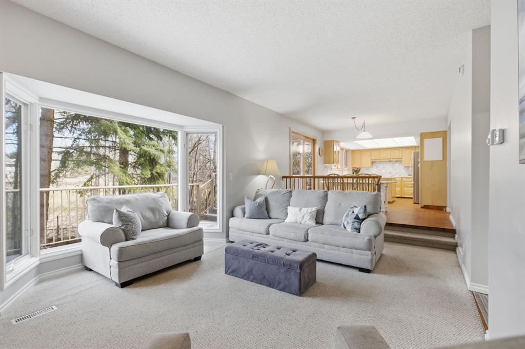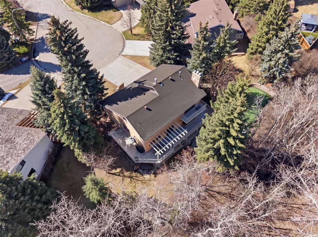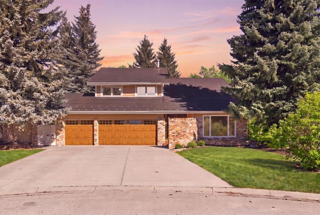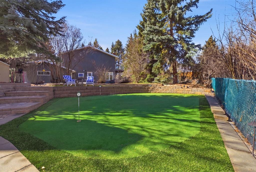 Opportunities like this are exceptionally rare in the prestigious community of Varsity Estates. Beautifully landscaped with mature trees and backing directly onto the Silver Springs Golf Course fairway and a stunning treed ravine area, this exceptional property offers a level of privacy and natural beauty rarely found in the city. The home has been lovingly maintained through the years and offers an amazing chance to secure a stunning location in this elite community Tucked away on a quiet cul-de-sac, creating a peaceful setting that feels worlds away while remaining close to every city convenience. Set on an expansive pie-shaped lot that offers over 10,000 sq ft with an impressive 150-foot wide rear yard, this property delivers both space and seclusion. Stunning stone work and mature landscaping surrounds the home, while the private backyard offers multiple areas to relax, entertain, and enjoy the space, including your very own putting green. It is a setting that is incredibly hard to replicate in Calgary. Inside, the spacious two story home delights with over 2500 sq ft of above grade sq ftg and a bright and functional layout designed for family living. Large windows throughout fill the space with natural light and perfectly frame the surrounding greenery. Soaring cathedral ceilings create an airy first impression, while the main rooms provide ample space for everyday living and entertaining alike. The upper level features four bedrooms, an increasingly hard-to-find layout making this an ideal home for growing families. The fully developed walkout basement adds more additional living space with a spacious family room with fireplace and bar area overlooking the outdoor views and a flex room with large windows creating the perfect space for a games room or fitness area. This level offers a 2 pce powder room and sauna to relax and unwind in. There is opportunity for a 5th bedroom with the addition of an egress window. Whether hosting guests, creating a recreation zone, or simply enjoying extra room to spread out, this lower level offers exceptional flexibility. The home is completed with a triple attached heated garage, providing outstanding space for vehicles, storage, hobbies, or workshop needs. A 50 year Euroshied roof was installed in 2014, the furnaces were serviced in 2025 and several windows have been replaced over the years. This is an incredible opportunity to move in and enjoy or renovate to suit your family needs in this incredible location. The possibilities are endless. Varsity Estates is one of Calgary’s most established and sought-after communities, close to schools, parks, pathways, Market Mall, the University of Calgary, and major routes. This is a rare chance to secure a premier lot and an exceptional lifestyle.