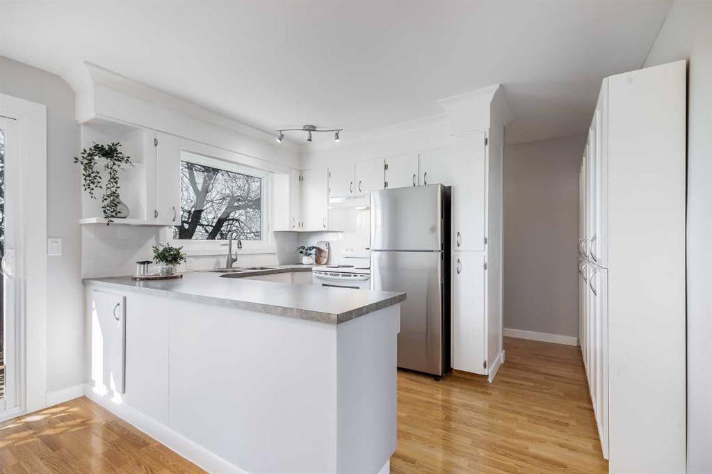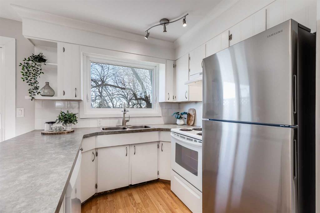 Located in the family friendly community of Ranchlands, this four-bedroom, two full bathroom bi-level home offers over 1,900 square feet of developed living space and includes an illegal suite, offering flexibility for a variety of living arrangements. A front tandem driveway allows for convenient off-street parking, and the home was newly sided in 2024 with James Hardie board, adding long-term value. The main floor is filled with natural light from large windows that brighten the spaces throughout the day. The living room offers a comfortable area to relax and unwind, while the U-shaped kitchen and dining area are positioned together to create a functional flow. The kitchen features ample counter space, abundant storage, and a window overlooking the backyard. Sliding doors off the dining area open onto a raised deck, providing an easy connection to outdoor space. This level also includes a generously sized primary bedroom, a second bedroom, a four-piece bathroom, and its own laundry for added convenience. The lower level is developed as an illegal suite with a separate entrance, offering privacy and flexibility. It includes two bedrooms, a four-piece bathroom, and a well-equipped kitchen complete with stainless steel appliances, extensive cupboard and counter space, and an island with seating. A comfortable living and dining area completes the space, along with access to a lower patio, additional storage, and dedicated laundry. The backyard is south-facing and thoughtfully arranged, with a sloped landscape that provides depth and character. A large grassy area is complemented by mature trees, creating a sense of privacy and a quiet outdoor setting. Alley access adds functionality, while new fencing on three sides and a storage shed contribute to both usability and organization. Recent upgrades enhance the home’s efficiency and overall condition. All windows and exterior doors were replaced in 2024 and feature triple-pane glass with a transferable 25-year warranty. The roof, including asphalt shingles, gutters, and flashing, was also completed in 2024. Attic insulation has been topped up, and the furnace has been recently serviced. Additional updates include a new upstairs washer and dryer in 2026, an updated refrigerator, and a one-year-old dishwasher installed in 2025. The location offers easy access to everyday amenities and recreation. Nearby, the Ranchlands Community Association features an outdoor rink, while Ranchlands Community Park includes tennis courts, baseball diamonds, and open fields. Ranchlands and St. Rita schools, along with nearby playgrounds, are within walking distance. Major routes including John Laurie Boulevard, Crowchild Trail, and Stoney Trail make commuting straightforward, with quick access to the mountains. Outdoor enthusiasts will appreciate being a short drive from Nose Hill Park, while shopping, dining, and services are available at Crowfoot Crossing, home to the YMCA Calgary and the Calgary Public Library. Check out the 3D Tour!