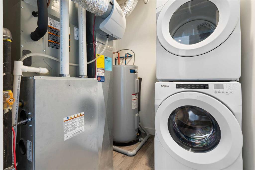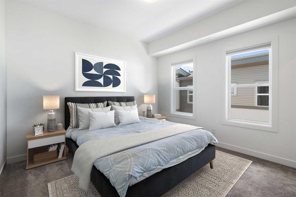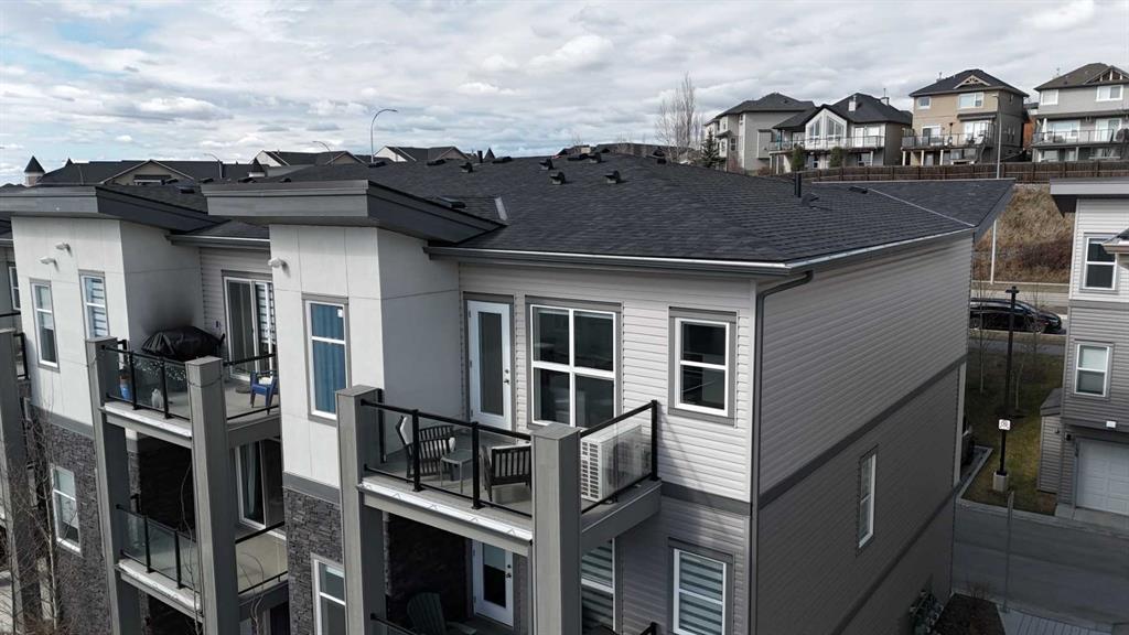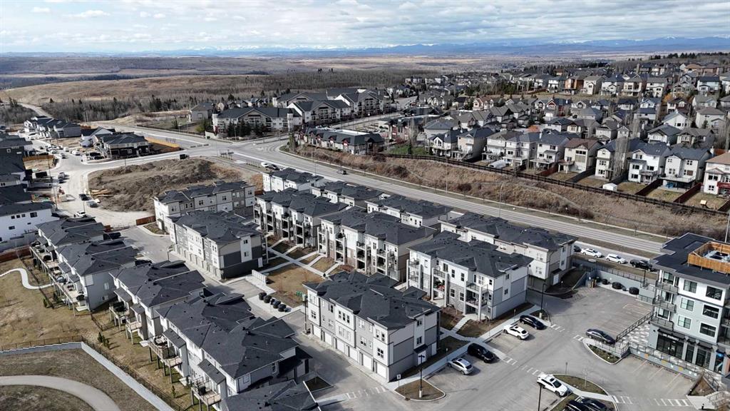 Welcome to this beautifully appointed top-leve, end unit townhome in the highly sought-after community of Springbank Hill, offering stunning views from your sunny upper deck. Thoughtfully designed with modern finishings throughout, this home features durable laminate flooring across the main living space and an open-concept layout perfect for everyday living and entertaining. The stylish kitchen is sure to impress with quartz countertops, a trendy backsplash, convenient eat-up bar, and an upgraded KitchenAid appliance package. The spacious living room is filled with natural light from large windows overlooking the greenspace, creating a bright and inviting atmosphere. This home offers two generously sized bedrooms, including a primary retreat complete with a private three-piece ensuite and huge walk-in closet. A second full four-piece main bathroom and convenient main floor laundry, with storage, complete the main living space.. Additional features include air conditioning for year-round comfort, an attached single garage and a main floor flex space. All of this and low condo fees as the cherry on top!. Ideally located just minutes from shopping, dining, transit, and fitness amenities, this property combines convenience with elevated living in one of Calgary’s most desirable communities.