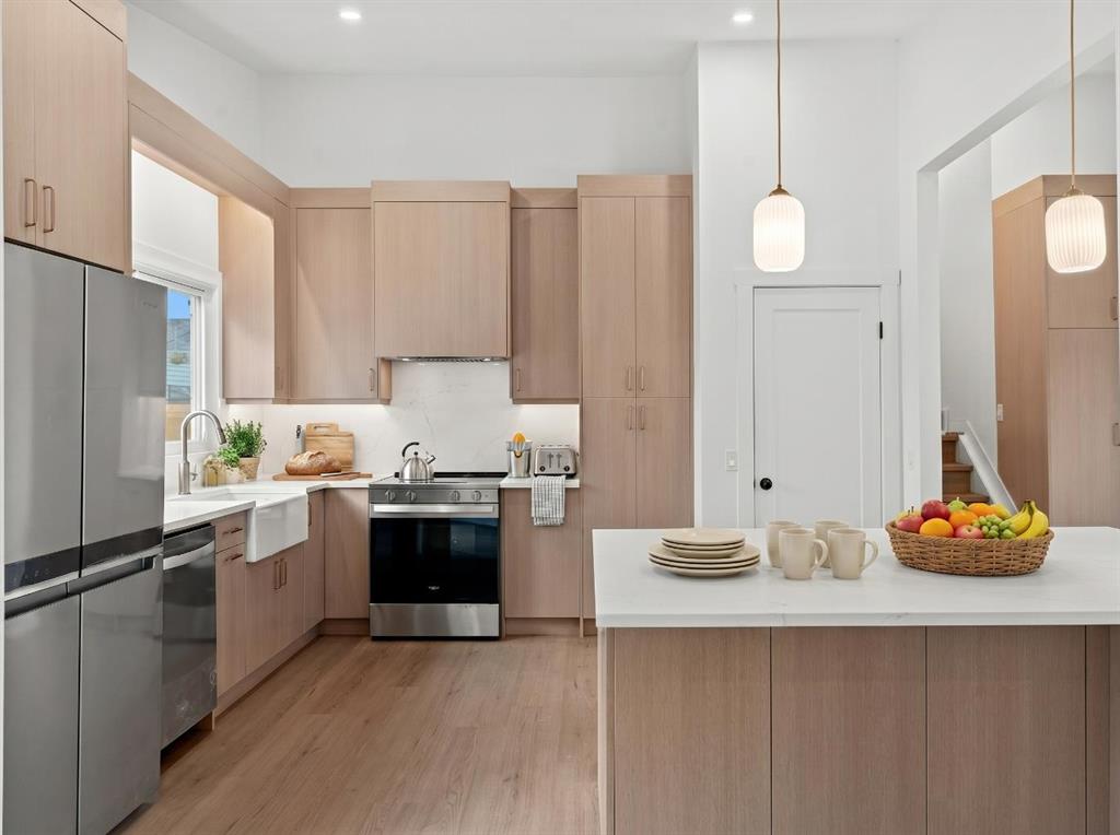 Welcome to 212 Queen Anne Road in the sought-after community of Queensland! This fully renovated home offers 5 bedrooms and 4 bathrooms, delivering exceptional space, style, and functionality for modern living. The main floor features a bright and inviting living room, a chef’s kitchen designed for both everyday living and entertaining, and a spacious dining area. Upstairs, you’ll find 3 generously sized bedrooms and 2 bathrooms, including a private ensuite in the primary bedroom. The lower level boasts a large recreation room complete with a wet bar, along with an additional bedroom and full bathroom—perfect for guests or extended family. The basement adds even more flexibility with a versatile space ideal for a home office, gym, or study, plus another bedroom with its own ensuite bathroom. Recent upgrades include new windows, a brand-new front porch, and freshly painted deck and fencing. The property also features a heated double detached garage and a convenient RV parking pad at the back. Located in a well-established, family-friendly community, Queensland offers access to excellent schools, parks, playgrounds, and scenic pathways. Enjoy being just minutes from Fish Creek Park, shopping amenities, public transit, and major roadways for an easy commute. This home truly combines modern upgrades with a fantastic location—an incredible opportunity you don’t want to miss!
