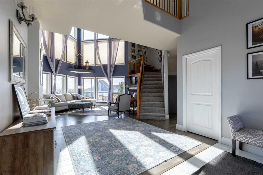 A stunning home in Mountain Meadows - a pristine community just west of Lethbridge that offers unobstructed coulee and mountain views, 1 acre lot size and peaceful country living. This 5 bed, 3.5 bath 2 storey boasts recent upgrades including a newly renovated bathroom and new paint! There's soaring ceilings, a walk-up to grade basement and plentiful parking! Stepping inside the grand entrance, there's an office/flex space, a huge living room with tons of natural light and a gas fireplace, granite adorned kitchen, powder room and walk-through mudroom. The primary suite enjoys a 4 piece ensuite with soaker tub and a massive walk-in closet! Heading upstairs there are 2 additional bedrooms that share a 4 piece bathroom. The basement has 9' ceilings, a bright family room with direct access to the covered patio, 2 more bedrooms, laundry room with sink, 3 piece bathroom and storage space! There's a ton of deck space, a gazebo protected by wind screen, fenced yard and more!