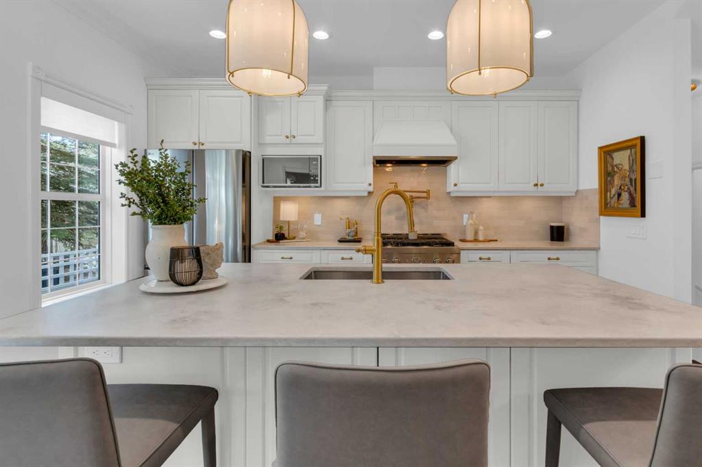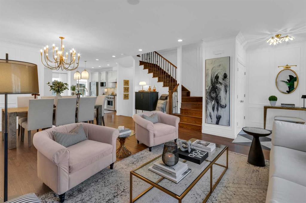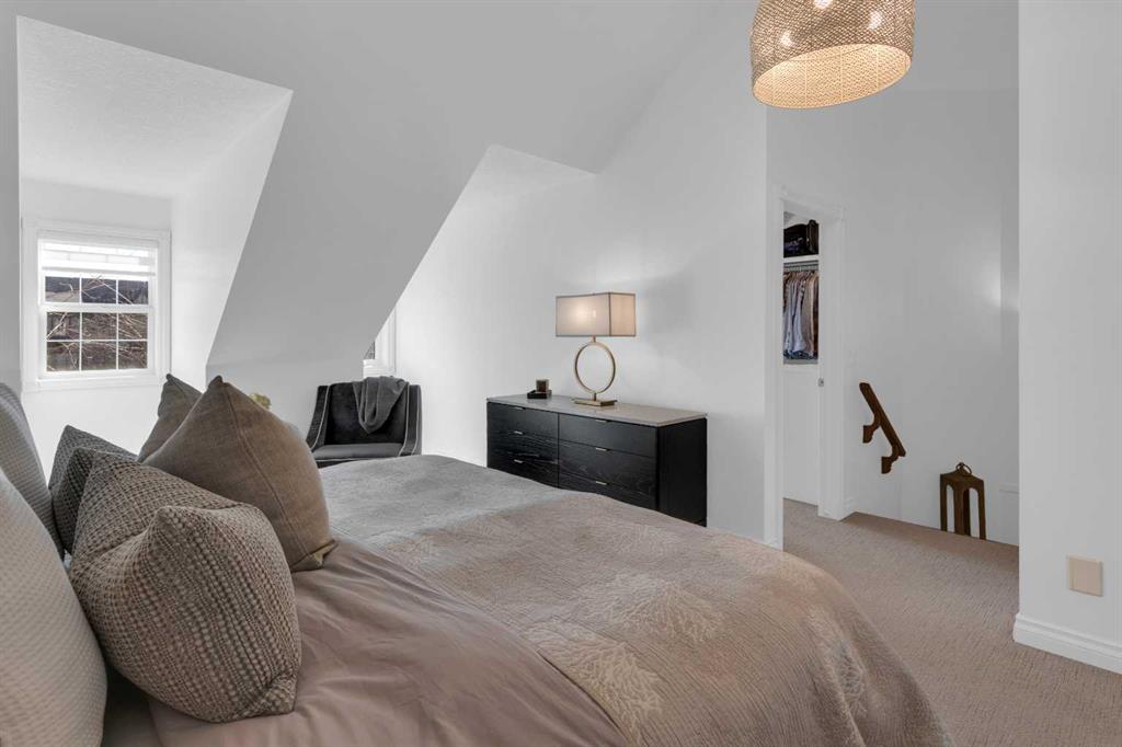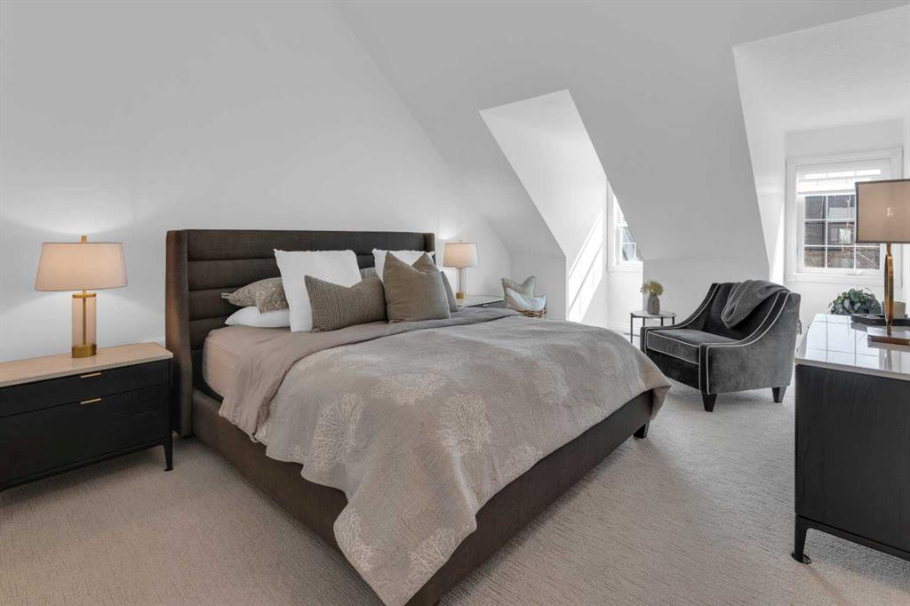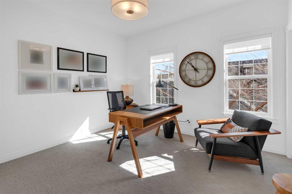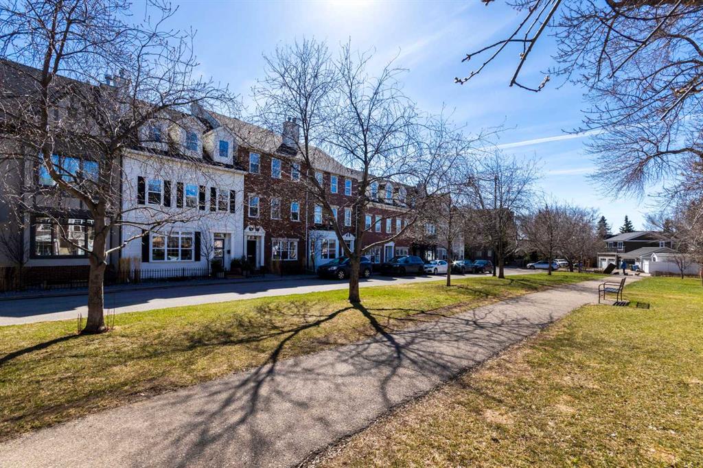 *OPEN HOUSE SATURDAY APRIL 25, 1:30pm-3:30pm* Welcome to this beautifully renovated 2,396 sq ft townhouse on one of Calgary’s iconic, tree-lined boulevards, complete with a central park and walkway. This impressive 3-storey home was extensively renovated in mid-2024. The French-inspired, elegant design reflects a focus on high quality, function, and refined detail. The main floor was reimagined to improve flow, including the relocation of the powder room and reconfiguration of walls. New site-finished hardwood with a modern matte finish was seamlessly integrated with the existing flooring. The stylish foyer features black and white harlequin tile, leading into an open-concept, light-filled living and dining area overlooking the boulevard. Updated lighting throughout the main floor elevates the space, while custom wall paneling carries throughout, adding architectural detail. The kitchen is a standout, with custom cabinetry, a large island, stone countertops and backsplash, and new stainless-steel appliances. The main floor is completed by a new powder room and a well-designed mudroom with plenty of storage, along with access to the private patio and insulated, drywalled double detached garage. Upstairs, the second level offers a large, warm, and inviting family room with a redesigned fireplace surround and new insert, a bright office with built-ins, a spacious bedroom, full bathroom, and a well-appointed laundry room with sink and new cabinetry, countertop, and flooring. The third floor is dedicated to the primary suite, a serene retreat with vaulted ceilings and dormer windows, finished in beautiful, light, neutral tones, along with two walk-in closets and a spacious, fully renovated ensuite featuring a glass shower, freestanding tub, and designer finishes, with French-inspired design details continuing throughout.The basement was fully developed from the studs into a warm, stylish additional living space, including a family room with gym (or office area), an additional bedroom, and a full bathroom with glass walk-in shower. Additional upgrades include a new furnace, humidifier, hot water tank, central air conditioning, updated cabinetry, flooring throughout, new appliances, window coverings, and more. The home was renovated with long-term living in mind, with consistent attention to quality and detail throughout all levels. Enjoy maintenance-free living with a lock-and-go lifestyle in one of Calgary’s most walkable neighborhoods, just steps from Safeway, cafés, restaurants, wine bars, boutiques, and fitness studios in sought-after Marda Loop.