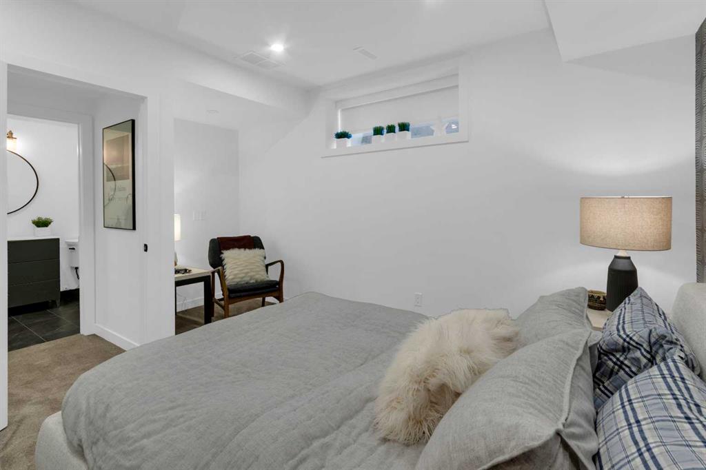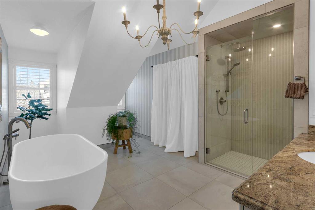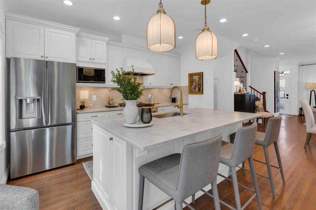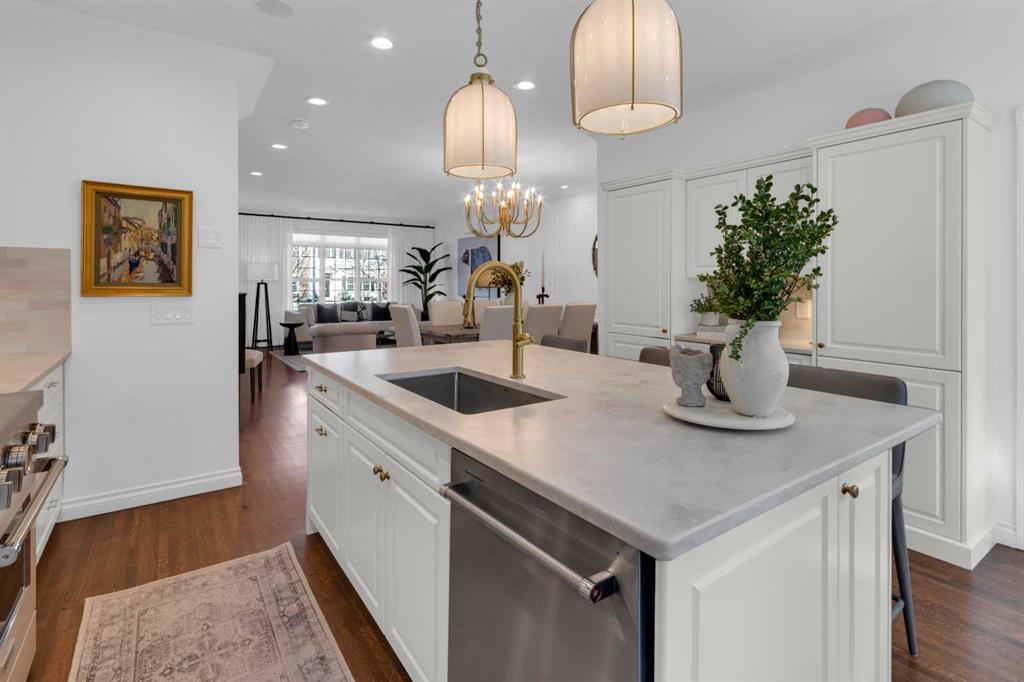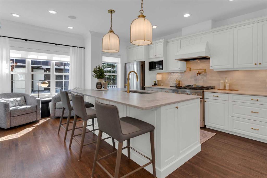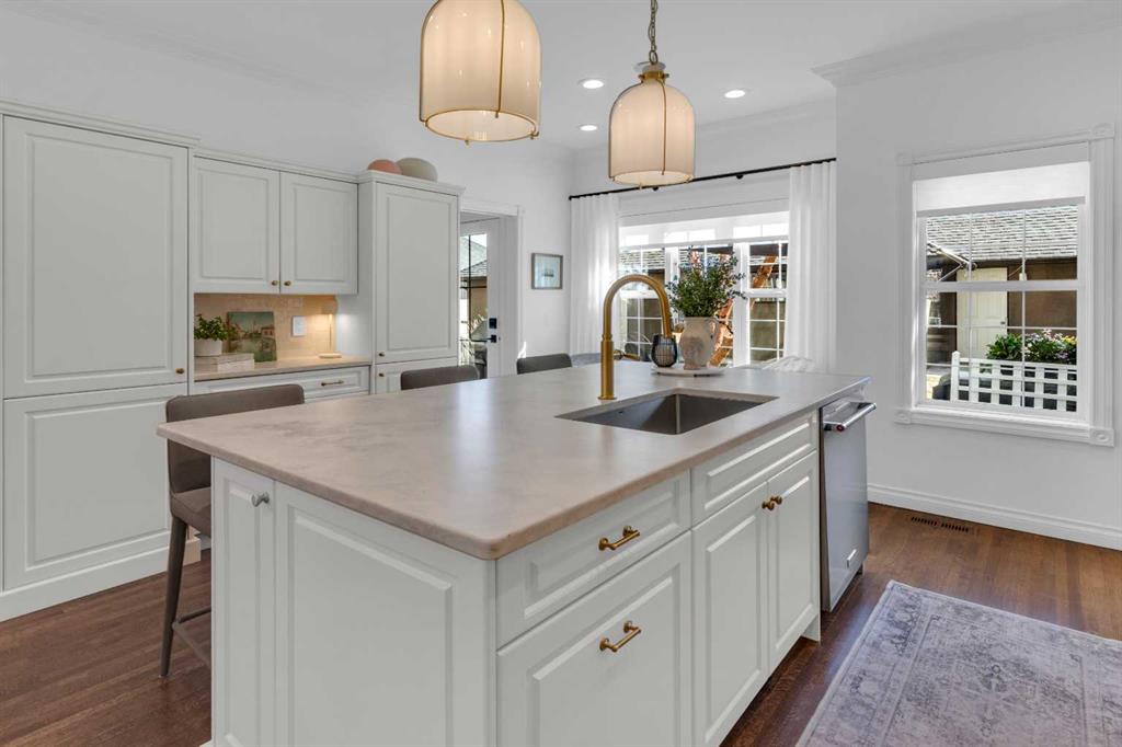 *OPEN HOUSE SATURDAY APRIL 25, 1:30pm-3:30pm* Welcome to this beautifully renovated 2,396 sq ft townhouse on one of Calgary’s iconic, tree-lined boulevards, complete with a central park and walkway. This impressive 3-storey home was extensively renovated in mid-2024. The French-inspired, elegant design reflects a focus on high quality, function, and refined detail. The main floor was reimagined to improve flow, including the relocation of the powder room and reconfiguration of walls. New site-finished hardwood with a modern matte finish was seamlessly integrated with the existing flooring. The stylish foyer features black and white harlequin tile, leading into an open-concept, light-filled living and dining area overlooking the boulevard. Updated lighting throughout the main floor elevates the space, while custom wall paneling carries throughout, adding architectural detail. The kitchen is a standout, with custom cabinetry, a large island, stone countertops and backsplash, and new stainless-steel appliances. The main floor is completed by a new powder room and a well-designed mudroom with plenty of storage, along with access to the private patio and insulated, drywalled double detached garage. Upstairs, the second level offers a large, warm, and inviting family room with a redesigned fireplace surround and new insert, a bright office with built-ins, a spacious bedroom, full bathroom, and a well-appointed laundry room with sink and new cabinetry, countertop, and flooring. The third floor is dedicated to the primary suite, a serene retreat with vaulted ceilings and dormer windows, finished in beautiful, light, neutral tones, along with two walk-in closets and a spacious, fully renovated ensuite featuring a glass shower, freestanding tub, and designer finishes, with French-inspired design details continuing throughout.The basement was fully developed from the studs into a warm, stylish additional living space, including a family room with gym (or office area), an additional bedroom, and a full bathroom with glass walk-in shower. Additional upgrades include a new furnace, humidifier, hot water tank, central air conditioning, updated cabinetry, flooring throughout, new appliances, window coverings, and more. The home was renovated with long-term living in mind, with consistent attention to quality and detail throughout all levels. Enjoy maintenance-free living with a lock-and-go lifestyle in one of Calgary’s most walkable neighborhoods, just steps from Safeway, cafés, restaurants, wine bars, boutiques, and fitness studios in sought-after Marda Loop.