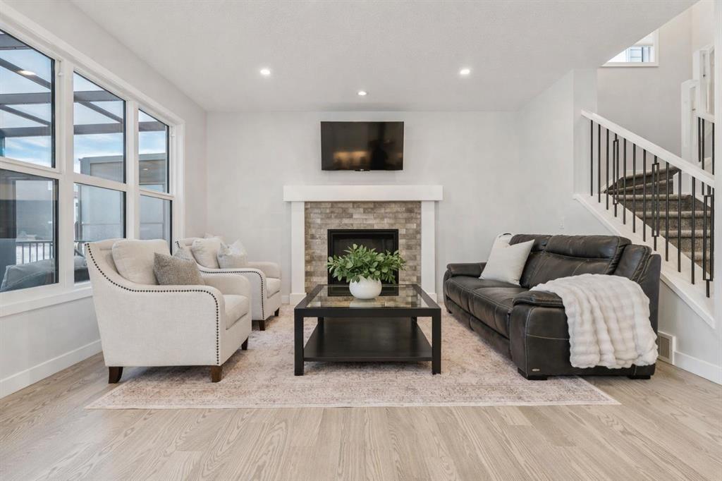 — OPEN HOUSE SATURDAY, APRIL 25 FROM 1–3 PM — Built in 2021 and located in the highly desirable community of Sunset Ridge, this beautifully upgraded two storey home sits on an extra wide lot backing onto green space and a walking path, a rare find offering privacy, views, and exceptional outdoor living. MAIN FLOOR – BRIGHT, FUNCTIONAL & DESIGNED FOR LIVING Step inside to a warm, inviting layout perfect for both everyday living and entertaining. The stylish U shaped kitchen features: • Quartz countertops throughout • Premium KitchenAid appliance package • Gas cook-top, built in oven and microwave • Abundant cabinetry and prep space The cozy living features: • Gas fireplace, mantle with neutral tiling Smart home WiFi controlled lighting adds modern convenience and customizable ambiance across the main floor. The oversized front attached garage is a standout feature, professionally finished with durable epoxy flooring and a gas line roughed in for a future heater, making it ideal for Alberta winters. UPPER LEVEL – YOUR PRIVATE RETREAT The upper floor offers a spacious bonus room, perfect for movie nights, a play area, or a quiet home office. The elegant primary suite includes: • Quartz countertops • His and hers walk in closets • Dual vanity with a dedicated makeup area • Soaker tub with tile surround and dedicated shower area Two additional bedrooms, a beautifully finished main bathroom with a undermount sink, and a full laundry room with washer & dryer completes this level. FULLY DEVELOPED WALKOUT BASEMENT The fully finished walkout level expands your living space with: • A bright fourth bedroom • Its own dedicated walk in closet ENERGY EFFICIENCY & SMART UPGRADES This home is loaded with premium upgrades that enhance comfort, efficiency, and long term value: • Hot water on demand • Air conditioning • Dual stage furnace • 6 solar panels for energy savings • 240V outlet for an electric vehicle charger • Gemstone LED outdoor lighting OUTDOOR LIVING – NEXT LEVEL Enjoy year round comfort on the Suncoast retractable screened in porch, complete with remote controlled motorized screens, perfect for relaxing or entertaining while staying protected from the elements. Convenient side stairs lead to the backyard for easy access. With its modern upgrades, energy efficient features, and exceptional lot backing onto green space, this Sunset Ridge home delivers the perfect blend of comfort, style, and lifestyle. A truly rare opportunity in one of Cochrane’s most sought after communities.