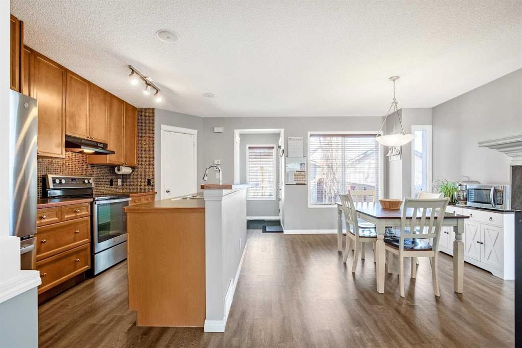 Welcome to 106 Tuscany Springs Heights NW, a warm and inviting family home located on a quiet street in Tuscany. Offering 4 bedrooms, 3.5 bathrooms, and 1,970 sq. ft. of total developed living space, this home is thoughtfully designed for growing families, busy households, and pet friendly living. The main floor entry is open and inviting with a large closet for coats and shoes, welcoming you into a bright and functional living space highlighted by a three sided fireplace and an abundance of windows that flood the home with natural light. The main level features a comfortable living area, a well appointed kitchen with stainless steel appliances and a pantry for added storage, and the convenience of a main floor half bathroom—ideal for everyday family life and entertaining. The upper level features a desirable family layout with a spacious primary retreat that includes a large walk in closet and a private 4 piece ensuite bathroom—a perfect space to unwind at the end of the day. Two additional bedrooms upstairs are well sized and share a 4 piece bathroom, ideal for children or guests. The fully developed basement expands the living space further with a fourth bedroom, a 3 piece bathroom with a beautiful tiled shower, and gorgeous custom maple built in storage cabinets, making it an excellent area for teens, guests, a home office, or a cozy family rec room. Durable vinyl plank flooring throughout the main and upper levels offers both style and practicality for families and pets. Thoughtful upgrades include central air conditioning and an on demand hot water system for year round comfort and efficiency. Outside, enjoy a low maintenance, fully fenced yard that’s perfect for kids and pets, with a beautiful pergola and firepit, along with the convenience of a detached double garage with back alley access. Located close to schools, playgrounds, parks, pathways, and transit—and offering access to the Tuscany Residents Association clubhouse—this home delivers an exceptional, family focused lifestyle in one of Northwest Calgary’s most sought after communities. An ideal home for families looking for space, comfort, and a welcoming neighbourhood to put down roots.