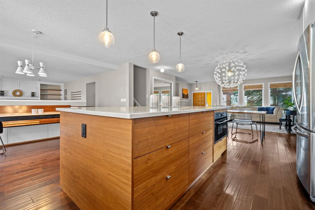 Welcome to the prestigious and highly sought-after community of Edgemont! Location is key. Just minutes from Nose Hill Park and being surrounded by the extensive pathway system within Edgemont, this setting offers easy access to nature while remaining conveniently connected to transit, highly rated public & separate schools, and numerous everyday amenities. Nestled in a quiet cul-de-sac, this beautiful family home offers just under 2,100 square feet of above-grade living space, plus a fully developed basement, 5 bedrooms, 4 full bathrooms, and plenty of upgrades! As soon as you set foot inside, you're welcomed by the open, spacious layout that has been masterfully planned and executed. Discerning tastes will appreciate the knockdown ceilings that have replaced outdated stipple - an upgrade that's consistent throughout the home. The formal living and dining areas are generously sized and filled with natural light from the numerous windows. Sleek, modern, and inviting describe the kitchen, which acts as the heart of the home. It features a large central island with quartz countertops, two-toned cabinetry, an attractive subway tile backsplash that extends to the ceiling, stainless steel appliances, plenty of storage, and a seamless connection to the breakfast area with bench seating. This space overlooks the grand family room which offers a cozy wood-burning fireplace, attractive built-in shelving, and abundant light/exposure to the expansive backyard through the set of large windows. The main level of the home also has a bedroom (or office/den), a full 3-piece bathroom, and a laundry area, easily accommodating single-level living. Upstairs, the primary bedroom acts as a private retreat, complete with its own ensuite and access to a south-facing solarium! Few properties offer such a delightful space to suit your lifestyle whether it be for working out, meditating, growing, reading, or simply relaxing. This level also has two additional bedrooms and a 4-piece main bathroom to provide comfortable accommodations for family or guests. The developed basement has been attractively finished with luxurious vinyl plank flooring, brand new windows, wet bar rough-in, another spacious bedroom, and a modern 3-piece bathroom. In addition, the massive recreation room is suitable for multipurpose use, such as a home gym, media area, hobby space, or playroom. With 4 windows in this section, it is bright and offers endless possibilities! There's so much value in this home, so don't miss this opportunity. Call your favorite realtor today to schedule a viewing!