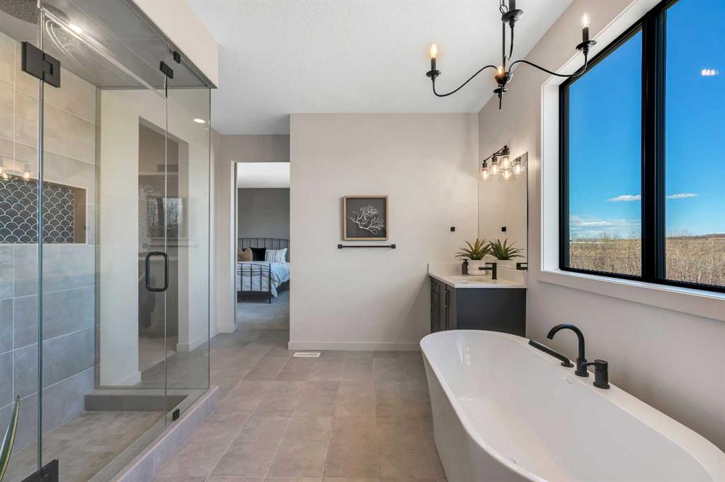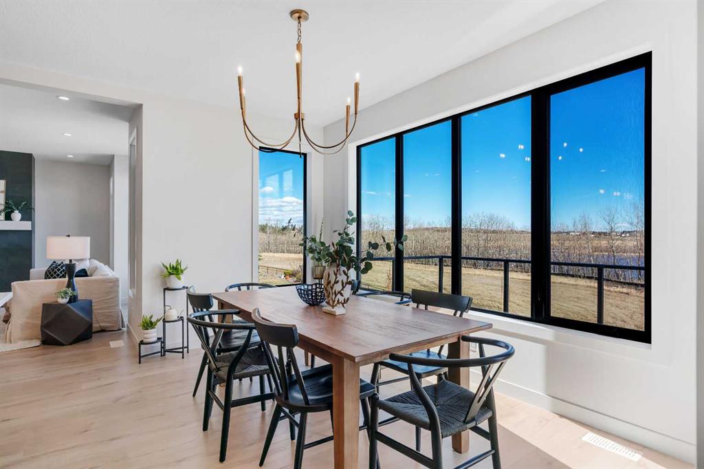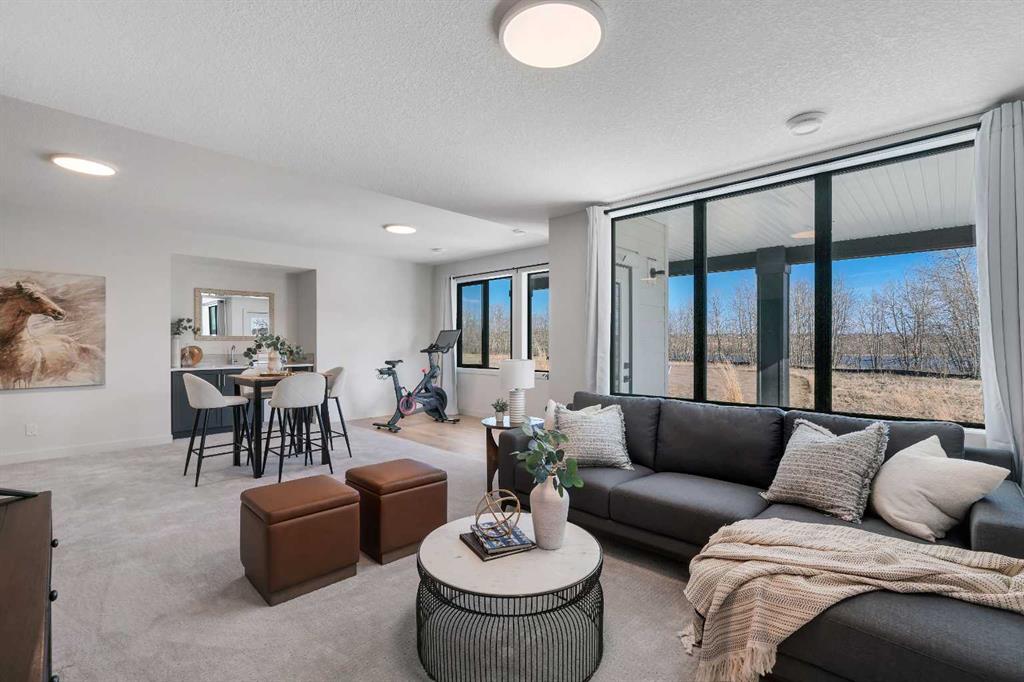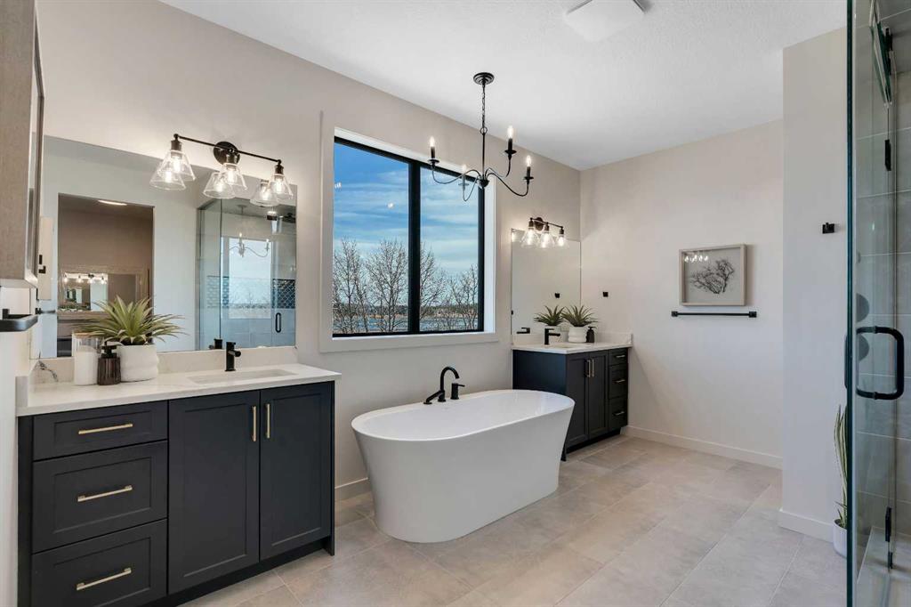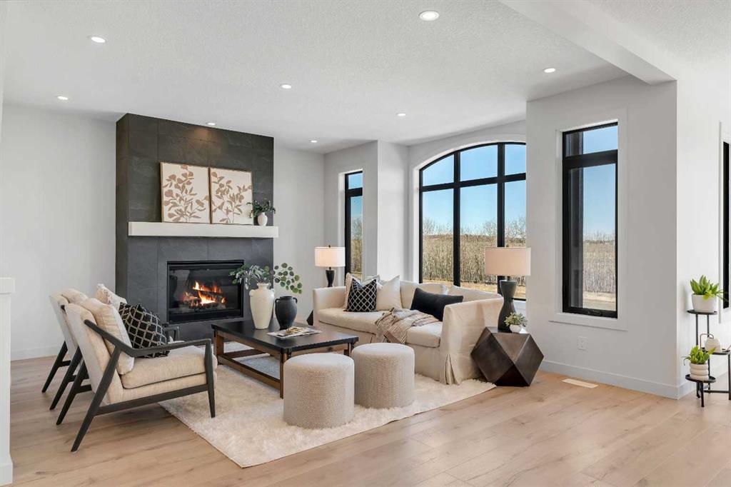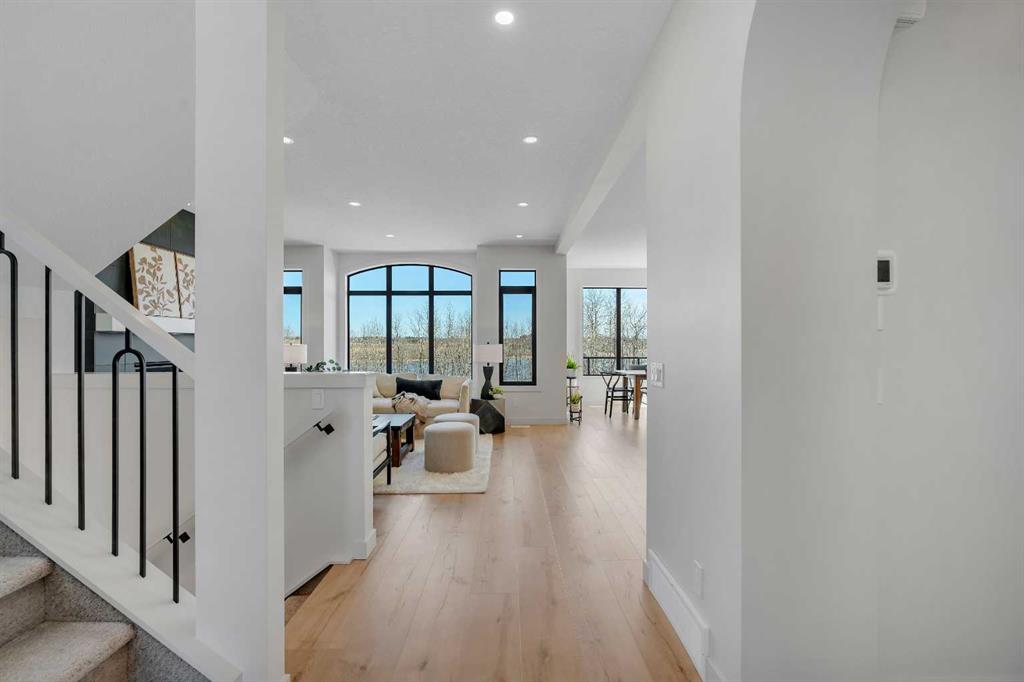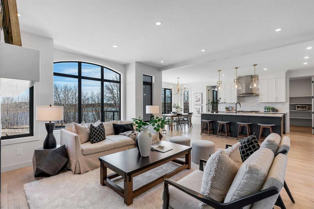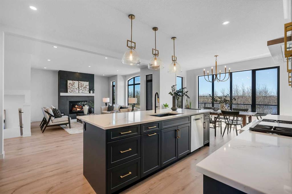 *** OPEN HOUSE MAY 2, 12-2pm *** | BACKING ONTO PRIVATE LAKE | HEATED QUAD GARAGE | DEVELOPED WALKOUT | MOUNTAIN VIEWS | 3700 SQFT OF DEVELOPED SPACE | Situated in arguably one of the best locations in Monterra, backing directly onto one of the two private lakes in the community with no walking paths behind the home for an unparalleled level of privacy on a quiet cul de sac. This immaculate Aspen Creek Custom home is the epitome of luxury semi-rural living and offers every feature the discerning buyer is looking for, with a focus on design and function throughout. As you enter the main level you are taken in by the sightlines directly out to the lake and surrounding environmental reserve, with large windows perfectly placed to showcase the incredible views. The designer kitchen features a 36 inch Wolf range, Bosch appliances, a custom tile backsplash, and a large island with quartz counters, all brought together by full height custom white cabinets and contrasting dark lowers, creating an ideal layout for both families and entertaining guests. Just off the kitchen you will find direct access to the walkthrough butler pantry connecting to a spacious mudroom and access to the attached garage. This level also features a sizable dining area surrounded by 3 walls of windows overlooking the lake, along with a large living room centred around a gas fireplace, creating a perfect space for family time. You will also find a main floor office or den with additional views to the east, a 2 pc powder room, and direct access to the large deck with gas line overlooking the lake, an ideal place to enjoy your morning coffee while watching the sunrise or hosting friends throughout the summer. The upper level features a massive primary suite with a large walk in closet with laundry chute and a 5 pc spa inspired ensuite complete with heated floors, a custom tiled steam shower, and a freestanding tub with views of the lake. This level also includes 2 more generously sized bedrooms, a 4 pc bathroom, a large bonus area, and a full size laundry room. The fully developed walkout basement is an ideal family space, complete with a massive bedroom overlooking the lake, a 4 pc bathroom, a large family room, and a perfect area for a home gym with more incredible views and direct access to the backyard. Additional features that cannot be overlooked include the large pie lot with no lake lots left in the community, over 300K in upgrades including more than 100K in landscaping with a fully automated irrigation system controlled from your phone, a high end water softening system, full radon ventilation system completed, and a top level HRV unit. This phase allows for an RV pad on the west side of the home, with ample space already left to complete this in the future, along with electrical service run to the hot tub pad in the backyard. The quad garage is a hobbyist’s dream, complete with a 75,000 BTU Reznor gas heater, hot and cold water lines and 240V power for EV charging.