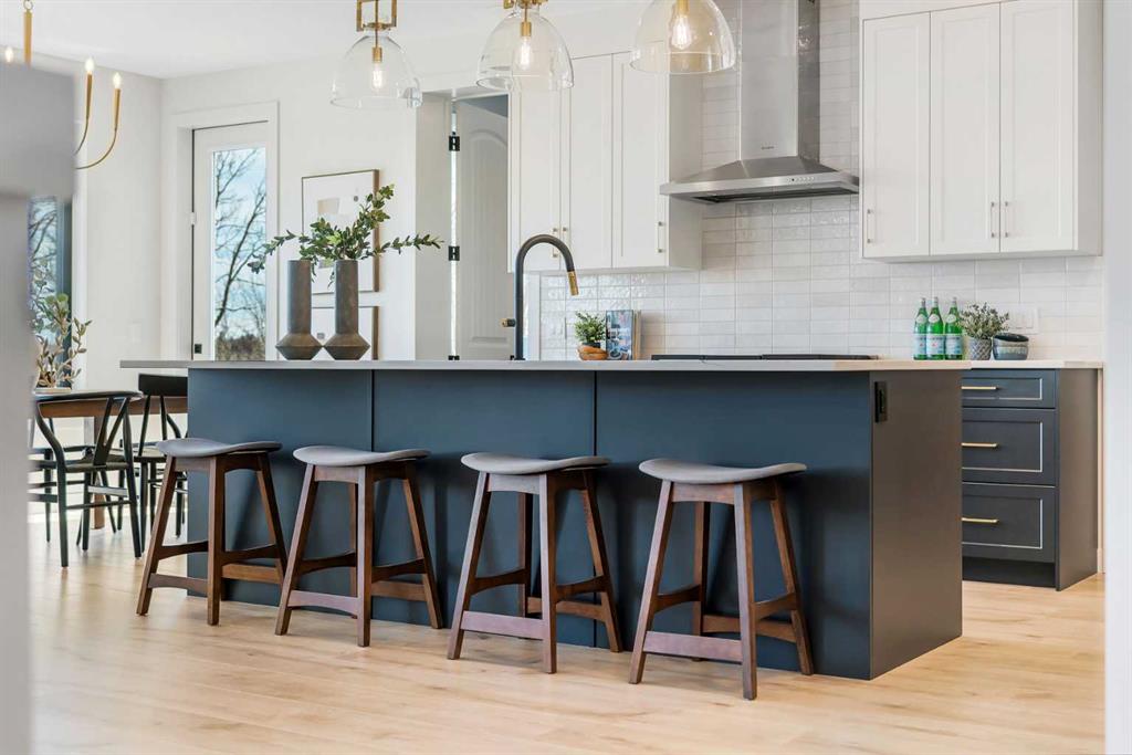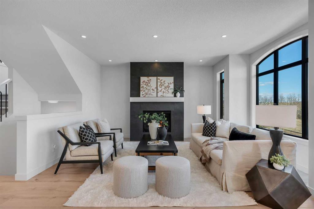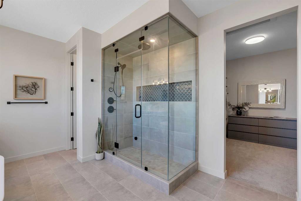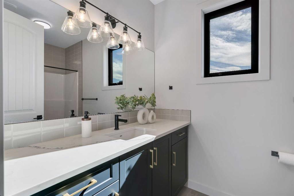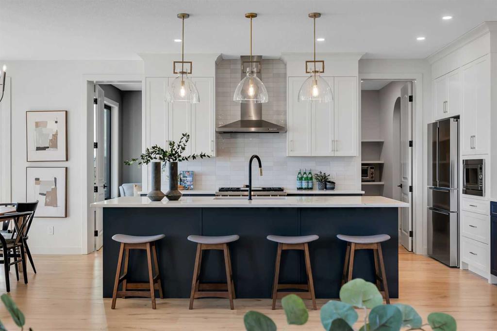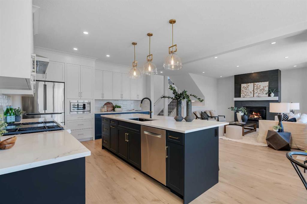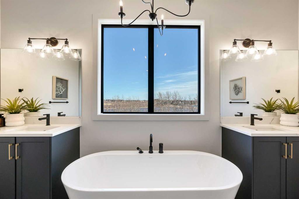 *** OPEN HOUSE MAY 2, 12-2pm *** | BACKING ONTO PRIVATE LAKE | HEATED QUAD GARAGE | DEVELOPED WALKOUT | MOUNTAIN VIEWS | 3700 SQFT OF DEVELOPED SPACE | Situated in arguably one of the best locations in Monterra, backing directly onto one of the two private lakes in the community with no walking paths behind the home for an unparalleled level of privacy on a quiet cul de sac. This immaculate Aspen Creek Custom home is the epitome of luxury semi-rural living and offers every feature the discerning buyer is looking for, with a focus on design and function throughout. As you enter the main level you are taken in by the sightlines directly out to the lake and surrounding environmental reserve, with large windows perfectly placed to showcase the incredible views. The designer kitchen features a 36 inch Wolf range, Bosch appliances, a custom tile backsplash, and a large island with quartz counters, all brought together by full height custom white cabinets and contrasting dark lowers, creating an ideal layout for both families and entertaining guests. Just off the kitchen you will find direct access to the walkthrough butler pantry connecting to a spacious mudroom and access to the attached garage. This level also features a sizable dining area surrounded by 3 walls of windows overlooking the lake, along with a large living room centred around a gas fireplace, creating a perfect space for family time. You will also find a main floor office or den with additional views to the east, a 2 pc powder room, and direct access to the large deck with gas line overlooking the lake, an ideal place to enjoy your morning coffee while watching the sunrise or hosting friends throughout the summer. The upper level features a massive primary suite with a large walk in closet with laundry chute and a 5 pc spa inspired ensuite complete with heated floors, a custom tiled steam shower, and a freestanding tub with views of the lake. This level also includes 2 more generously sized bedrooms, a 4 pc bathroom, a large bonus area, and a full size laundry room. The fully developed walkout basement is an ideal family space, complete with a massive bedroom overlooking the lake, a 4 pc bathroom, a large family room, and a perfect area for a home gym with more incredible views and direct access to the backyard. Additional features that cannot be overlooked include the large pie lot with no lake lots left in the community, over 300K in upgrades including more than 100K in landscaping with a fully automated irrigation system controlled from your phone, a high end water softening system, full radon ventilation system completed, and a top level HRV unit. This phase allows for an RV pad on the west side of the home, with ample space already left to complete this in the future, along with electrical service run to the hot tub pad in the backyard. The quad garage is a hobbyist’s dream, complete with a 75,000 BTU Reznor gas heater, hot and cold water lines and 240V power for EV charging.