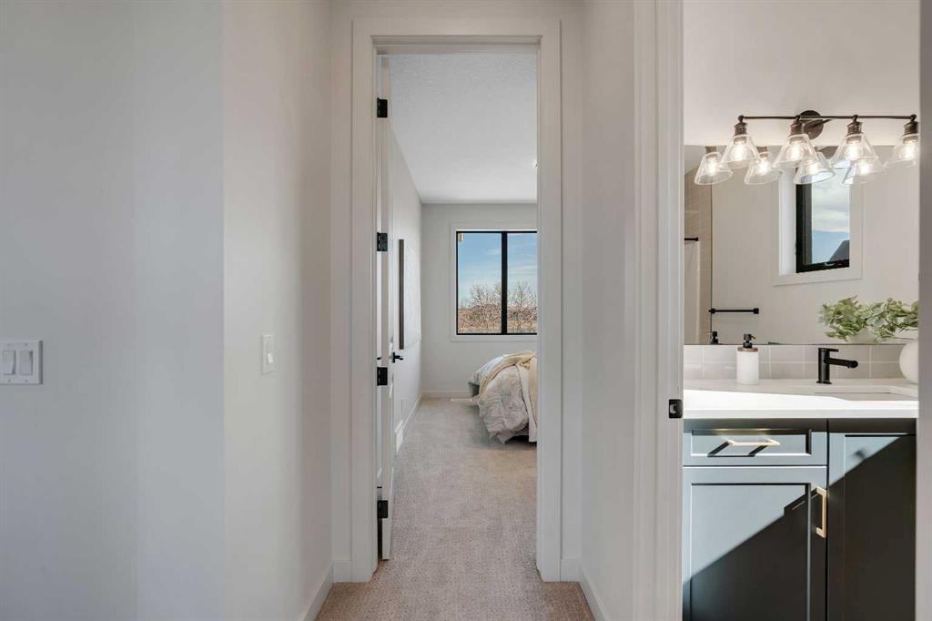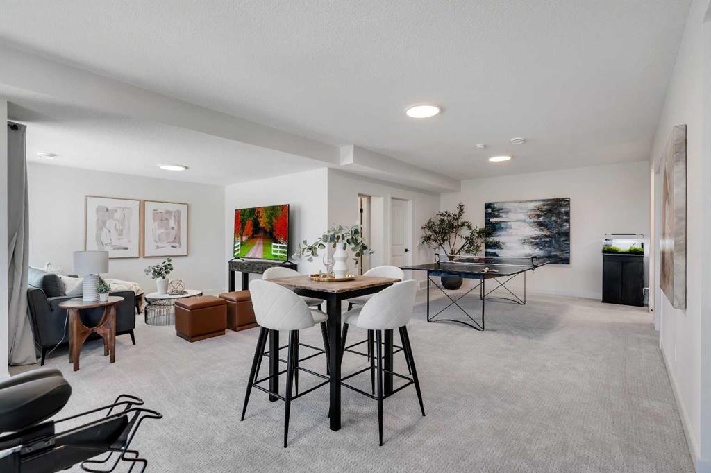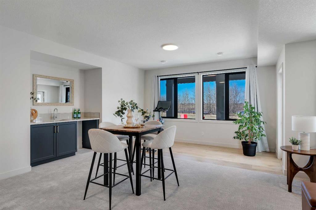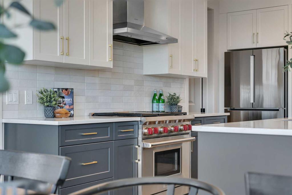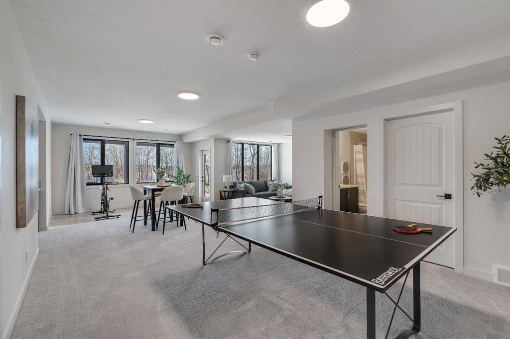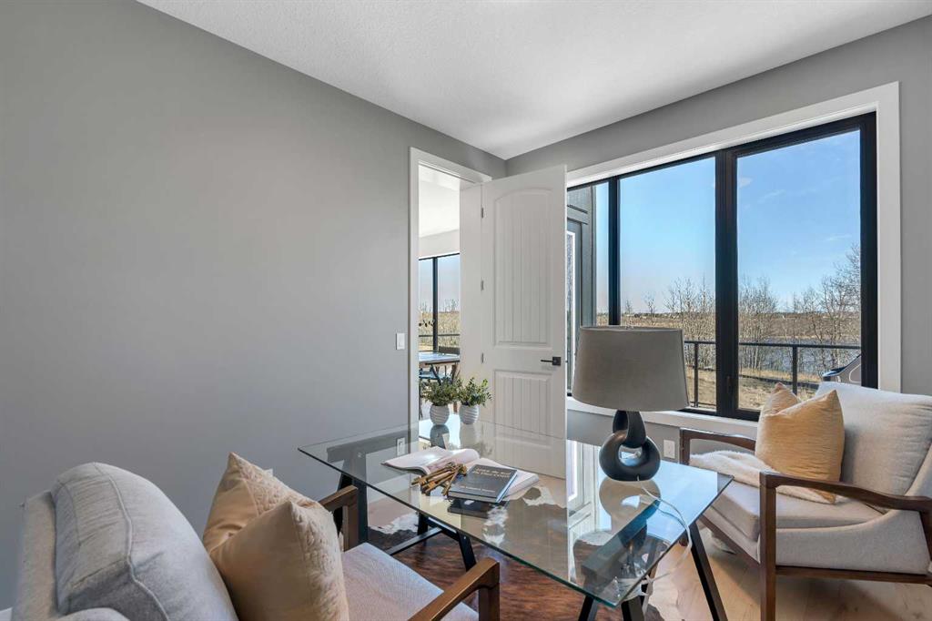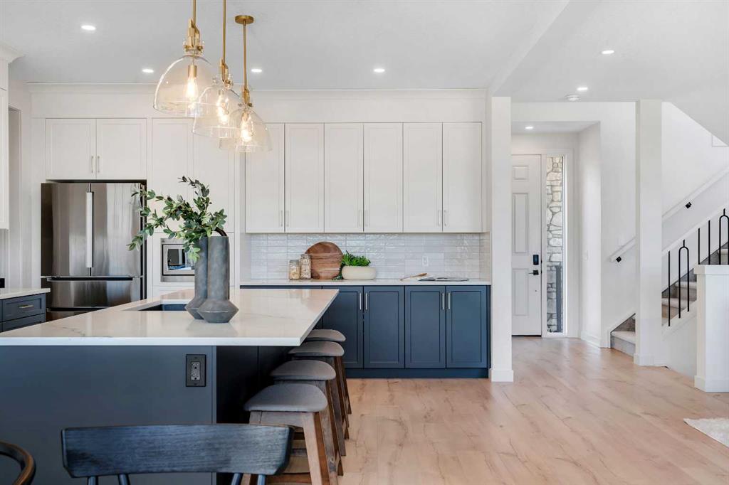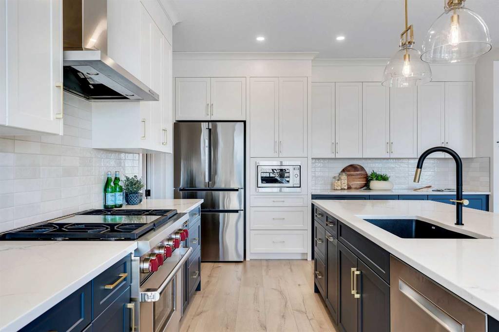 *** OPEN HOUSE MAY 2, 12-2pm *** | BACKING ONTO PRIVATE LAKE | HEATED QUAD GARAGE | DEVELOPED WALKOUT | MOUNTAIN VIEWS | 3700 SQFT OF DEVELOPED SPACE | Situated in arguably one of the best locations in Monterra, backing directly onto one of the two private lakes in the community with no walking paths behind the home for an unparalleled level of privacy on a quiet cul de sac. This immaculate Aspen Creek Custom home is the epitome of luxury semi-rural living and offers every feature the discerning buyer is looking for, with a focus on design and function throughout. As you enter the main level you are taken in by the sightlines directly out to the lake and surrounding environmental reserve, with large windows perfectly placed to showcase the incredible views. The designer kitchen features a 36 inch Wolf range, Bosch appliances, a custom tile backsplash, and a large island with quartz counters, all brought together by full height custom white cabinets and contrasting dark lowers, creating an ideal layout for both families and entertaining guests. Just off the kitchen you will find direct access to the walkthrough butler pantry connecting to a spacious mudroom and access to the attached garage. This level also features a sizable dining area surrounded by 3 walls of windows overlooking the lake, along with a large living room centred around a gas fireplace, creating a perfect space for family time. You will also find a main floor office or den with additional views to the east, a 2 pc powder room, and direct access to the large deck with gas line overlooking the lake, an ideal place to enjoy your morning coffee while watching the sunrise or hosting friends throughout the summer. The upper level features a massive primary suite with a large walk in closet with laundry chute and a 5 pc spa inspired ensuite complete with heated floors, a custom tiled steam shower, and a freestanding tub with views of the lake. This level also includes 2 more generously sized bedrooms, a 4 pc bathroom, a large bonus area, and a full size laundry room. The fully developed walkout basement is an ideal family space, complete with a massive bedroom overlooking the lake, a 4 pc bathroom, a large family room, and a perfect area for a home gym with more incredible views and direct access to the backyard. Additional features that cannot be overlooked include the large pie lot with no lake lots left in the community, over 300K in upgrades including more than 100K in landscaping with a fully automated irrigation system controlled from your phone, a high end water softening system, full radon ventilation system completed, and a top level HRV unit. This phase allows for an RV pad on the west side of the home, with ample space already left to complete this in the future, along with electrical service run to the hot tub pad in the backyard. The quad garage is a hobbyist’s dream, complete with a 75,000 BTU Reznor gas heater, hot and cold water lines and 240V power for EV charging.