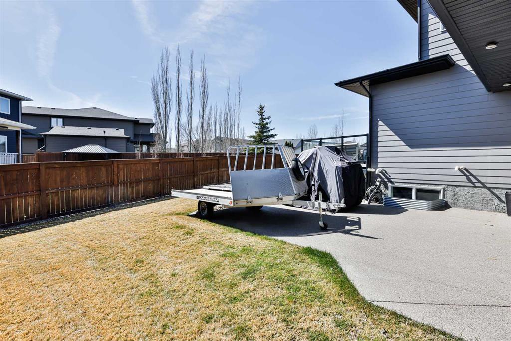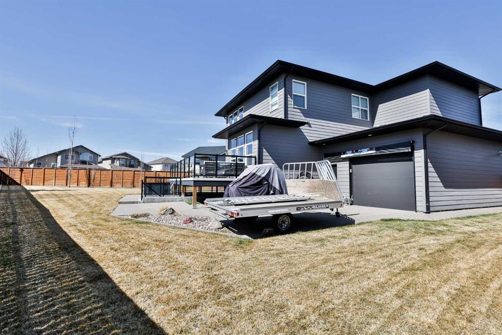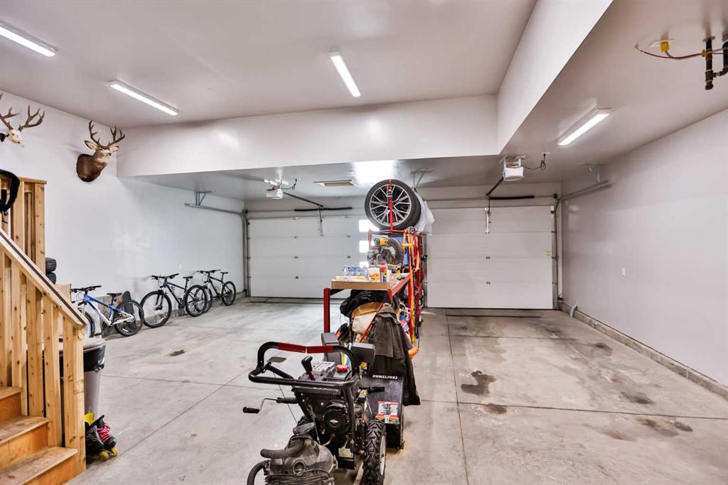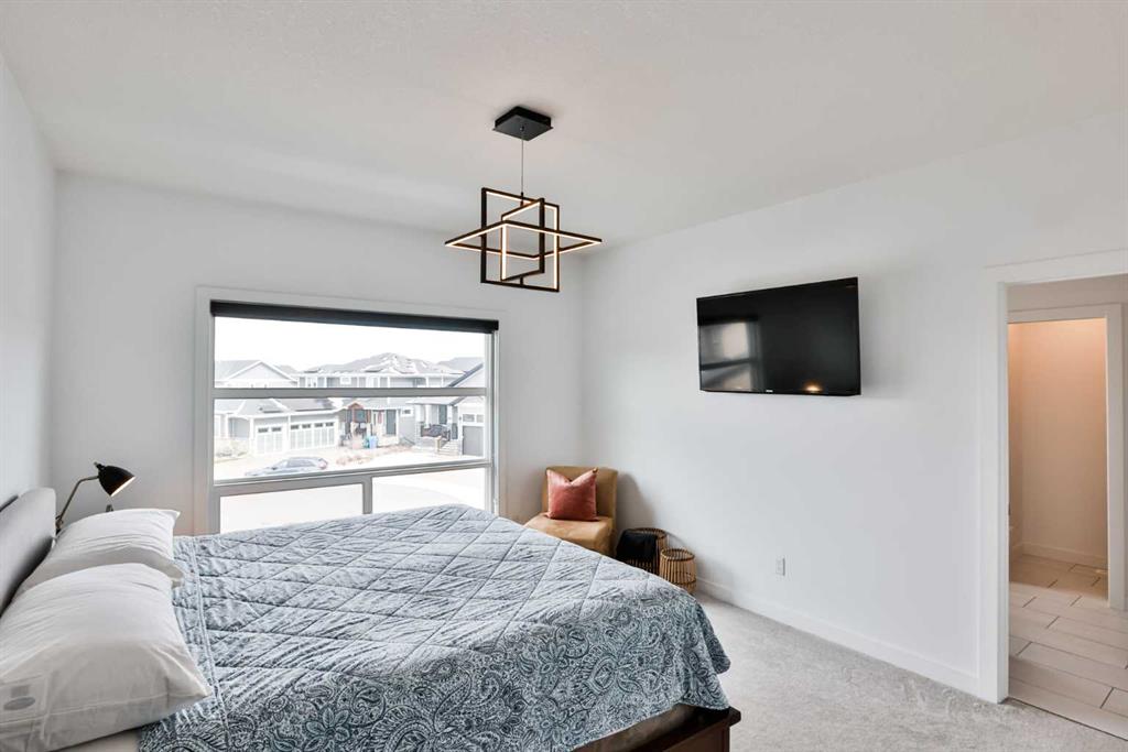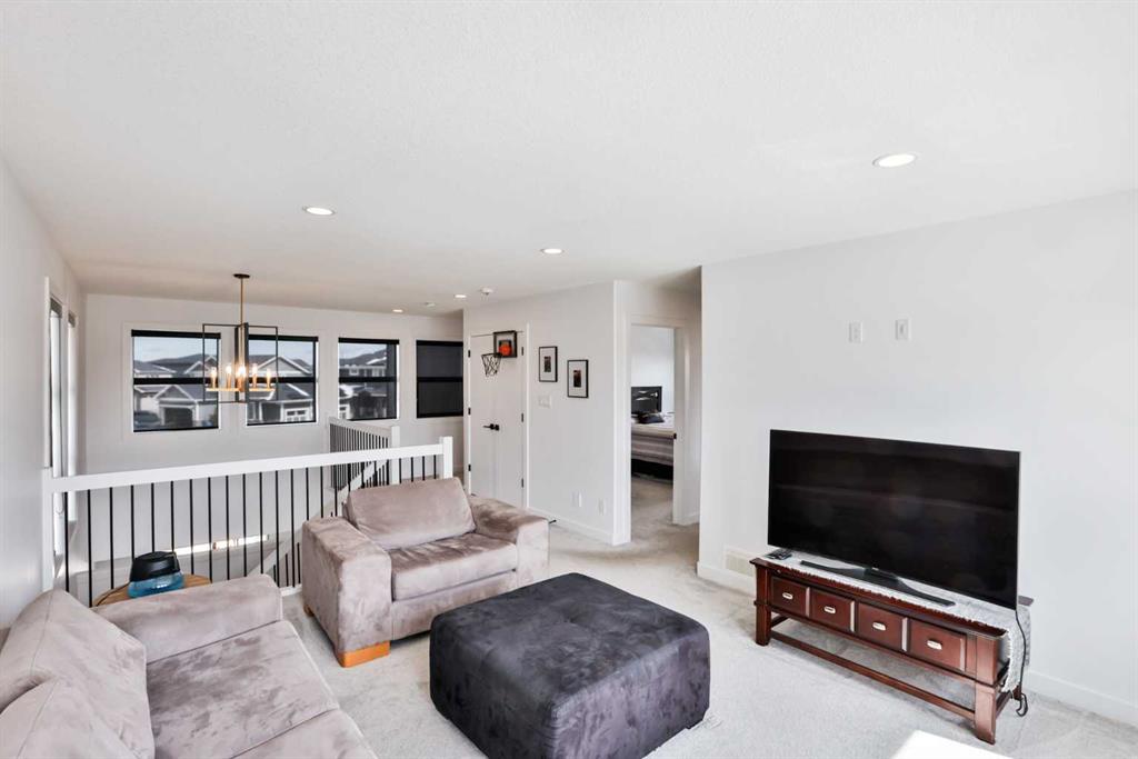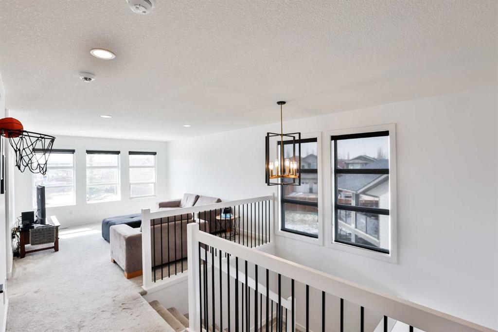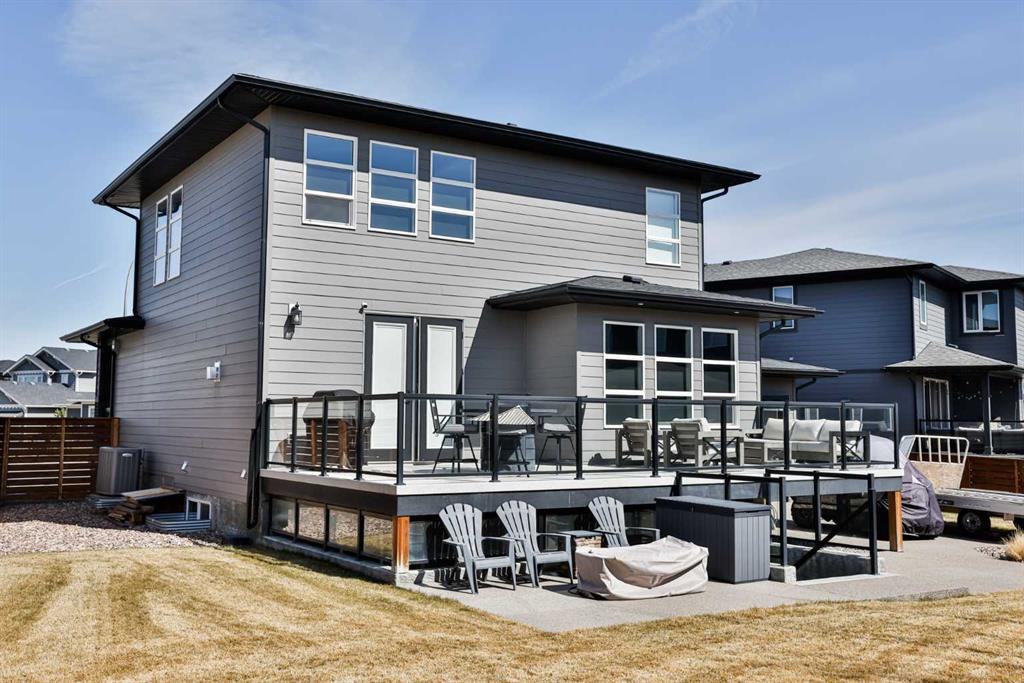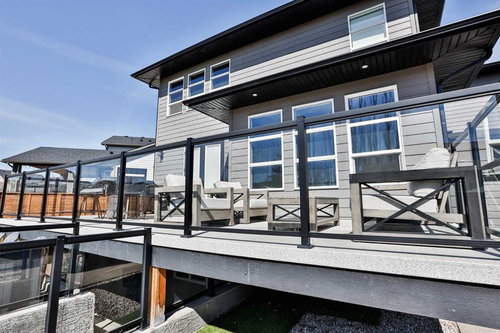 Welcome to 218 Stonecrest Bay in the highly sought-after community of Riverstone! Situated on a massive pie-shaped lot in a quiet cul-de-sac, this property offers exceptional space, functionality, and style. The standout feature is the oversized 30’ x 44’ triple attached garage with drive-through access, allowing you to park additional vehicles or toys on the rear parking pad within your expansive yard. In addition to the yard space there is extensive exposed concrete, detail throughout the property that you will love! Inside, you’re welcomed by a bright front office or formal dining area, open to above and filled with natural light. The main floor showcases a seamless open-concept design with a wall of windows across the back, connecting the living, dining, and kitchen spaces. Floating shelves add a modern touch throughout. The kitchen features a gas range, stainless steel hood fan, full-height cabinetry to bulkhead and access to a walk-through pantry leading to a functional mudroom complete with sink, bar fridge, microwave, and additional built-in shelving. Step outside to the large vinyl deck with glass railing—perfect for entertaining. Upstairs, a striking black spindle railing leads to a bonus room at the rear of the home, surrounded by windows on three sides. Two spacious bedrooms and a 4-piece bath are also located at the back, while the primary suite is privately positioned at the front. The ensuite offers a double vanity, custom tiled shower with frameless glass, water closet, and direct access to the walk-in closet and laundry room with built-in sink and ample counter space. The fully developed basement features a walk-up design for added natural light, a cozy electric fireplace, custom wet bar with quartz countertops, an additional bedroom, and full bathroom. Outside, enjoy a sheltered lower patio with rough-in for a future hot tub, underground sprinklers, and landscaping for added privacy. Additional features include central air conditioning, dual-zone furnace, hot water on demand, Hardie board siding, gas fireplace on the main floor, and extensive pot lighting throughout. Offering 4 bedrooms, 3.5 bathrooms, an incredible garage, and a premium location—this is the perfect family home. Contact your favourite REALTOR® to book a showing today!