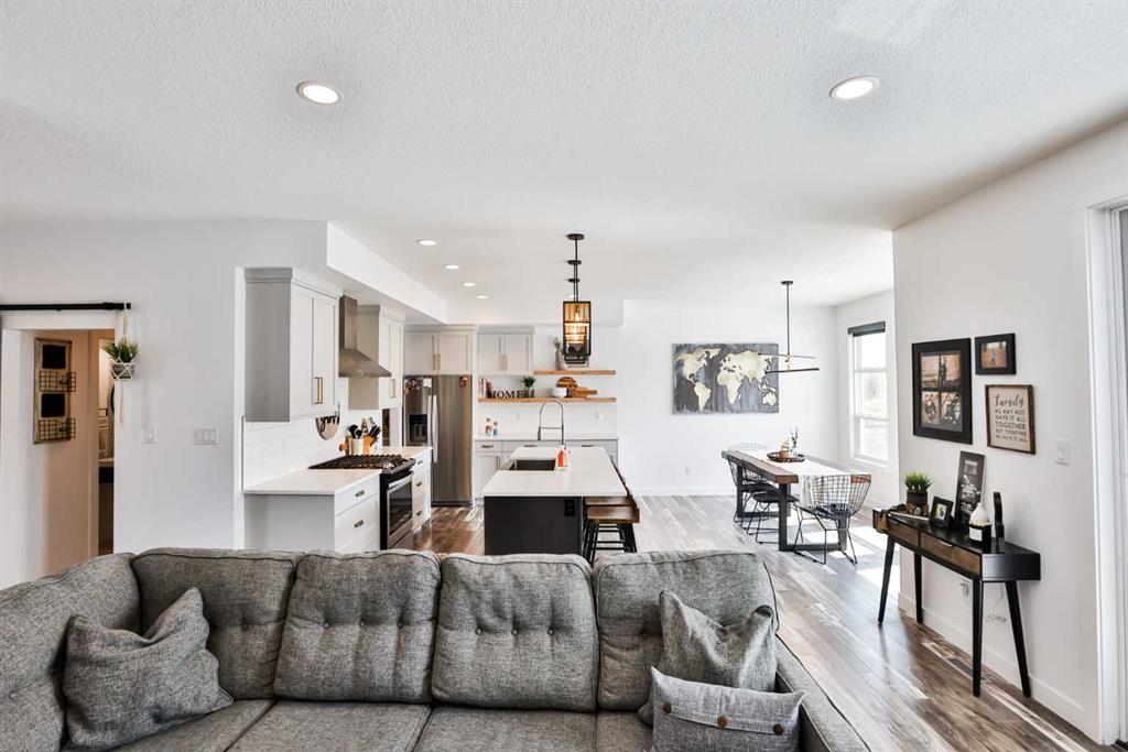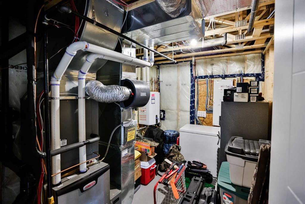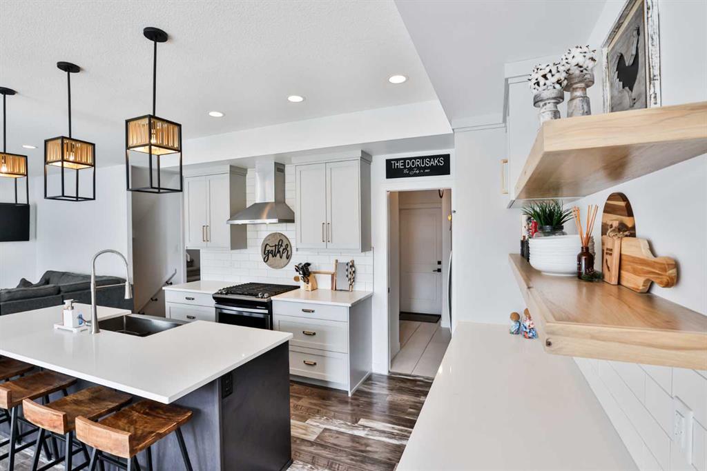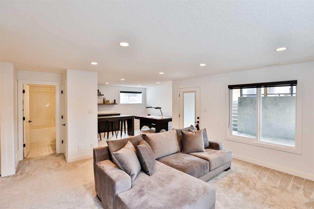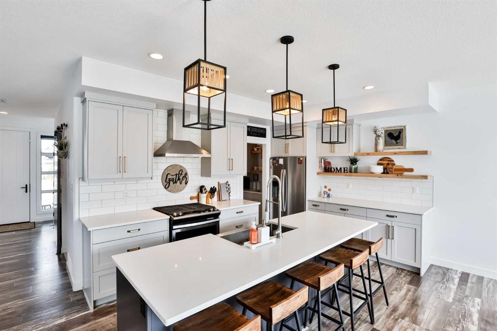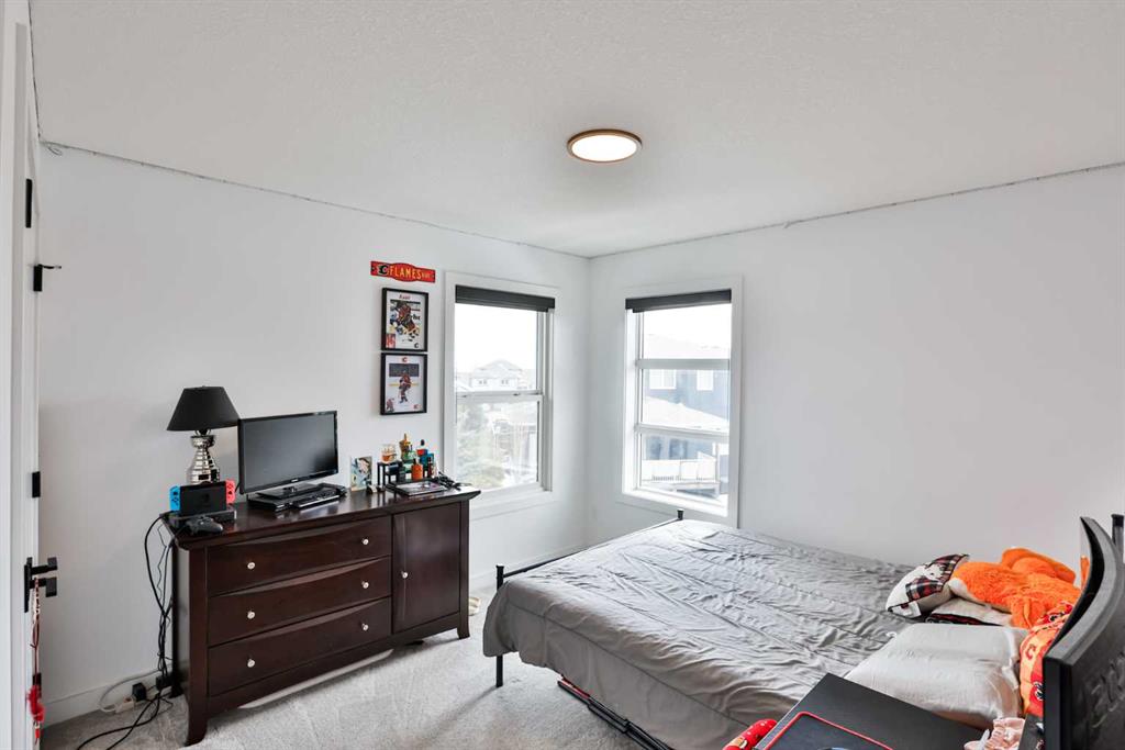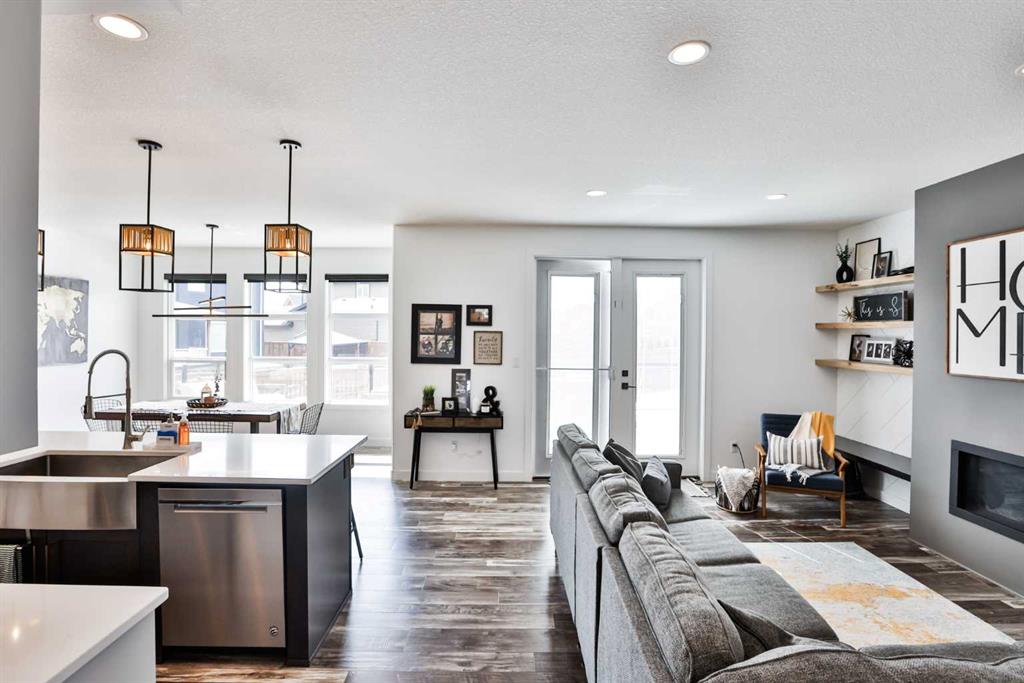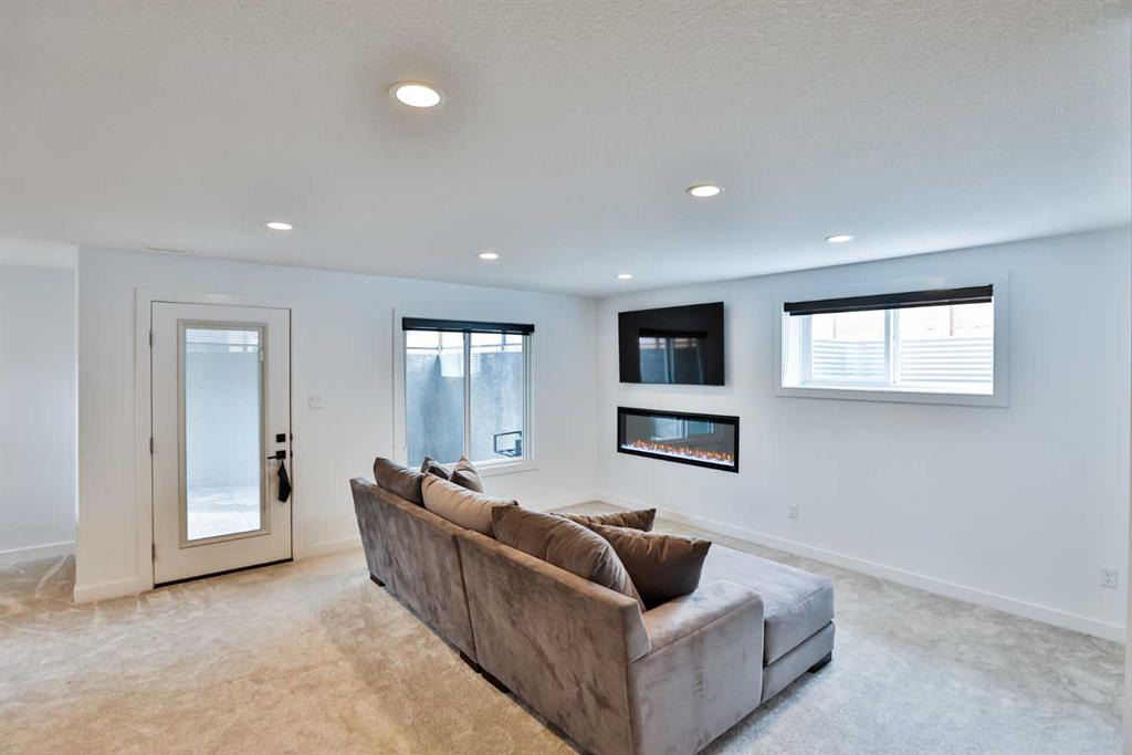 Welcome to 218 Stonecrest Bay in the highly sought-after community of Riverstone! Situated on a massive pie-shaped lot in a quiet cul-de-sac, this property offers exceptional space, functionality, and style. The standout feature is the oversized 30’ x 44’ triple attached garage with drive-through access, allowing you to park additional vehicles or toys on the rear parking pad within your expansive yard. In addition to the yard space there is extensive exposed concrete, detail throughout the property that you will love! Inside, you’re welcomed by a bright front office or formal dining area, open to above and filled with natural light. The main floor showcases a seamless open-concept design with a wall of windows across the back, connecting the living, dining, and kitchen spaces. Floating shelves add a modern touch throughout. The kitchen features a gas range, stainless steel hood fan, full-height cabinetry to bulkhead and access to a walk-through pantry leading to a functional mudroom complete with sink, bar fridge, microwave, and additional built-in shelving. Step outside to the large vinyl deck with glass railing—perfect for entertaining. Upstairs, a striking black spindle railing leads to a bonus room at the rear of the home, surrounded by windows on three sides. Two spacious bedrooms and a 4-piece bath are also located at the back, while the primary suite is privately positioned at the front. The ensuite offers a double vanity, custom tiled shower with frameless glass, water closet, and direct access to the walk-in closet and laundry room with built-in sink and ample counter space. The fully developed basement features a walk-up design for added natural light, a cozy electric fireplace, custom wet bar with quartz countertops, an additional bedroom, and full bathroom. Outside, enjoy a sheltered lower patio with rough-in for a future hot tub, underground sprinklers, and landscaping for added privacy. Additional features include central air conditioning, dual-zone furnace, hot water on demand, Hardie board siding, gas fireplace on the main floor, and extensive pot lighting throughout. Offering 4 bedrooms, 3.5 bathrooms, an incredible garage, and a premium location—this is the perfect family home. Contact your favourite REALTOR® to book a showing today!