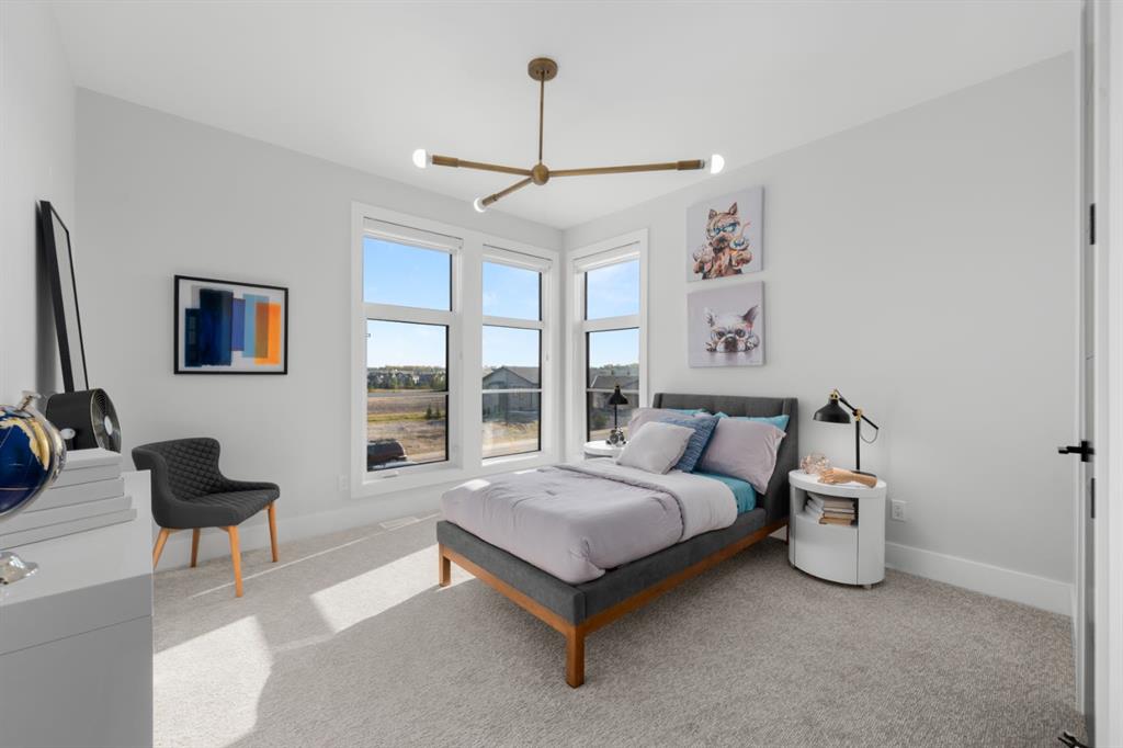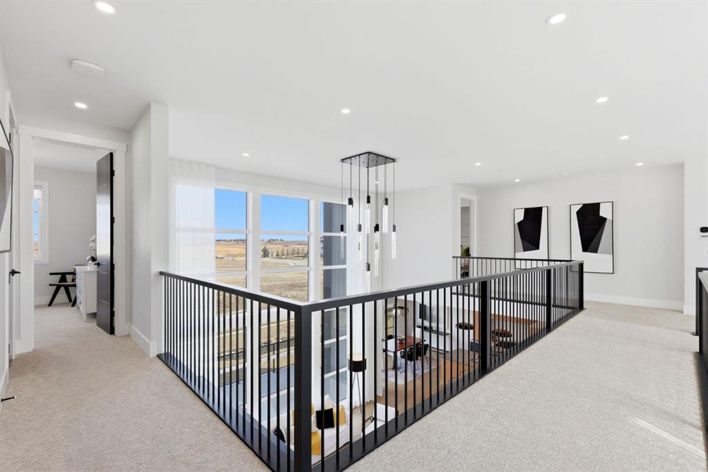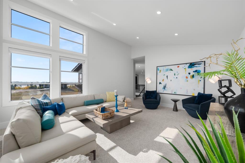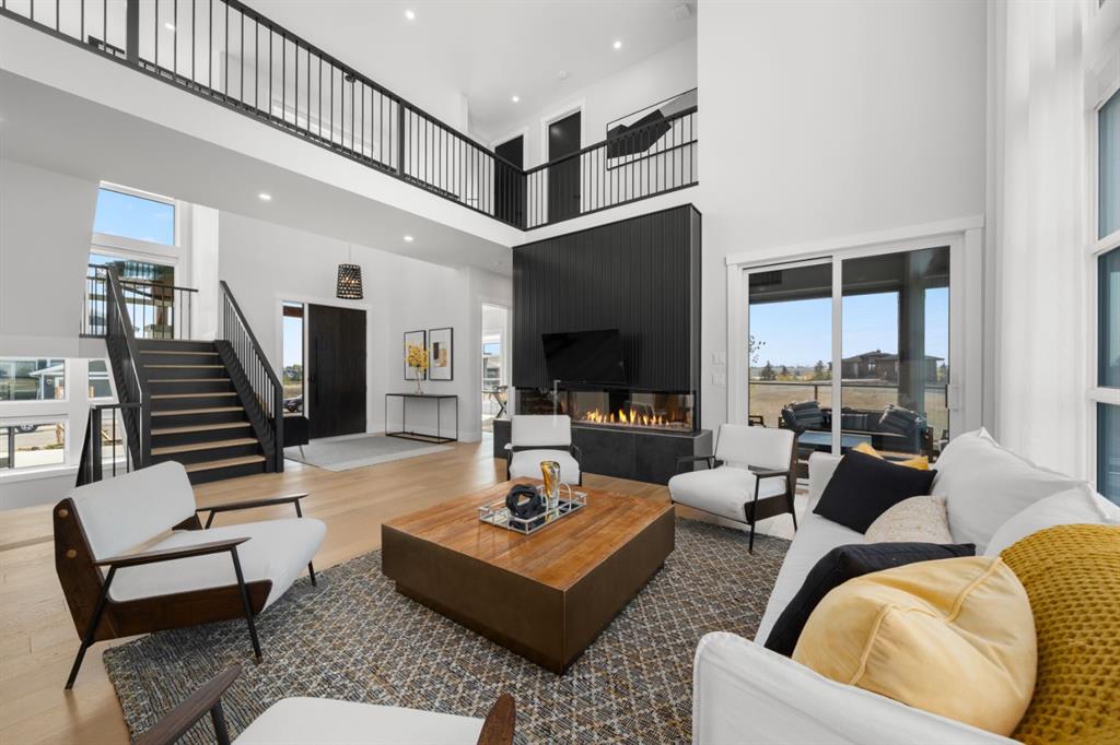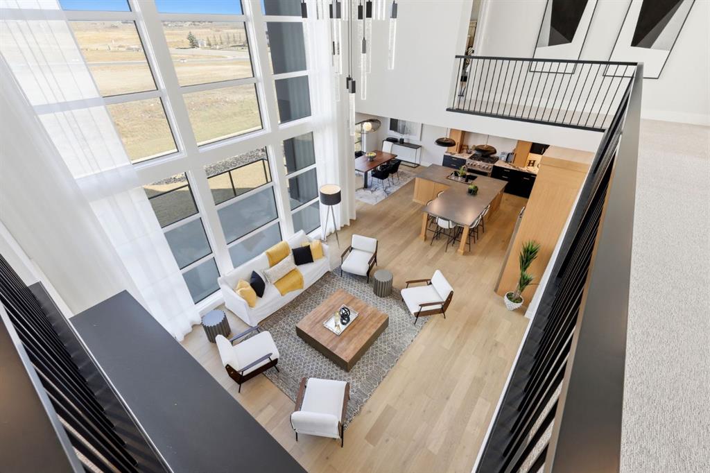 **Open House May 2nd & May 3rd** Welcome to the “Aurora” Showhome, set on a 0.28-acre lot, this stunning two-storey offers over 5,000 sq. ft of refined living space, 5 bedrooms, 4 bathrooms, a finished basement, and a triple car garage. A masterpiece by award-winning builder Cornerstone Luxury Homes. Located in the welcoming, family-friendly community of Monterra on Cochrane Lakes, just minutes from the town of Cochrane. As you enter the home, you are instantly greeted with an abundance of natural sunlight. A striking mezzanine bridge and expansive windows showcase breathtaking views, while the open-concept main floor creates an ideal flow for family living and entertaining. The greatroom impresses with soaring vaulted ceilings and a sleek linear gas fireplace. The chef-inspired kitchen features a large center island, custom cabinetry, premium appliances, and an impressive butler’s pantry. Completing the main level are a dedicated office/study, spacious dining area, oversized mudroom, and elegant 2-piece powder room. Step outside to the expansive wrap-around deck, perfect for al fresco dining and unforgettable sunsets. Upstairs, the primary retreat is a serene escape, offering space for a king-sized bed, a spa-inspired 5-piece ensuite, and acustom walk-in closet. Two additional bedrooms, a 5-piece bath, and a light-filled bonus room provide ample space for family and guests. The fully developed basement expands your living space with a bedroom, a wine room, a comfortable recreation room, and a gym that could also be used as a fifth bedroom ensuring the home is truly move-in ready. The oversized, heated three-car garage with epoxy floors easily accommodates 3 vehicles, storage, and recreational gear. Monterra offers an exceptional lifestyle, with tranquil lakes, scenic pathways, and generous lot sizes, while keeping you close to the charm of Cochrane and the convenience of Calgary. Available as a leaseback. Book your private showing today or visit the showhome during open hours to learn all that Monterra has to offer. Showhome Hours: Mon–Thurs 2:00–8:00 | Sat & Sun 12:00–5:00.