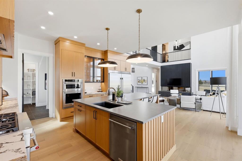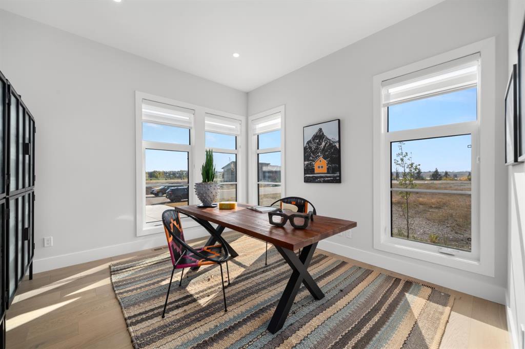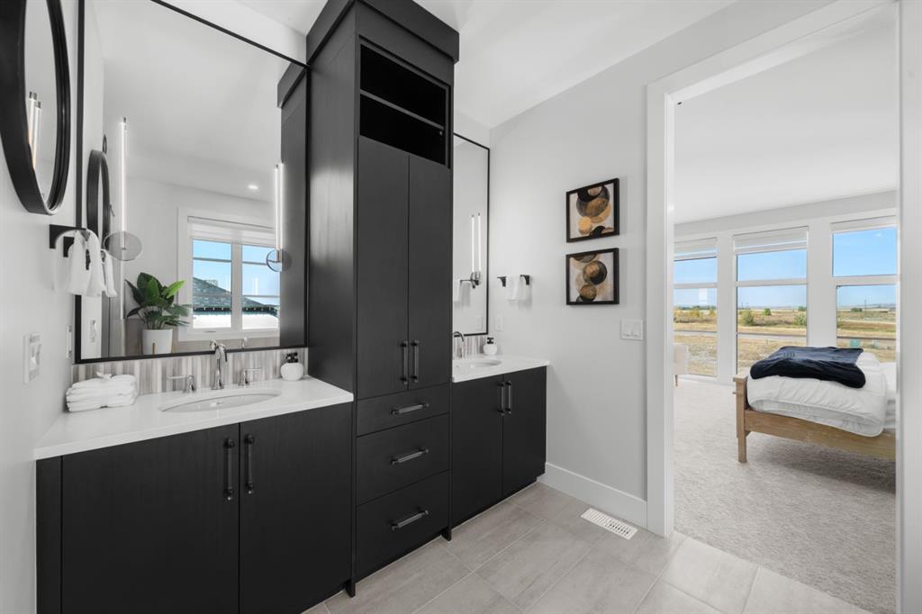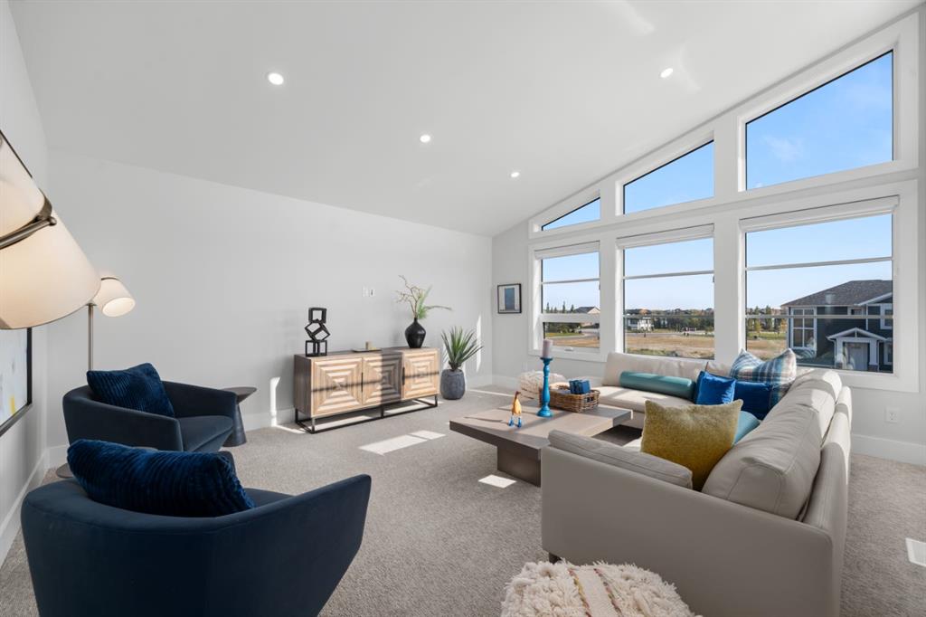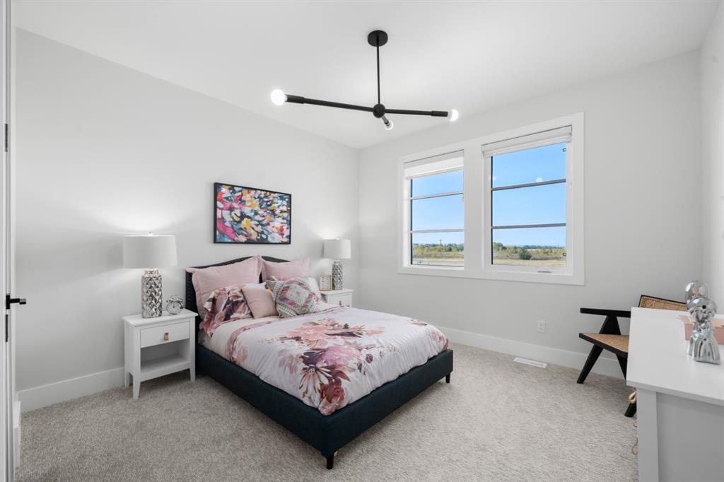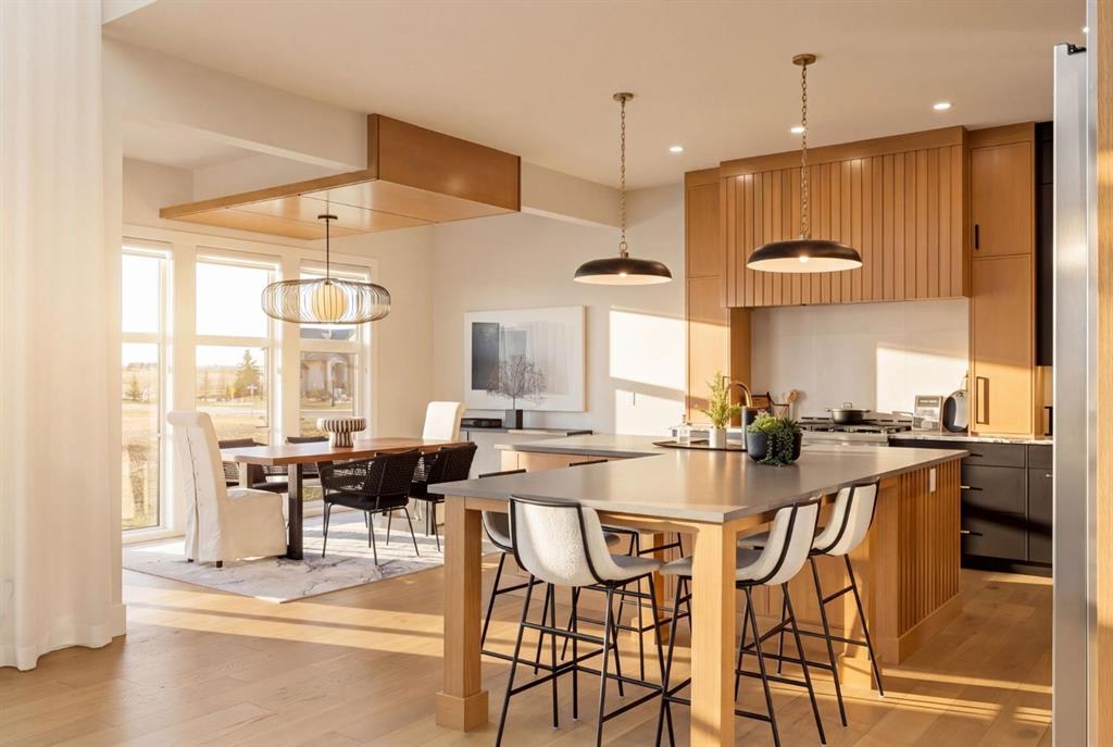 **Open House May 2nd & May 3rd** Welcome to the “Aurora” Showhome, set on a 0.28-acre lot, this stunning two-storey offers over 5,000 sq. ft of refined living space, 5 bedrooms, 4 bathrooms, a finished basement, and a triple car garage. A masterpiece by award-winning builder Cornerstone Luxury Homes. Located in the welcoming, family-friendly community of Monterra on Cochrane Lakes, just minutes from the town of Cochrane. As you enter the home, you are instantly greeted with an abundance of natural sunlight. A striking mezzanine bridge and expansive windows showcase breathtaking views, while the open-concept main floor creates an ideal flow for family living and entertaining. The greatroom impresses with soaring vaulted ceilings and a sleek linear gas fireplace. The chef-inspired kitchen features a large center island, custom cabinetry, premium appliances, and an impressive butler’s pantry. Completing the main level are a dedicated office/study, spacious dining area, oversized mudroom, and elegant 2-piece powder room. Step outside to the expansive wrap-around deck, perfect for al fresco dining and unforgettable sunsets. Upstairs, the primary retreat is a serene escape, offering space for a king-sized bed, a spa-inspired 5-piece ensuite, and acustom walk-in closet. Two additional bedrooms, a 5-piece bath, and a light-filled bonus room provide ample space for family and guests. The fully developed basement expands your living space with a bedroom, a wine room, a comfortable recreation room, and a gym that could also be used as a fifth bedroom ensuring the home is truly move-in ready. The oversized, heated three-car garage with epoxy floors easily accommodates 3 vehicles, storage, and recreational gear. Monterra offers an exceptional lifestyle, with tranquil lakes, scenic pathways, and generous lot sizes, while keeping you close to the charm of Cochrane and the convenience of Calgary. Available as a leaseback. Book your private showing today or visit the showhome during open hours to learn all that Monterra has to offer. Showhome Hours: Mon–Thurs 2:00–8:00 | Sat & Sun 12:00–5:00.