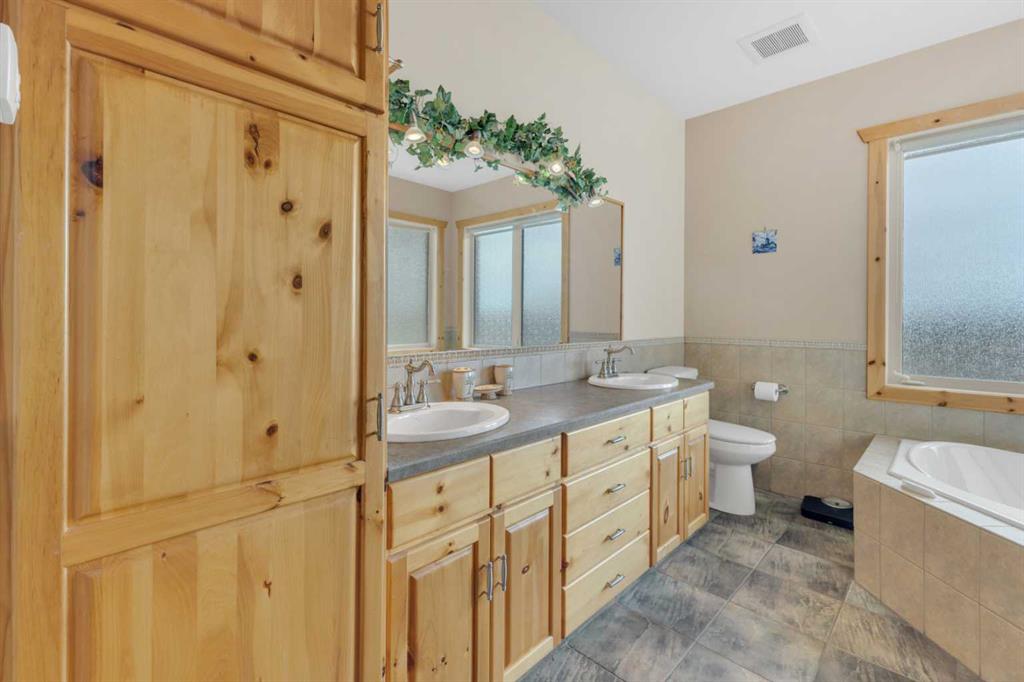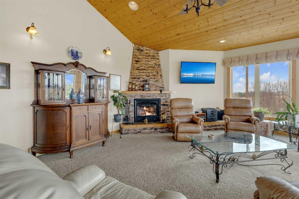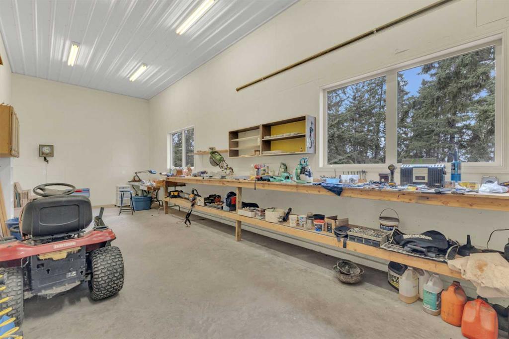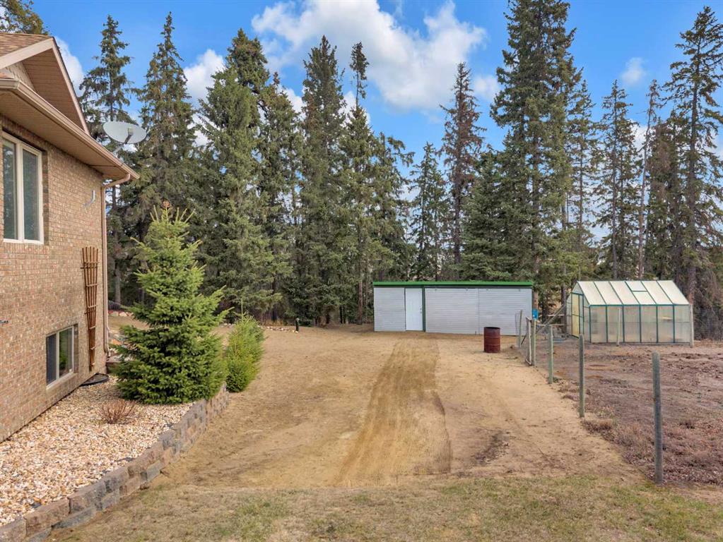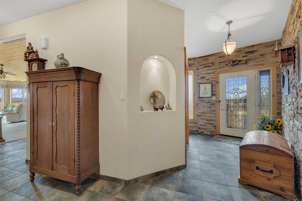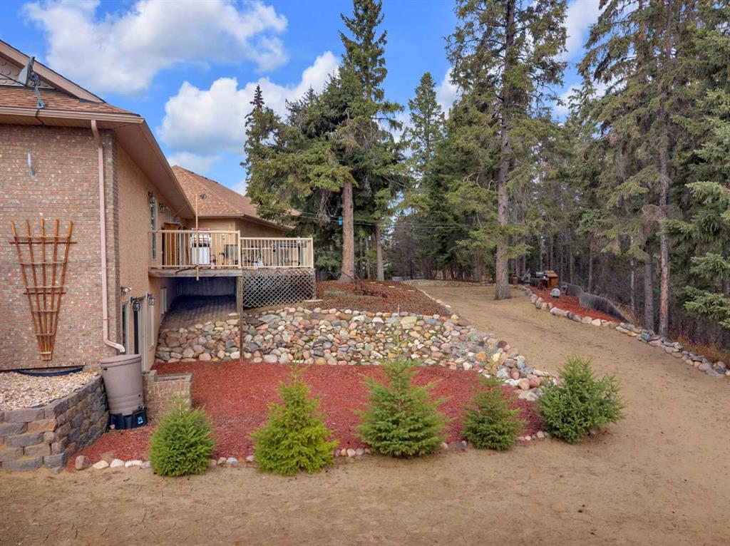 Welcome to the country. This home radiates fine craftsmanship and artistry throughout. The property is approximately 5.25 acres and is set up and fenced for a few animals if you like. Enjoy the peaceful backyard surrounded by your private forest with walking trails. Sit on your back deck and enjoy your coffee while watching the many types of wildlife skirt around. The oversized heated triple garage has plenty of room for your vehicles with a workshop on the back that could be opened up for more parking. On the side of the garage is a an attached r.v. bay (39x15.6) big enough for a class A motorhome complete with 30 amp power both inside and out. Drive right up to the house with the circular driveway and back out of the garage with ease. Step inside to the spacious front entry leading around to the open concept kitchen, dining room, and living room. If your into entertaining, there's lots of room for that both upstairs and down. The main floor and basement have underfloor heat supplied by a well maintained boiler system. (Just serviced this year). The main floor underfloor piping is enveloped in 1.34 inches of chipcrete to provide a very efficient and reliable heating system. The kitchen is a beautiful work space with plenty of cabinets, lots of counter space, meganite counter tops, a center island, and beautiful natural light flooding in from the south east. Relax in the large primary suite with a walkin closet, room for multiple dressers and a king size bed, plus the 5 piece ensuite. Laundry is easy on the main floor with a laundry sink, and the washer and dryer included. The basement has 2 more bedrooms, a full bathroom, lots of storage, a wet bar, and a walkout to the gorgeous back yard. There is a security system included with no contract at this time. Enough from me. Come see for yourself all the beauty this home has to offer only a few minutes from Red Deer and Blackfalds.