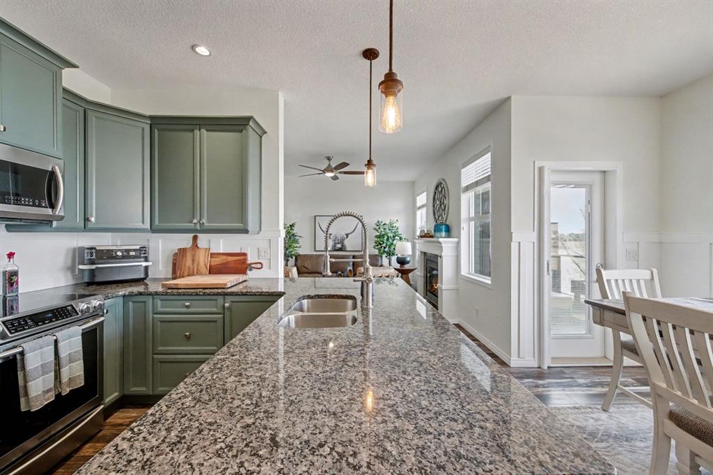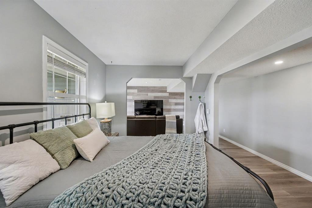 One of BEST LOCATIONS in the complex BACKING onto ENVIRONMENTAL RESERVE/GREEN SPACE, offering privacy and scenic views. This STUNNING and UPDATED home looks like a SHOWHOME - complete with a DOUBLE attached garage and a fully finished WALKOUT basement. The main floor has an open layout -perfect for entertaining guests. The kitchen is well-appointed with UPGRADES throughout such as GRANITE countertops, And STAINLESS STEEL appliances, The dining area flows into the SPACIOUS living room, which features a cozy gas FIREPLACE. You can enjoy the outdoors on the BALCONY just off the kitchen, which offers a stunning view of the ENVIRONMENTAL RESERVE. Upstairs, there are two large bedrooms , one with a full ENSUITE and the other has a large separate bonus room (that was originally a 3rd bedroom.)There is also LAUNDRY and a 4-piece bathroom. The WALKOUT basement is fully finished with NEWER vinyl plank flooring. It features a LARGE Rec room and an open 3rd bedroom ( it could easily be enclosed by adding 2 walls. There are patio doors that lead to your PATIO and FENCED yard that overlooks Greenspace- The patio downstairs is a great area for shade and entertaining. There is also ANOTHER 4-piece bathroom, and storage. This IMMACULATE home is move-in ready, with all the UPGRADES you could want. Don't miss the opportunity to make this stunning townhome YOURS today!