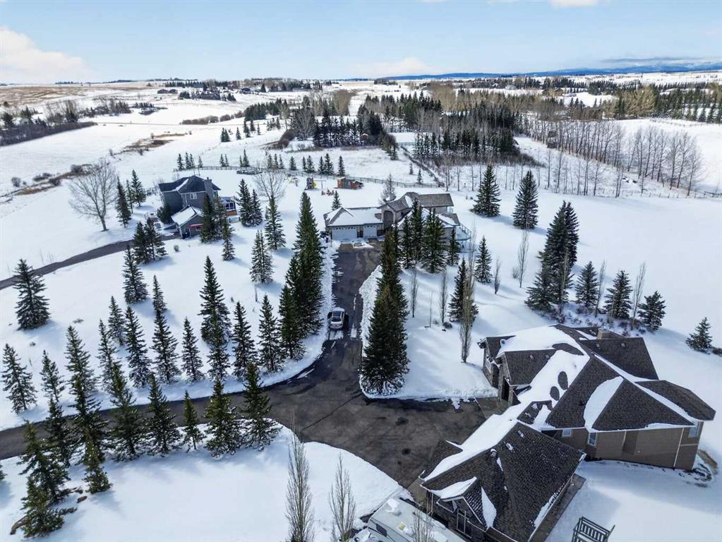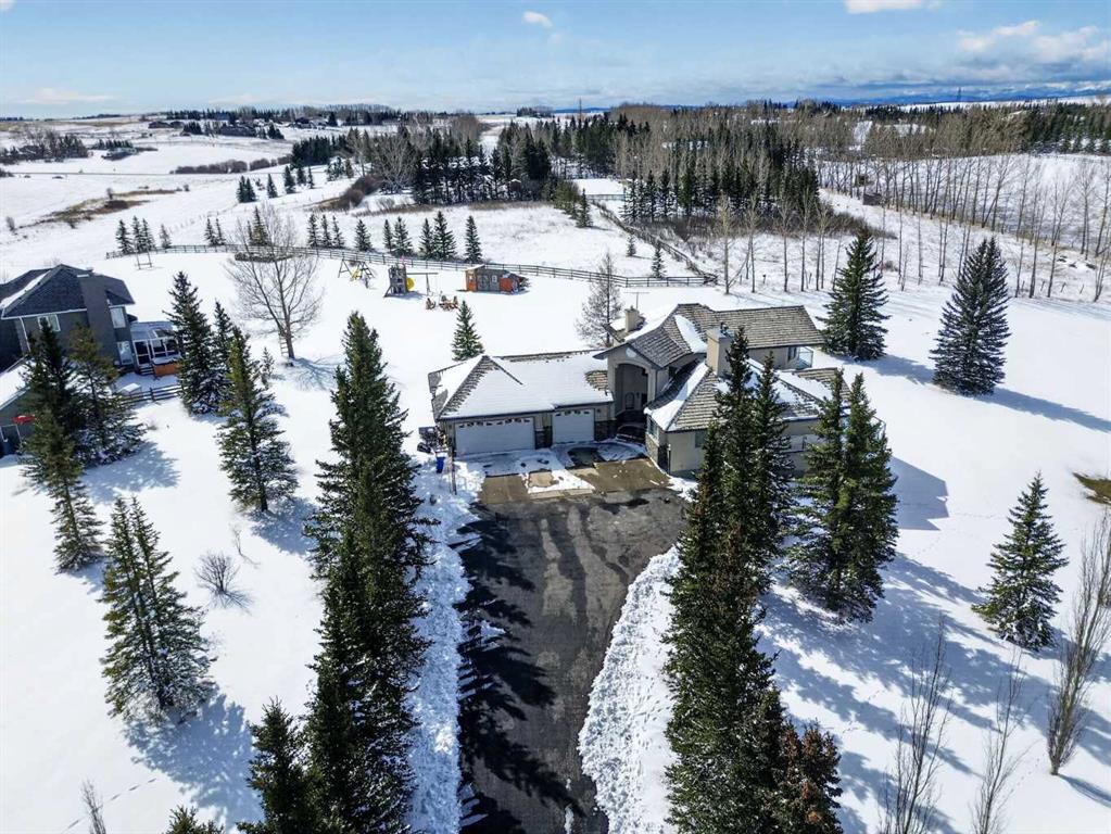 4 BEDROOMS | 3 BATHROOMS | 3-CAR GARAGE | 2 ACRES | MINUTES TO CALGARY | MOUNTAIN VIEWS| OPEN HOUSE ON MAY 2 (1PM - 3PM) - Welcome to this spectacular acreage property at 45 Country Lane Drive — 2 acres of breathtaking country living, just 20 minutes from downtown Calgary. From the moment you arrive, pride of ownership and exceptional craftsmanship are evident throughout. The thoughtfully designed kitchen features an octagonal breakfast nook perfectly positioned to frame stunning mountain views — a daily reminder of why you chose this lifestyle. The classic formal dining room flows seamlessly to a walk-out wrap-around deck, ideal for entertaining or simply soaking in the tranquil surroundings. With 2,175 sq. ft. of RMS living space spread across three levels, this home offers both grandeur and warmth. Three fireplaces — one on each level — create an inviting atmosphere that makes every corner of this home feel like a retreat. The house is fully air-conditioned. The lower level adds even more versatility with 2 full bedrooms , perfect for relaxation or hosting guests. The oversized 3-car garage provides exceptional storage and functionality, while the acreage offers incredible future potential. Whether you're dreaming of space to breathe, room to grow, or the serenity of rural Rocky View County living — this property delivers it all. A rare opportunity to own a truly one-of-a-kind acreage property with the convenience of city proximity. Don't miss it.