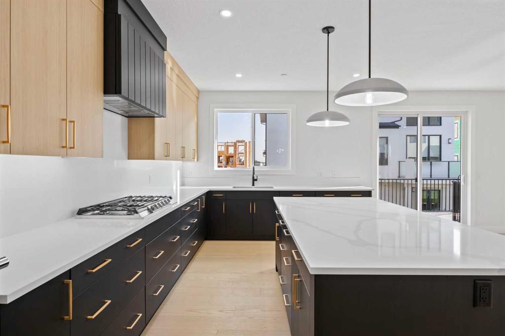 Welcome to the brand new development of Knightsbridge in Cambridge Park. Minutes away from access to Stoney Trail and East Hills shopping centre. The Whitehaven is a stunning estate home designed to blend luxury and practicality. Set on a generous 6027 sq ft lot, this home provides an expansive backyard and a side-drive triple car garage. These are not your typical cookie cutter homes. With 3,203 sq ft of living space, this custom-built masterpiece features 5 spacious bedrooms and 4 beautifully designed bathrooms, offering ample room for family and guests. This home is loaded with upgrades including: Main floor full bath, Jack and Jill ensuites for added convenience, High ceilings & a Spice kitchen to enhance your culinary experiences. Inside, the main floor exudes elegance with rich hardwood flooring and 9 ft ceilings with 8 ft doors, and striking black-framed windows that invite natural light. The gourmet kitchen is a chef’s dream, complete with an oversized island, a secondary spice kitchen, sleek stainless steel appliances. An open concept formal dining and living area set the stage for gatherings. The main floor also includes a flex room as well as a 4 pc bathroom. The primary suite on the upper floors is a true sanctuary with a freestanding tub and a custom-built closet. The home’s thoughtful design continues with 3 more generous sized bedrooms on the second floor, a bonus room for entertaining, a Jack & Jill ensuite bathroom for convenience, as well as a second floor laundry room. . Step outside to enjoy a completed rear deck with steps leading to a private outdoor oasis. This home also offers a triple attached garage allowing plenty of space for extra parking. This community is within minutes to Calgary, Chestermere, and East Hills, 18 minutes to Downtown Calgary, and provides quick access to Stoney Trail, Highway 1, and McKnight Blvd making it easy to get anywhere in and around the city. Located near shopping centres, Costco, public and private schools, Khalsa school's, parks, and many other amenities, while still offering quiet country-living with wide open green spaces, walking paths, and playgrounds.