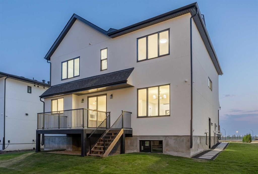 Welcome to the brand new development of Knightsbridge in Cambridge Park. Minutes away from access to Stoney Trail and East Hills shopping centre. The EDEN is a stunning estate home designed to blend luxury and practicality. Set on a generous 6027 sq ft lot, this home provides an expansive backyard and a side-drive triple car garage. These are not your typical cookie cutter homes. With 3,502 sq ft of living space, this custom-built masterpiece features 5 spacious bedrooms and 4.5 beautifully designed bathrooms, offering ample room for family and guests. This home is loaded with upgrades including: Main floor full ensuite bath as well as an added powder room, Jack and Jill ensuites for added convenience, High ceilings & a Spice kitchen to enhance your culinary experiences. Inside, the main floor exudes elegance with rich hardwood flooring and 9 ft ceilings with 8 ft doors, and striking black-framed windows that invite natural light. The gourmet kitchen is a chef’s dream, complete with an oversized island, a secondary spice kitchen, sleek stainless steel appliances. An open concept formal dining and living area set the stage for gatherings. The main floor also includes a flex room as well as a 4 pc ensuite bathroom. The primary suite on the upper floors is a true sanctuary with a freestanding tub and a custom-built closet. The home’s thoughtful design continues with 3 more generous sized bedrooms on the second floor, a bonus room for entertaining, a Jack & Jill ensuite bathroom for convenience, as well as a second floor laundry room. . Step outside to enjoy a completed rear deck with steps leading to a private outdoor oasis. This home also offers a triple attached garage allowing plenty of space for extra parking. This community is within minutes to Calgary, Chestermere, and East Hills, 18 minutes to Downtown Calgary, and provides quick access to Stoney Trail, Highway 1, and McKnight Blvd making it easy to get anywhere in and around the city. Located near shopping centres, public and private schools, Khalsa school's, parks, and many other amenities, while still offering quiet country-living with wide open green spaces, walking paths, and playgrounds.