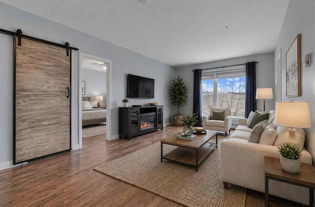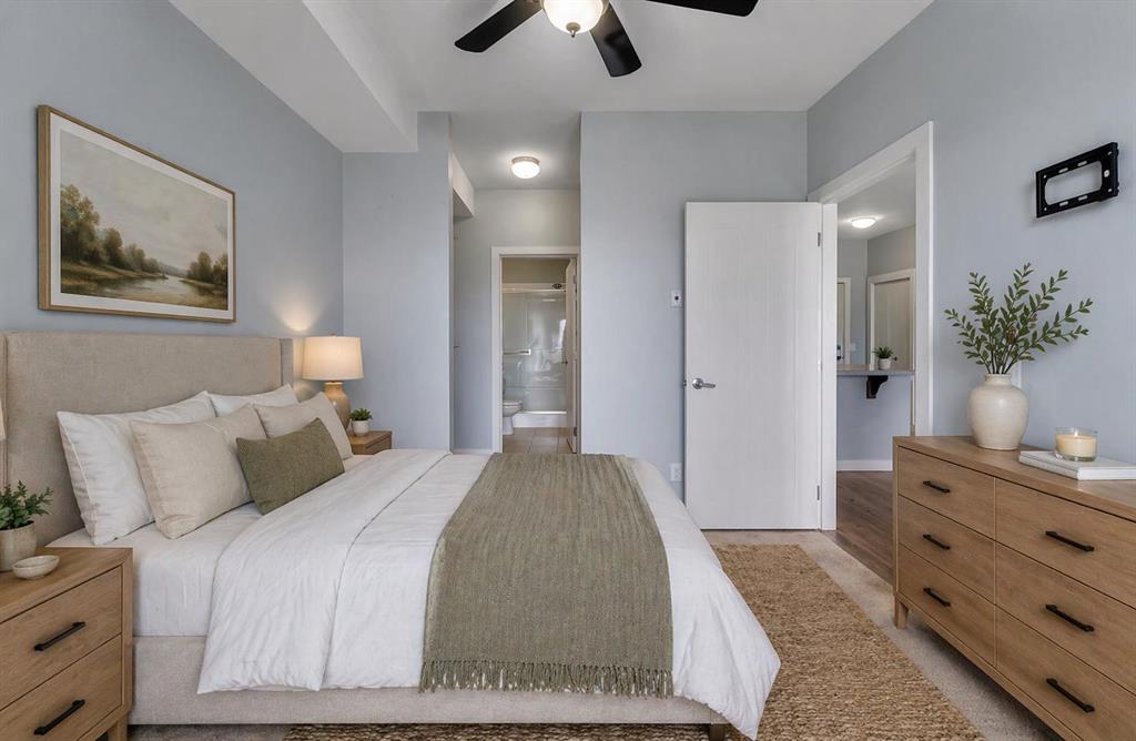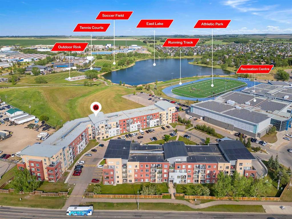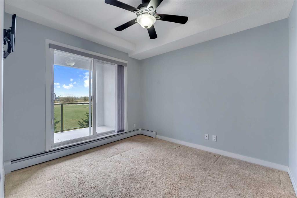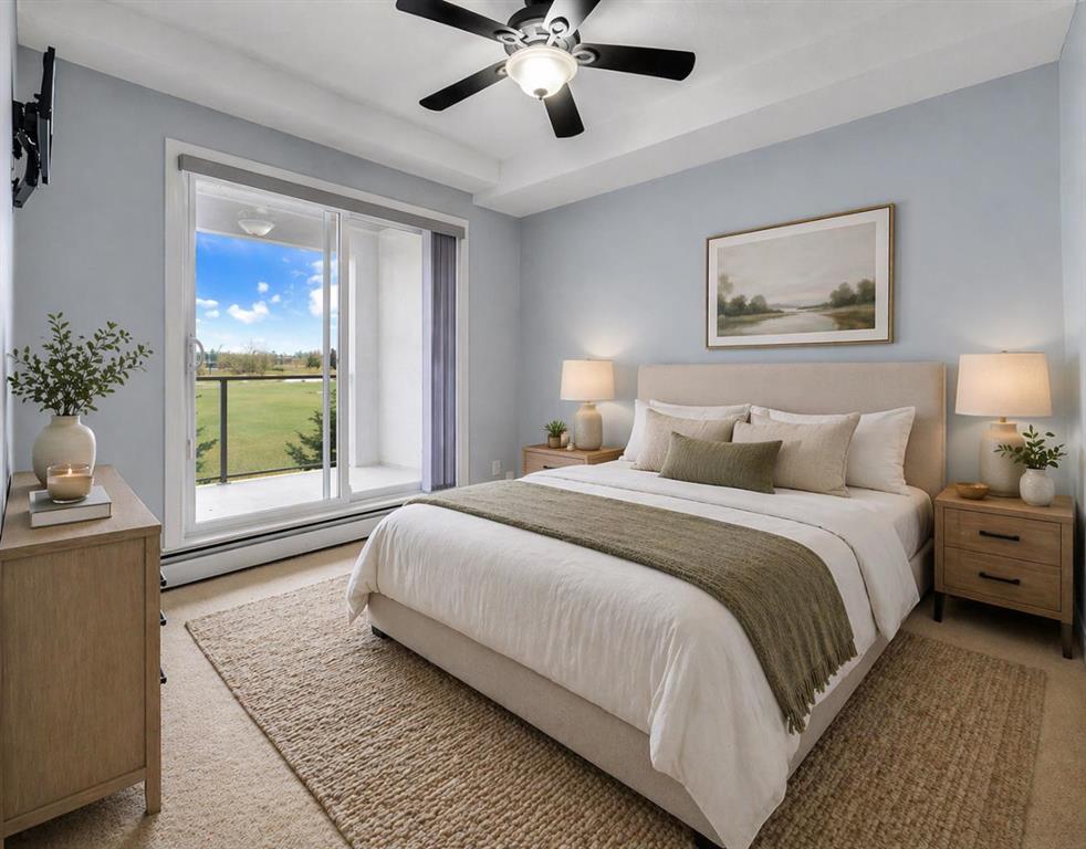 Opportunities like this in "The Edge" are rare, with lake views from this second-floor 2-bedroom + den condo unit with underground parking. Inside, you'll find a bright and modern open-concept layout with a nicely updated kitchen that flows seamlessly into the dining and living areas, all of which offer serene views of the park-like setting and the lake beyond. The spacious primary suite features a walk-through closet to the en-suite bathroom. A second generously sized bedroom, a full 4-piece bathroom, and in-suite laundry offer convenience for guests and daily living. The den offers a versatile space ideal for additional storage or can be transformed into a home office or hobby room. Located steps from Genesis Place, East Lake walking paths, outdoor tennis courts, and other recreational amenities. This condo offers a perfect balance between turnkey living and a location that gets you out and keeps you active.