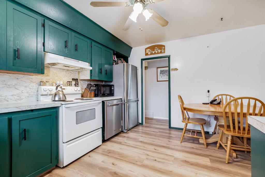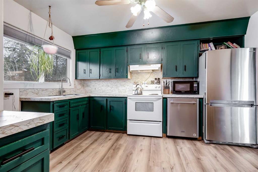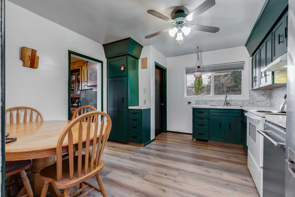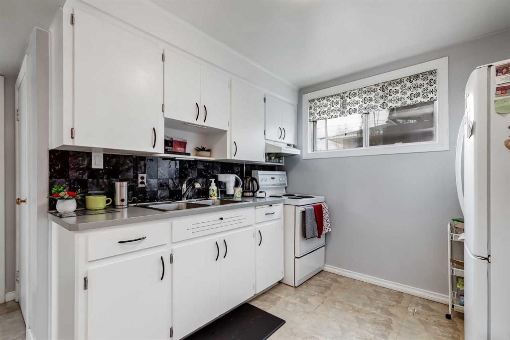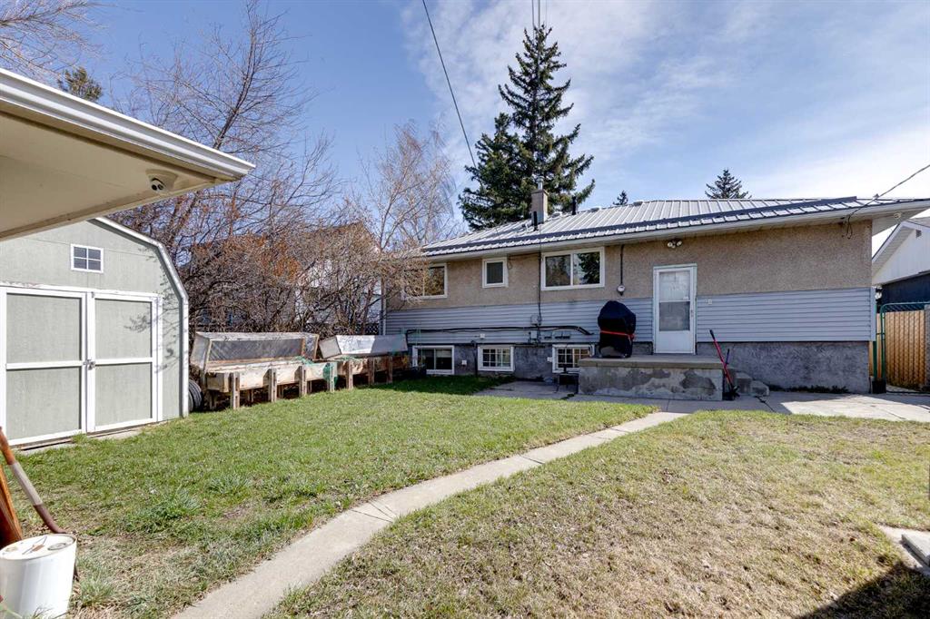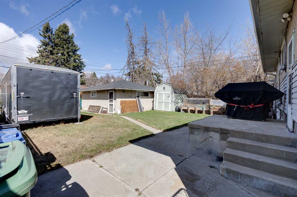 HUGE Lot | Legal Suite | Income Potential | Endless Possibilities. Welcome to this upgraded bungalow situated on a massive lot, offering outstanding affordability, redevelopment potential, and excellent income-generating opportunities. The bright and inviting main level features brand new vinyl plank flooring (2024), large sun-filled windows, and a spacious living area that flows seamlessly into the eat-in kitchen perfect for everyday living. Three well-sized bedrooms and a full bathroom w/ jetted tub, complete the upper level. Downstairs, you’ll find a charming and bright LEGAL basement suite with its own private front entrance. Finished with beautiful bamboo flooring, this very cute space includes a full kitchen, comfortable living area, bedroom, and a full bathroom. Shared laundry is conveniently located for easy access. With two separate furnaces, both levels enjoy independent climate control for added comfort and efficiency. Central A/C services the upper floor, the basement stays cool in the summer months without it. The basement is currently rented to a long-term tenant of over 20 years who would love to stay - offering immediate, stable income potential. Plenty of room in the basement for storage or to add another bedroom. Step outside to enjoy the expansive backyard - perfect for kids, pets, and entertaining. The low-maintenance, high-quality fencing provides both safety and peace of mind. An 8x10 storage shed adds extra functionality for tools and garden supplies. The oversized double garage (22x24) is insulated, heated, and equipped with 220V power ideal for a workshop or hobby space (radiant heater negotiable; workbenches excluded). The asphalt roof on the garage was done in 2019. There is also excellent RV parking and additional parking space for ultimate flexibility. Further upgrades include newer windows, central A/C, tankless hot water system, and dual furnaces serving both levels. This versatile property offers countless options live up, rent down, invest, or hold for future development. A rare opportunity with a large lot and built-in mortgage helper. Book your showing today!