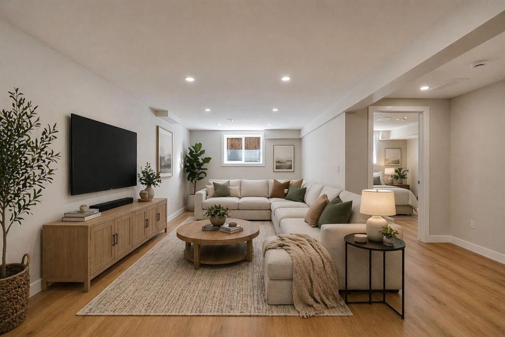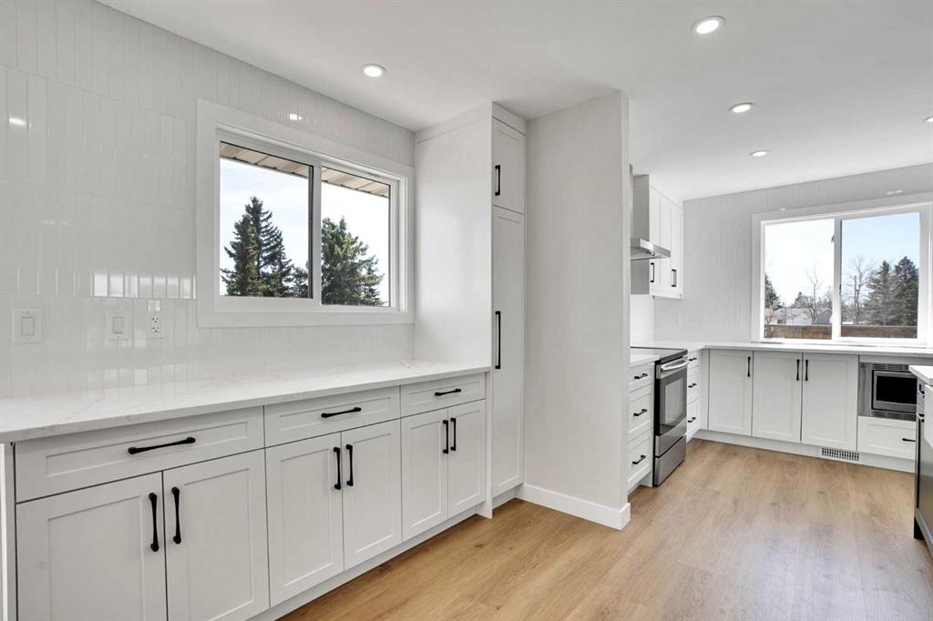 Welcome to this beautifully reimagined 5-bedroom, 4-bathroom home offering over 2,650 sq ft of thoughtfully designed living space. Tucked away on one of Marlborough Park’s quietest cul-de-sacs, this property backs onto open green space and is perfectly positioned just minutes from schools, CTrain stations, shopping, dining, and major commuter routes. The main floor spans over 800 sq ft and showcases a bright, open concept layout featuring a spacious living room, dining area, and a chef inspired kitchen anchored by an impressive 10' × 5' island with abundant storage. The adjacent family room blends modern comfort with timeless character, highlighted by a refreshed original brick feature wall. South and west facing windows flood the home with natural light throughout the day. With five bedrooms and four full bathrooms, the layout is exceptionally well suited for families of all sizes. The upper level offers three bedrooms, including a generous primary retreat complete with an ensuite and dual closets, along with two additional bedrooms and a full bathroom, all enjoying peaceful park views. A fourth bedroom on the main floor, paired with a 3 piece bath and laundry, creates the perfect setup for guests or multi generational living. The fully developed lower level adds even more versatility, featuring a large fifth bedroom, an additional full bathroom, and over 700 sq ft of recreation or family space. Notable upgrades include a high efficiency furnace, a large hot water tank, and smart-home features such as Ring cameras, Wi-Fi light switches, smart locks, and thermostats delivering everyday comfort, efficiency, and peace of mind. Completing the package is an oversized front drive garage, an increasingly rare find in Marlborough Park offering added convenience, storage, and year-round functionality. Outdoor living is equally impressive, with a solid, newly built deck off the kitchen, a concrete patio, a private yard, and a newly installed fence accented by a decorative rock feature perfectly suited for a firepit or outdoor gathering space. A rare opportunity to own a home renovated with purpose, quality, and craftsmanship now offered at an exceptional new price, making this one of the best values in Marlborough Park.