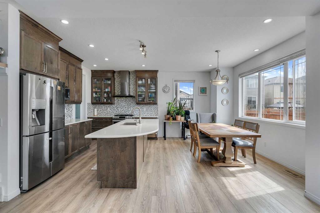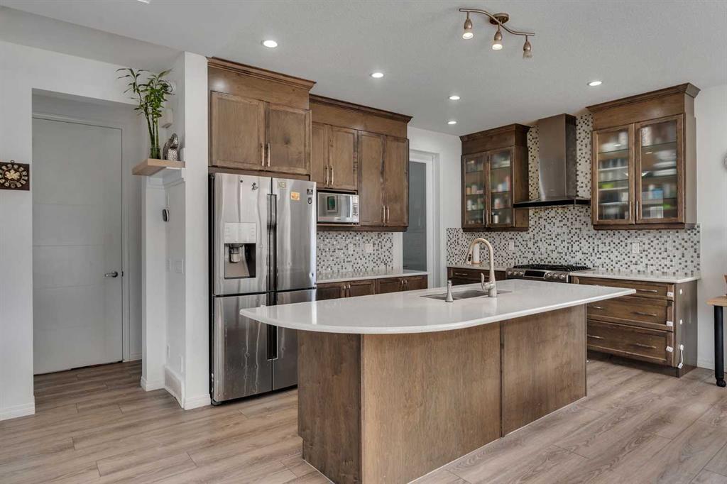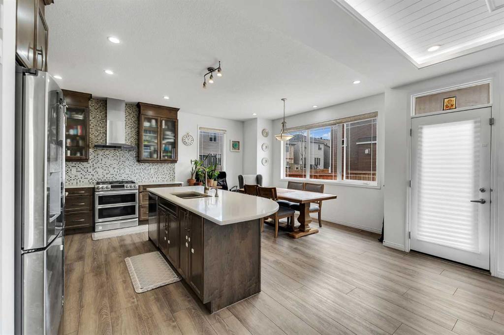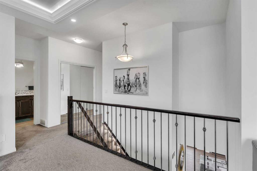 LARGE CORNER LOT | 3 BEDROOM ILLEGAL BASEMENT SUITE | 7 BED + 4 FULL BATH | ATTACHED GARAGE | SOUTH BACKYARD | HIGHLY UPGRADED | Welcome to this impressive 7-bedroom, 4-bathroom home situated on a large corner lot, offering exceptional space, functionality, and versatility for growing families or savvy investors. Step inside to a bright and welcoming foyer, complete with a convenient closet for outerwear. To the left, you’ll find a well-sized main floor bedroom paired with a full bathroom, perfect for guests, extended family, or a home office setup. The spacious living room is filled with natural light and features a cozy fireplace along with an elegant tray ceiling, adding a touch of sophistication and grandeur. The heart of the home is the beautifully designed kitchen, equipped with a curved island, stainless steel appliances, a walk-in pantry, and abundant cabinet and counter space, Ideal for both everyday living and entertaining. Adjacent to the kitchen, the dining area is bright and inviting, making it the perfect place to host family gatherings. This level is completed by a practical mudroom with access to the attached garage. Upstairs, retreat to the generously sized primary bedroom featuring a large walk-in closet and a luxurious 5-piece ensuite. Two additional spacious bedrooms and a 4-piece bathroom provide ample room for family members. A standout feature of this level is the expansive bonus room, highlighted by a tray ceiling and stylish wall paneling, perfect for relaxing or entertaining. A dedicated laundry room adds everyday convenience. The fully developed basement includes a 3-bedroom + 1-bathroom illegal suite with a separate side entrance. This level includes a functional kitchen with stainless steel appliances, ample cabinetry and counter space, its own laundry, a 4-piece bathroom, and a storage/utility room. Outside, enjoy the large, fully fenced backyard, complete with a patio—perfect for summer BBQs and outdoor gatherings. Conveniently located with easy access to major routes such as Country Hills Boulevard, Métis Trail, and Stoney Trail, commuting is simple and efficient. Close to schools, parks, shopping, and amenities, this home truly offers the best of space, comfort, and location. Don’t miss this incredible opportunity!