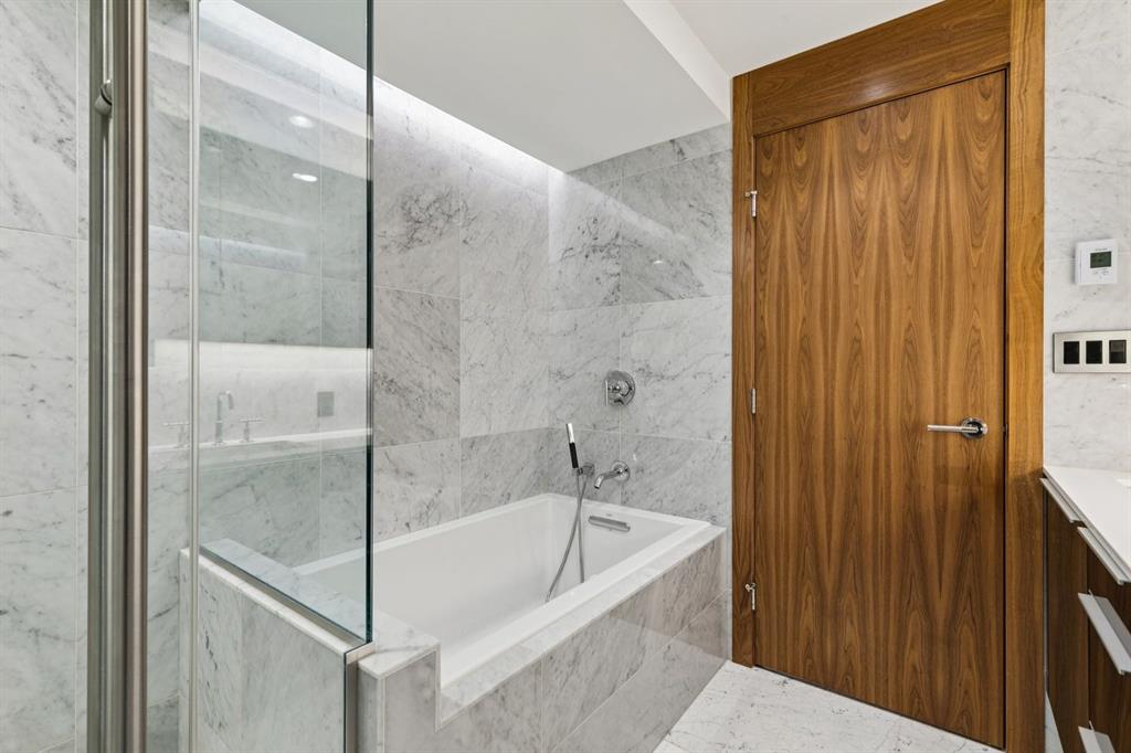 Welcome to this stunning Concord former show suite, where luxury meets comfort in an exceptional corner unit. With 2 spacious bedrooms including a primary suite featuring a 5-piece ensuite complete with his and her sinks, a jetted soaker tub, and a large glass shower this home is designed for those who appreciate the finer things in life. The large walk-in closet is equipped with built-in organizers, ensuring ample space for all your wardrobe needs. The open floor plan enhances the flow of the unit, making it perfect for entertaining or simply enjoying the breathtaking views from each room! Imagine watching the river and pathway views while grilling on the deck, which comes with a BBQ gas line. The kitchen is a chef's dream, boasting abundant storage and high-end finishes, making meal prep a delight rather than a chore. As part of the exclusive Concord building you’ll experience a lifestyle like no other. This residence offers 24-hour concierge service and top-notch security, ensuring peace of mind. The heated secure parade includes a car wash and a wheel wash upon entry, as well as bike storage and a resident only fitness room to keep you active. For social gatherings, take advantage of the party room and outdoor entertaining spaces complete with an outdoor kitchen, guest bathrooms, and a serene pond that transforms into a resident-only skating rink in winter. Situated within private grounds, residents have direct access to scenic river pathways and the iconic Peace Bridge. You’ll find yourself just steps away from an array of restaurants, coffee shops, shopping destinations, hospitals, schools, and major intersections, making it the ideal location for urban living. There’s also ample guest parking and plenty of city street parking available for your visitors. This unit includes a decorative gas fireplace for cozy evenings, a separate laundry area with plenty of shelving and storage, and luxurious touches like electric heated bathroom floors and hardwood flooring in the main areas, complemented by marble tile in the bathrooms. Built-in speakers and a keypad on the front door add convenience and style to your living experience. Don’t miss your chance to own this exquisite corner unit, where elegance meets functionality. Corner river units are among the most sought after in the building, making this opportunity truly rare. Schedule a viewing today and step into the lifestyle you’ve dreamed of!