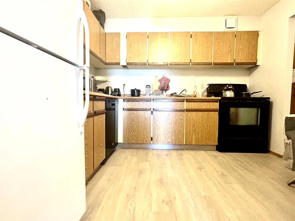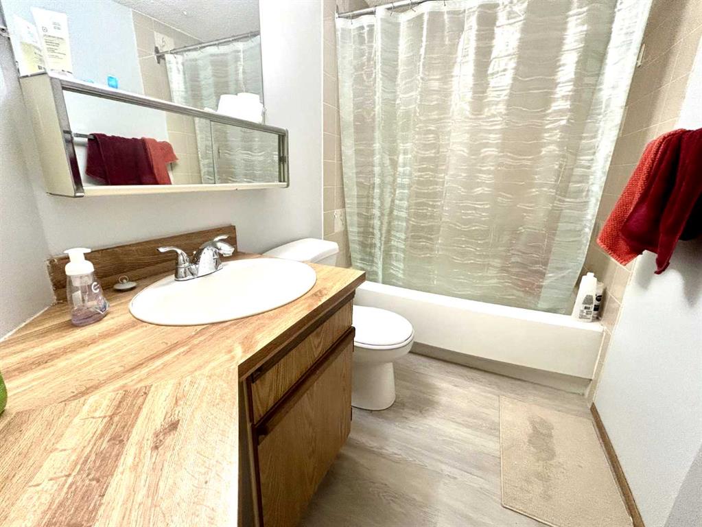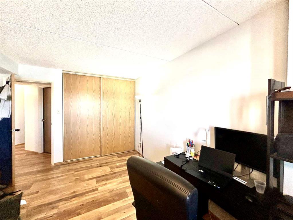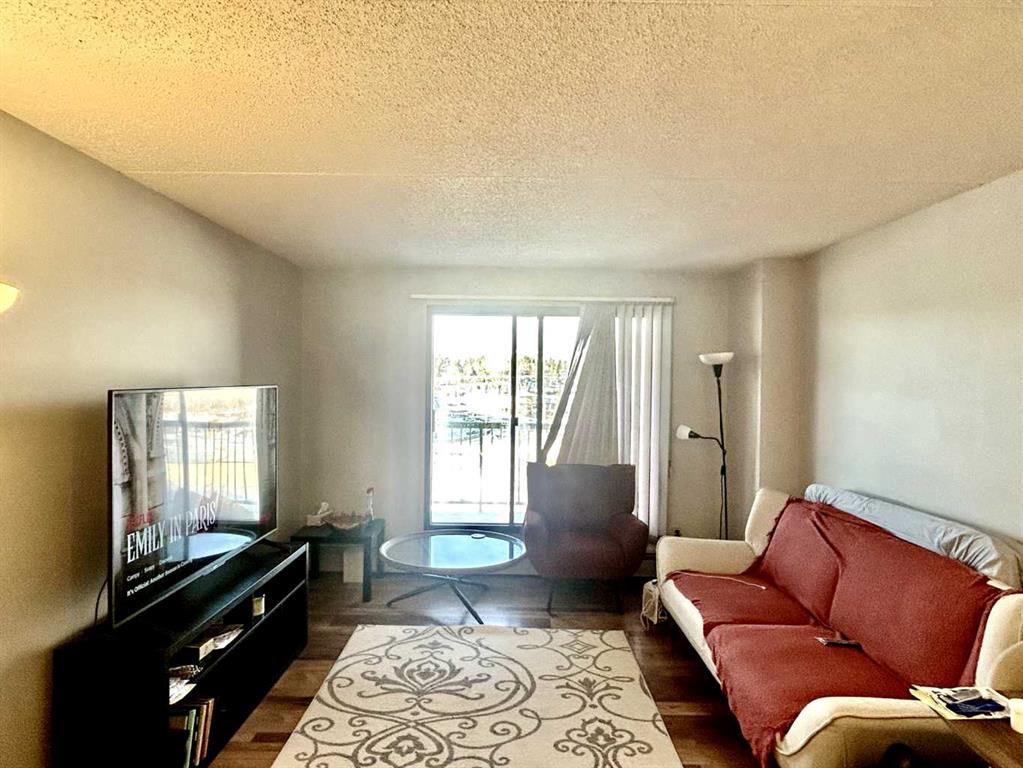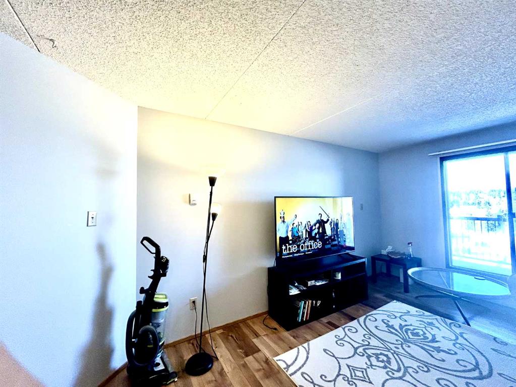 This attractive one-bedroom, one-bathroom condominium in Dalhousie features a well-designed layout, including a private storage room. The functional kitchen offers ample counter and cabinet space, along with a full appliance package. A separate dining area overlooks the bright living room, which opens onto a covered deck with views of Nose Hill Park. The generously sized primary bedroom adds to the comfort of the unit. Residents also enjoy access to a range of amenities, including heated underground parking, a common laundry room, sauna, fitness area, games room, party room, tennis court, and ample visitor parking. Recent upgrades include fresh paint, a new toilet, and new flooring in the bedroom, kitchen, and bathroom. Ideally located within walking distance to public transit, parks, and shopping, and close to universities and hospitals, this property is perfect for first-time buyers, young professionals, or investors.