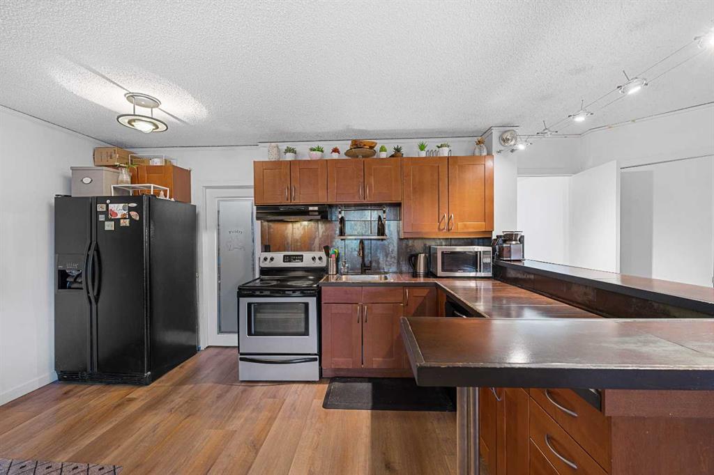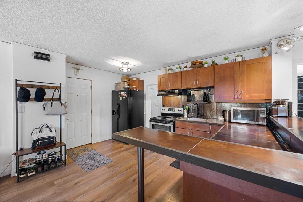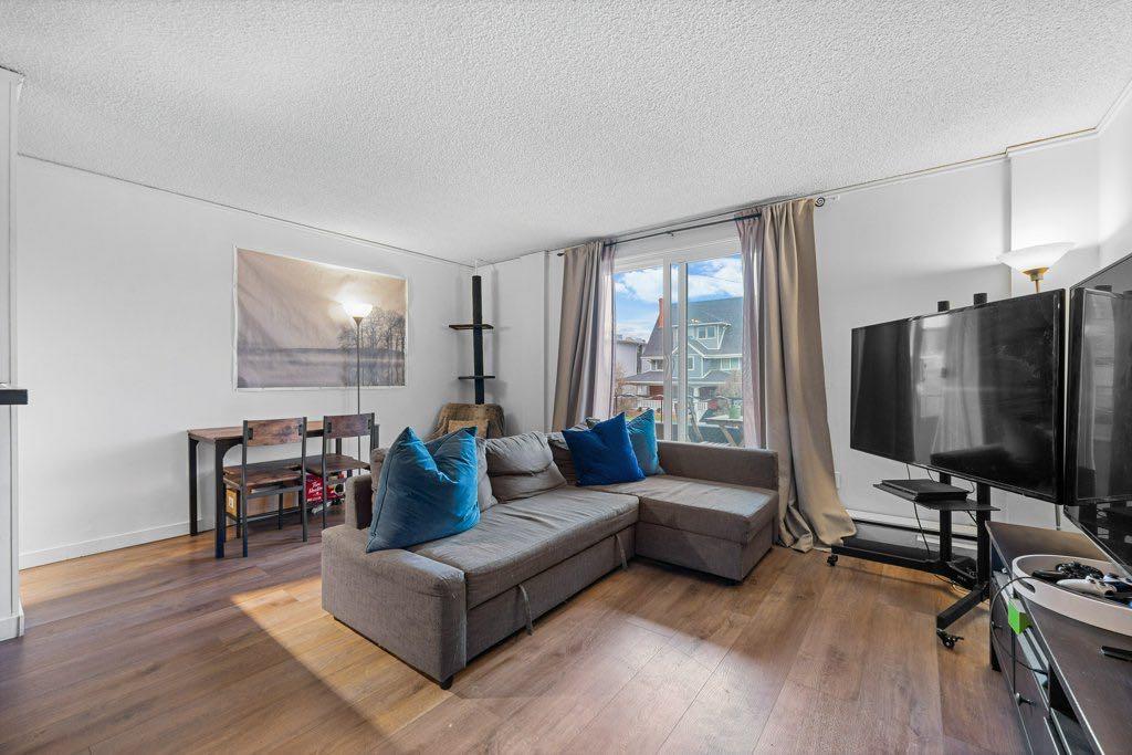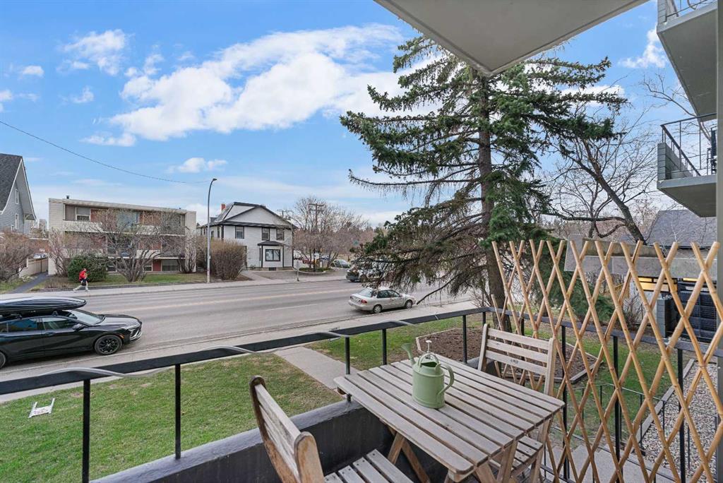 Updated, stylish, and a fantasitc location! This 2 bedroom Bankview condo delivers the best of inner-city living just steps from 17th Avenue. With skyline views from the balcony, a bright open layout, and tasteful upgrades throughout, this unit is an ideal opportunity for buyers looking for value, style, and walkable convenience. The interior has been refreshed with a modern touch, featuring custom cabinetry, a custom kitchen backsplash, brand new vinyl plank flooring, updated light fixtures, and a large walk-in pantry that is rarely found in condo living. Both bedrooms are generously sized, including a spacious primary with a designer feature wall, while the updated 4-piece bathroom offers a soaker tub, new vanity, mirror, and lighting. Newly installed, large windows bring in plenty of natural light and help create an open, airy feel throughout. Whether you are a first-time buyer, young professional, or investor, this is a smart option in a prime location close to downtown, transit, boutique shopping, restaurants, and all the energy of one of Calgary’s most loved neighbourhood pockets.
