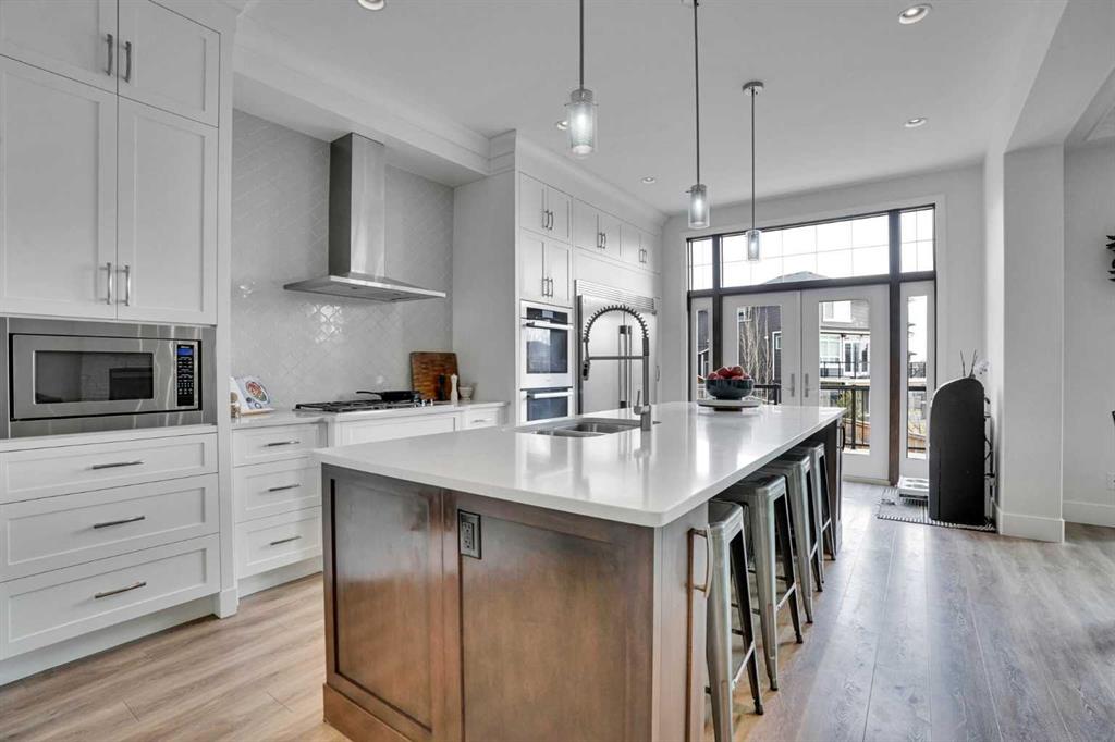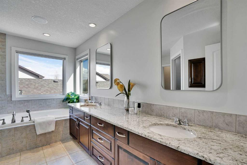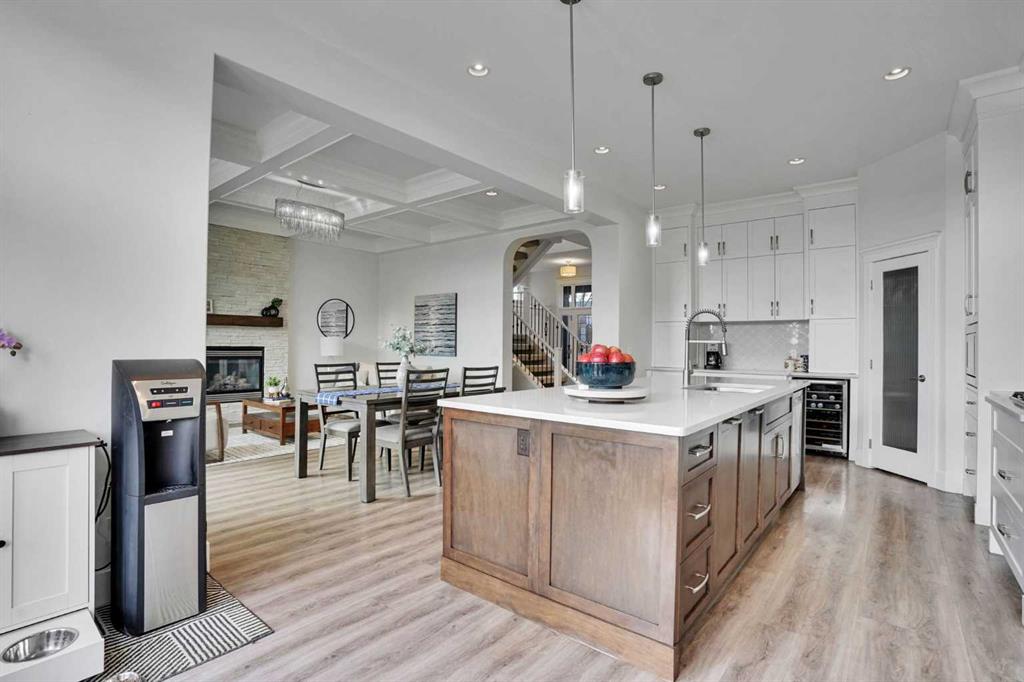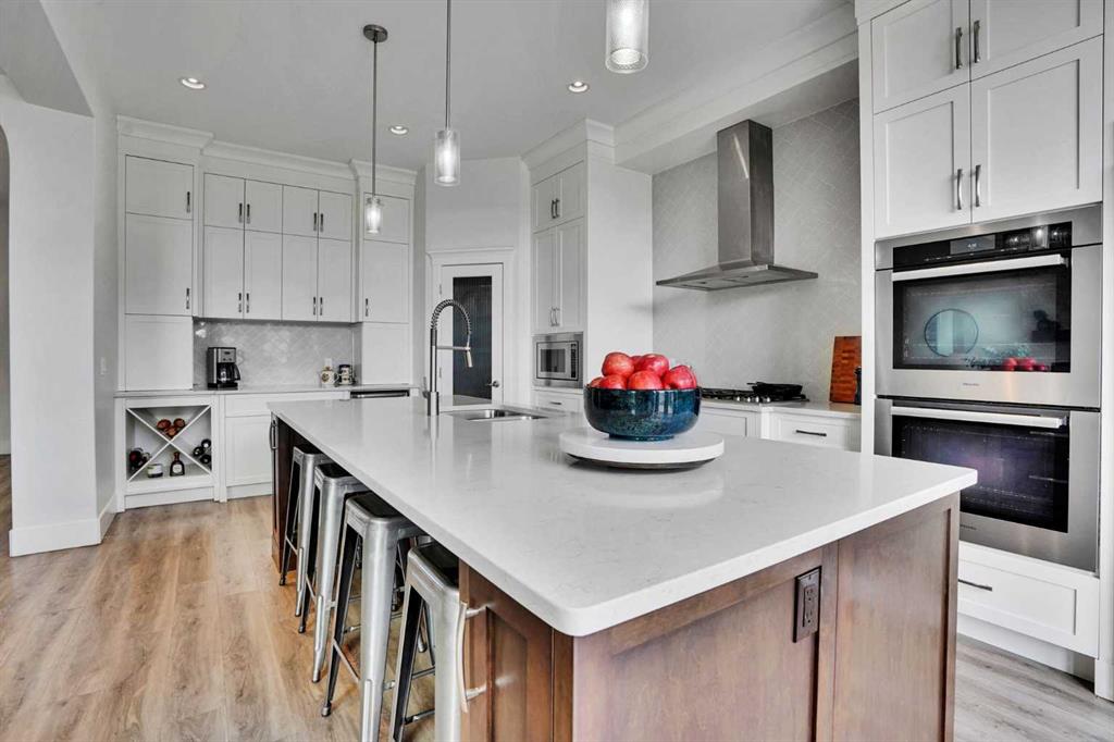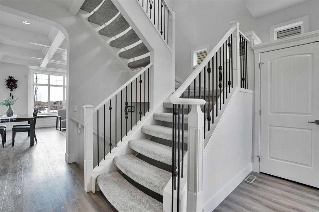 Pride of ownership is evident throughout with exceptional quality and craftsmanship defines this fully renovated executive home backing onto a tranquil south facing pond. Designed for refined living, the open concept main floor features 10’ ceilings, coffered detailing, and a chef inspired kitchen with premium appliances including Miele and Wolf, oversized island, and elegant finishes throughout. Also installed is sound and Data throughout. Step out onto the deck overlooking the pond an ideal spot to relax and unwind. Upstairs, the spacious primary retreat features a 5-piece ensuite, a large walk-in closet, and serene pond views. Two additional generously sized bedrooms easily accommodate queen bed and full furnishings. The bonus room boasts a vaulted ceiling, ceiling fan, and a convenient Murphy bed. Upper floor laundry includes brand new ThinQ washer and dryer. The fully finished walkout basement offers even more living space, including a large bedroom and full bathroom, ideal for extended family or guests. Outside, the fully landscaped backyard is built for enjoyment with a stone patio, hot tub, fire pit, and shed. Exterior composite stairs add durability and style. Recent upgrades include brand new vinyl siding, roof, furnace, and tankless hot water system. A water softener system is also included for added comfort. The homeowners have gone above and beyond, completing a full home inspection and addressing every item repairing or replacing as needed, so the next owner can move in with confidence and simply enjoy the home. This is a rare opportunity to own a truly beautiful property in an exceptional location. One look and you’ll want to call it home.